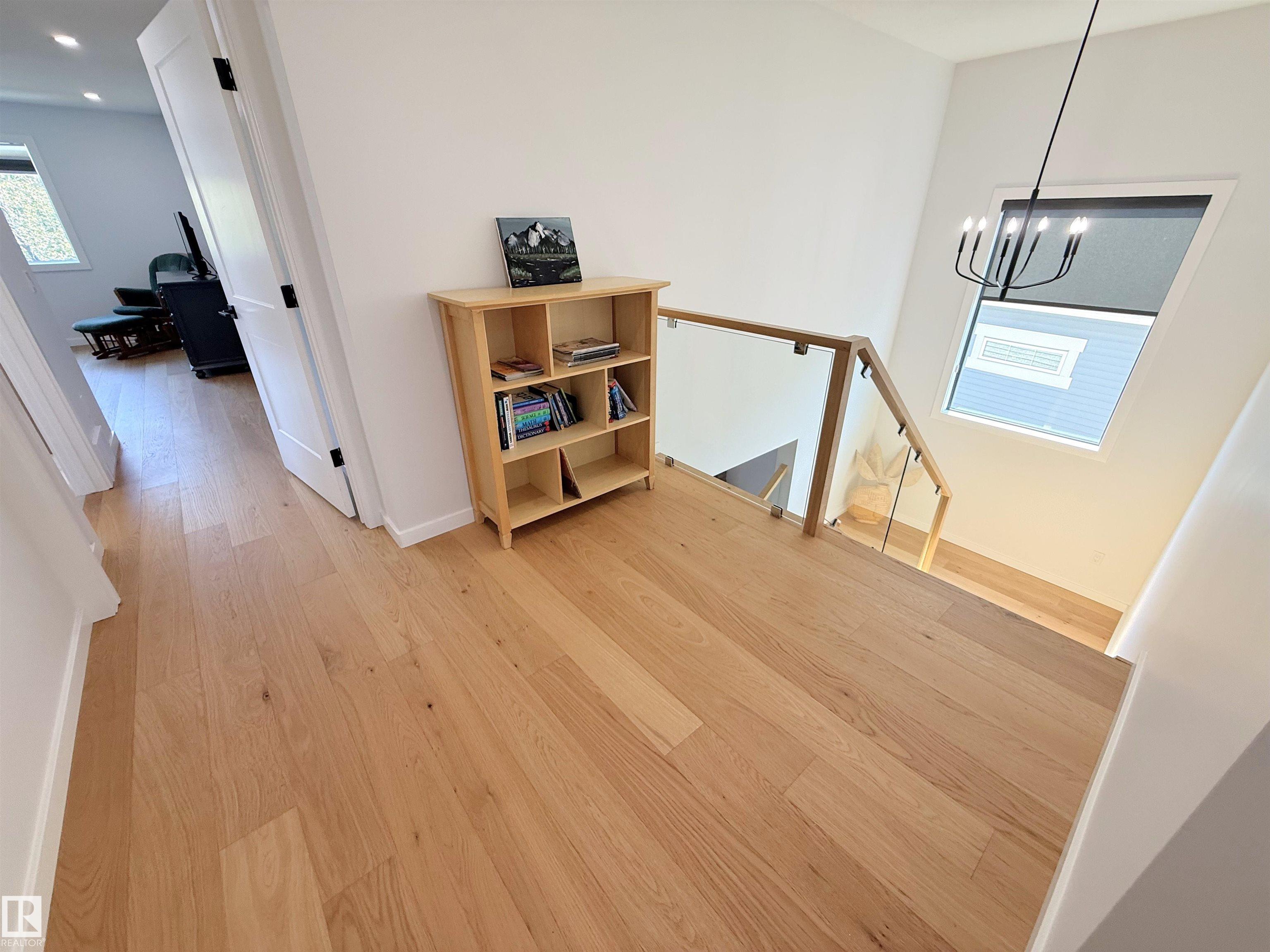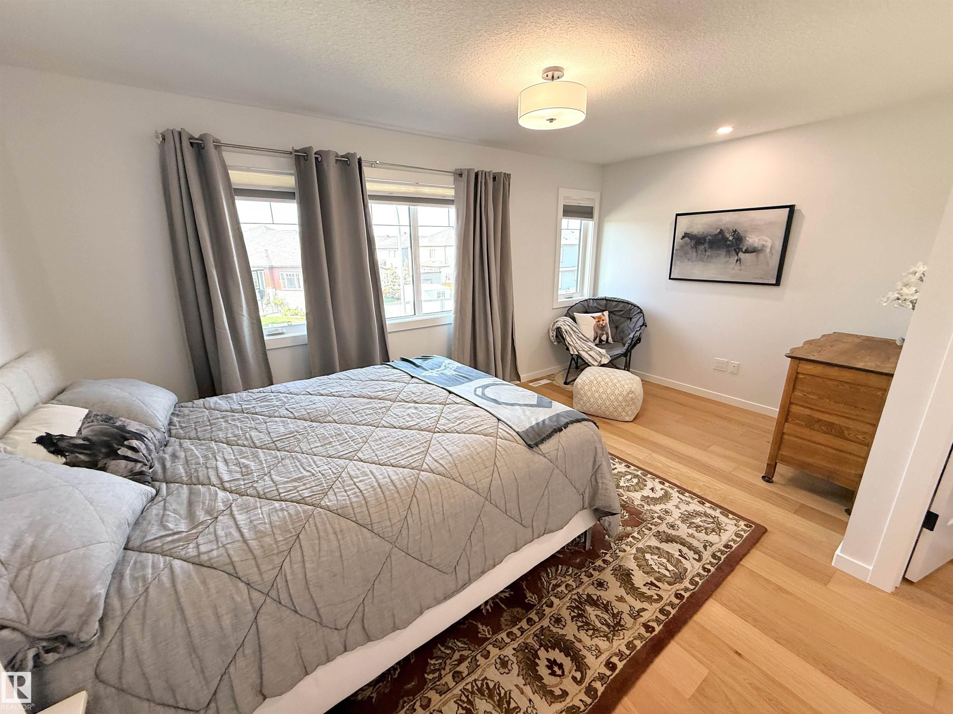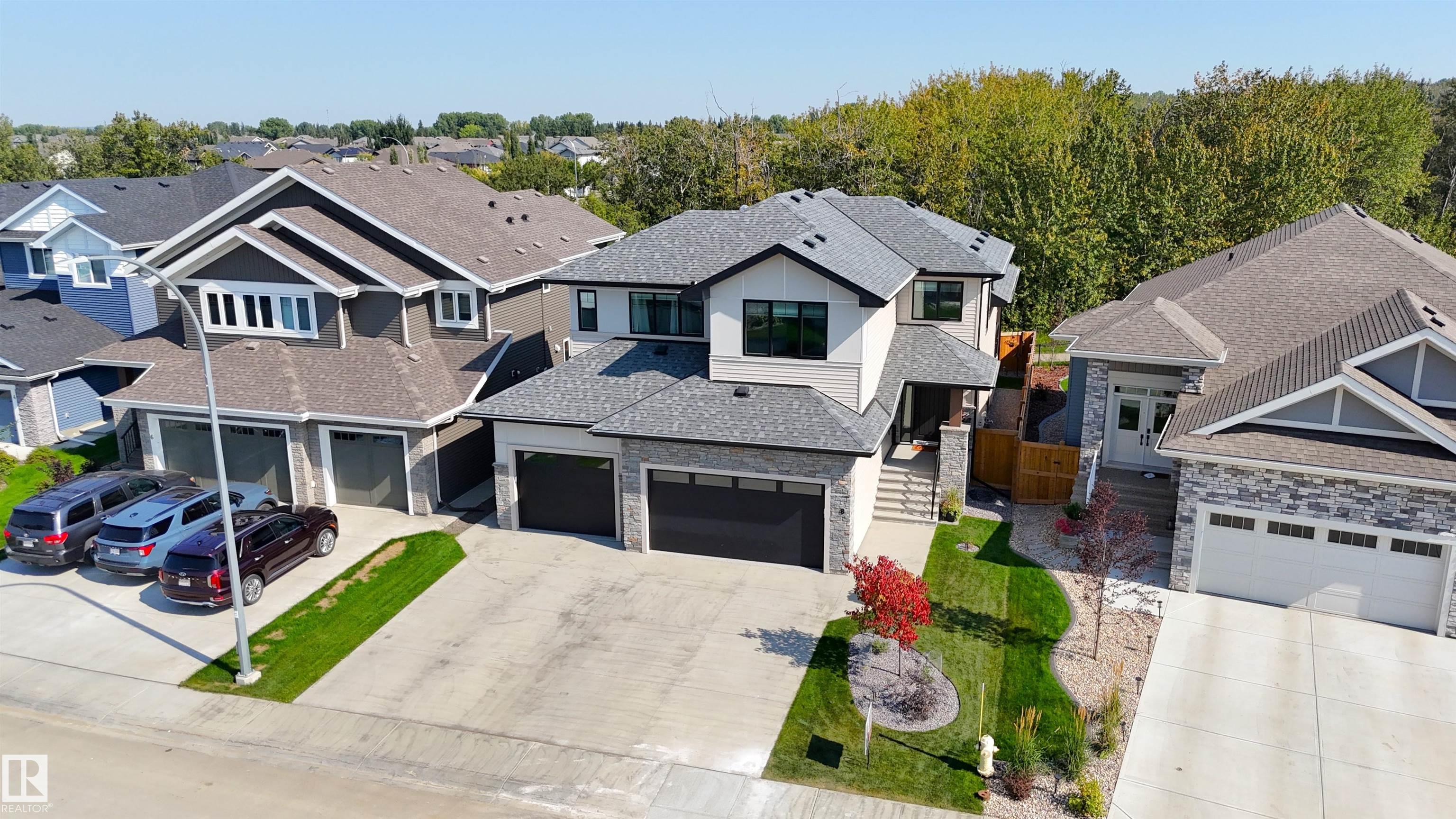 Elegant 2023 2-storey & attached triple garage (34x32, 12’ ceiling, heated, 220V, H&C water, epoxy floor, drains, EV ready) backing onto nature trails in Jesperdale. This 2850 sqft (+ full basement) home features central AC, white oak flooring, high efficiency windows & doors, energy efficient furnace & water, solar panel ready & high-end details throughout. Main floor: spacious entry & mudroom, front office, 3-pc bath, living room w/ 12’ open beam ceiling & electric fireplace, dining room w/ deck access & gourmet kitchen w/ quartz counters, large eat-up island & walk-through butler’s pantry. Upstairs: top floor laundry room w/ sink, bonus room w/ vaulted ceiling, two 5-pc baths & 3 bedrooms including the owner’s suite w/ walk-in closet & ensuite w/ soaker tub & large walk-in shower. Finished basement: 4th bedroom, 4-pc bath, rough-in for 2nd laundry, exercise room & rec room w/ electric fireplace & wet bar. Maintenance free exterior w/ covered vinyl deck, bbq hook-up, patio & views of greenspace behind!