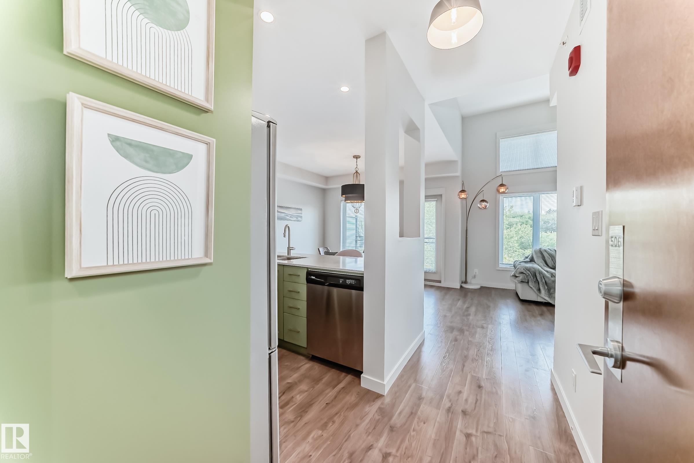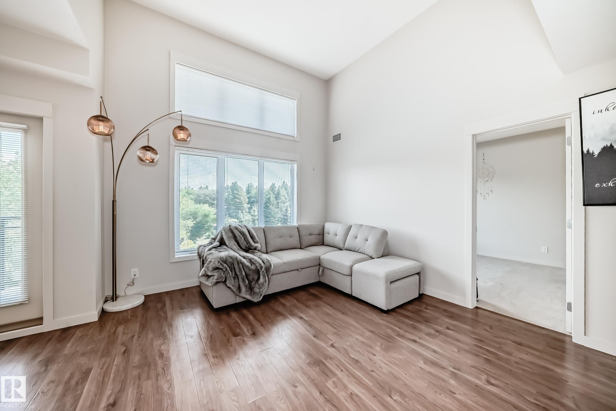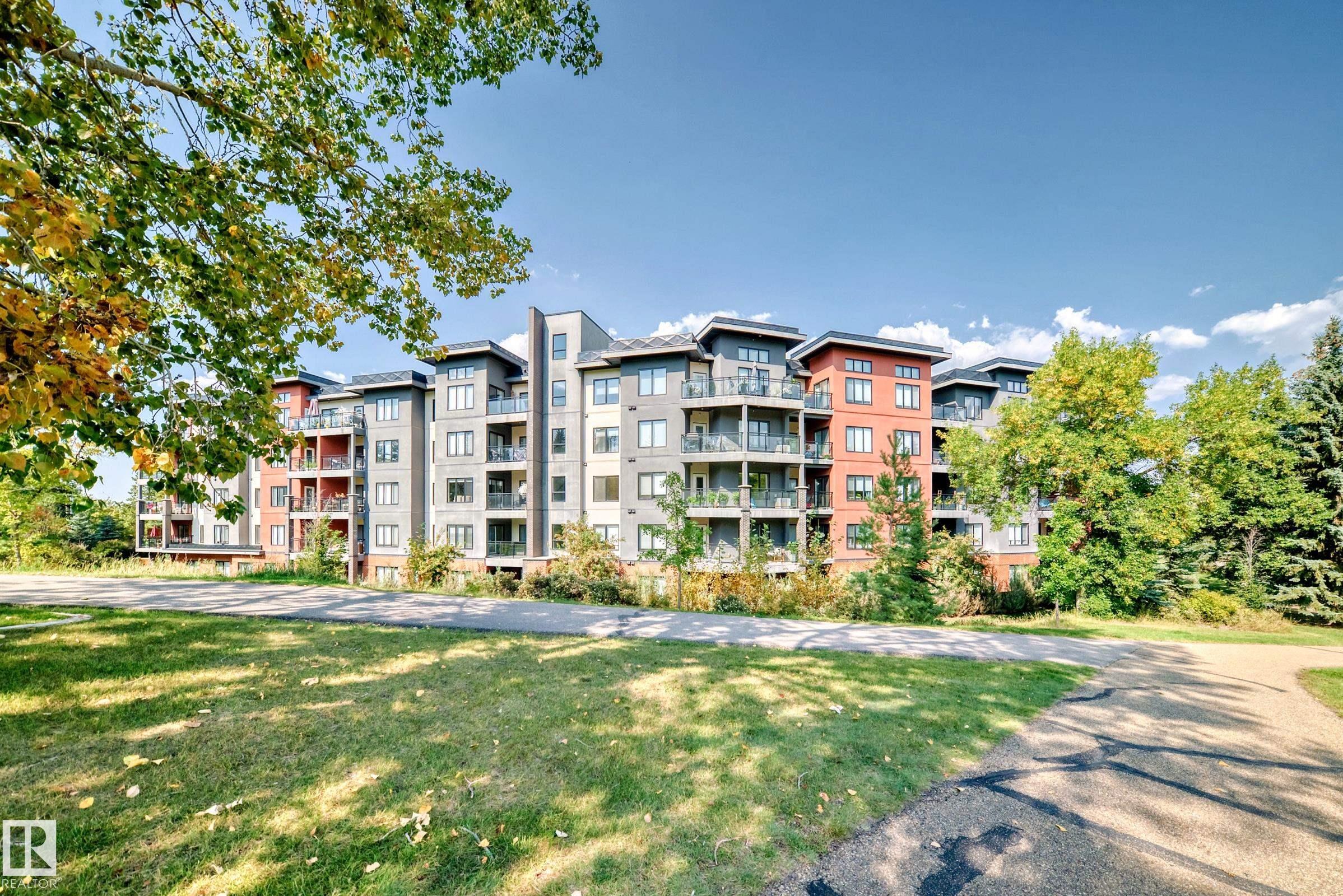 Penthouse Living with Park Views at Grandin Parc Residences Welcome to this stunning penthouse unit in the highly sought-after Grandin Parc Residences, ideally located next to Grenadier Park in Downtown St. Albert. This rare offering combines modern luxury with natural beauty, delivering a lifestyle of comfort, style, & convenience. Enjoy soaring 13-foot vaulted ceilings & expansive park views that bring the outdoors in. Recently updated with fresh paint & modern cabinetry, the home feels bright & refreshed. Large windows flood the space with natural light, while central air conditioning ensures summer comfort. The gourmet kitchen features quartz countertops, porcelain tile flooring, & upgraded stainless steel appliances, perfect for both cooking and entertaining. Every finish has been thoughtfully chosen for timeless appeal & lasting quality. This is a truly special home in a vibrant, nature-connected community. Don’t miss your chance to own one of the best units in the building! Pet friendly complex!