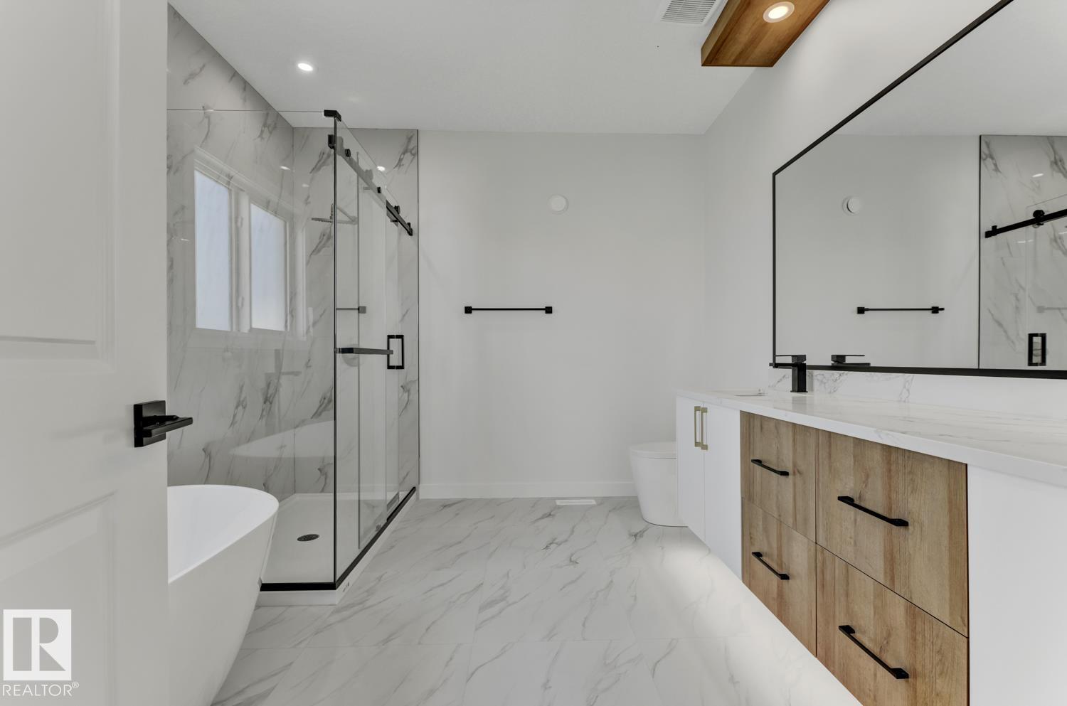 Brand new home backing onto pond & green space! Offering nearly 2500 sq ft above grade, this 4 bedroom, 4 bathroom property is filled with upgrades. The main floor features a spacious foyer, bedroom with full bath, open kitchen with secondary spice kitchen, dining area, and bright living room with floor-to-ceiling fireplace. Upgrades include a waterfall island, marble counters/backsplash & designer lighting. Upstairs offers a bonus room, laundry, and 3 bedrooms including the primary with vaulted ceiling, walk-in closet & luxury 4-pc ensuite. The basement has a side entrance and partial walkout—perfect for income potential, multi-gen living, or extra space. Oversized 500 sq ft garage is painted, drained & ready for heat. Situated on a 30 pocket lot with glass-railed deck, landscaped yard & stunning pond views. Close to schools, trails & parks.