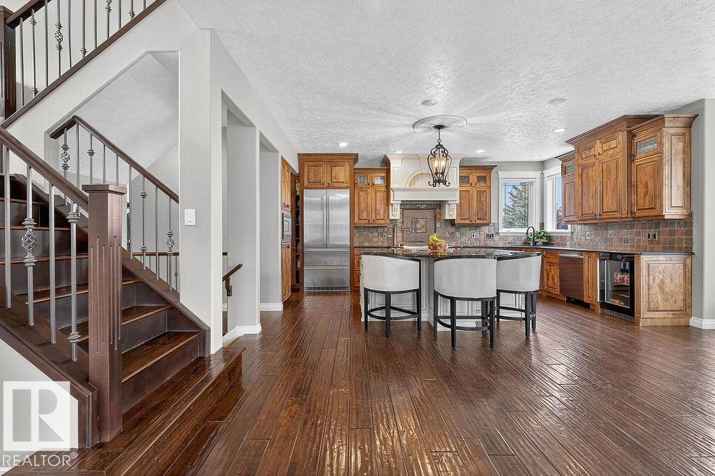 Discover this custom, executive two-storey home with over 4,000 sq. ft. of luxurious living space! Located on a huge corner lot, it features a TRIPLE ATTACHED garage, a 30x40 SHOP, RV parking, and a fenced and landscaped yard. The main floor offers a Chef's dream kitchen with custom cabinets, a walk-through pantry, a large island with granite counters and high-end appliances. Adjacent is a gorgeous dining area with garden doors to new deck and backyard. The living room features a stone gas fireplace, while a huge office near the front entrance and a 2-piece bath complete the level. Upstairs boasts a 4-piece bathroom, laundry room, bonus/bed room with built-in shelving, and a primary suite with a gas fireplace, walk-in closet, and 5-piece ensuite. Two more large bedrooms with closet organizers finish this level. The finished basement includes a bathroom, a recreation room with a corner gas fireplace, a games area with a built-in bar, and two additional bedrooms. This is the ultimate family home!
