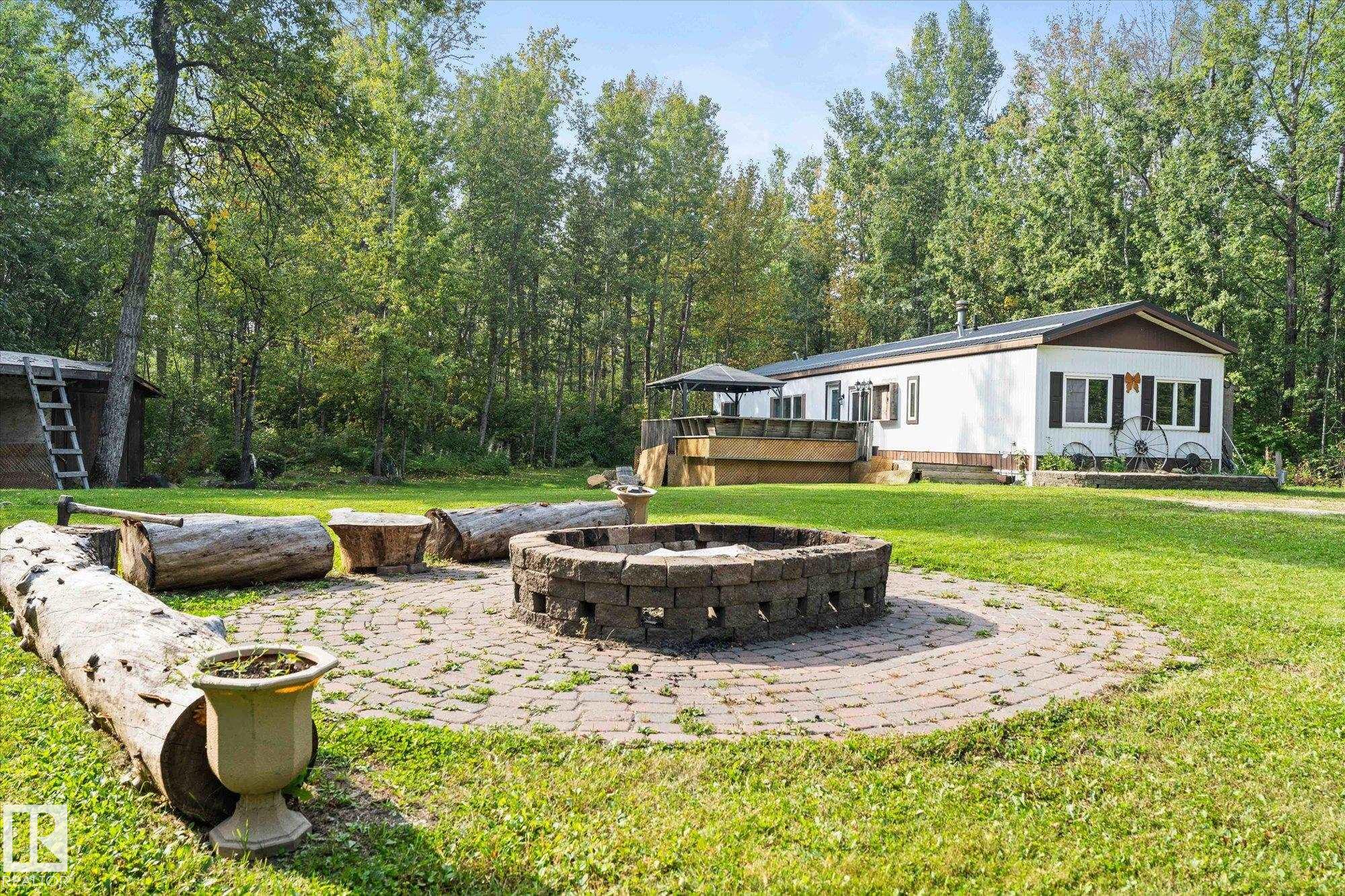 Welcome to your piece of paradise! This 3.01 acre parcel just 18 minutes west of Stony Plain offers fully treed privacy where you can build your dream home or enjoy as is. Situated beside an additional 2 acres of reserve land with no through roads, this location truly gets you away from it all. Large fire pit area and two sheds to store all you need to maintain the property. The long, private driveway has been built up and reinforced, and leads to the 3 bedroom/2 bath mobile home with large deck, built in seating area, fire tables and gazebo. Updates include NEW tin roof in 2021, HWT 2022, 2019 pressure tank, 2023 dishwasher and 2024 stand up freezer. Window updates have started as well! Home is on a bus route so winter snow removal is a priority. Directly north of Cougar Creek golf course, this property is a must see!