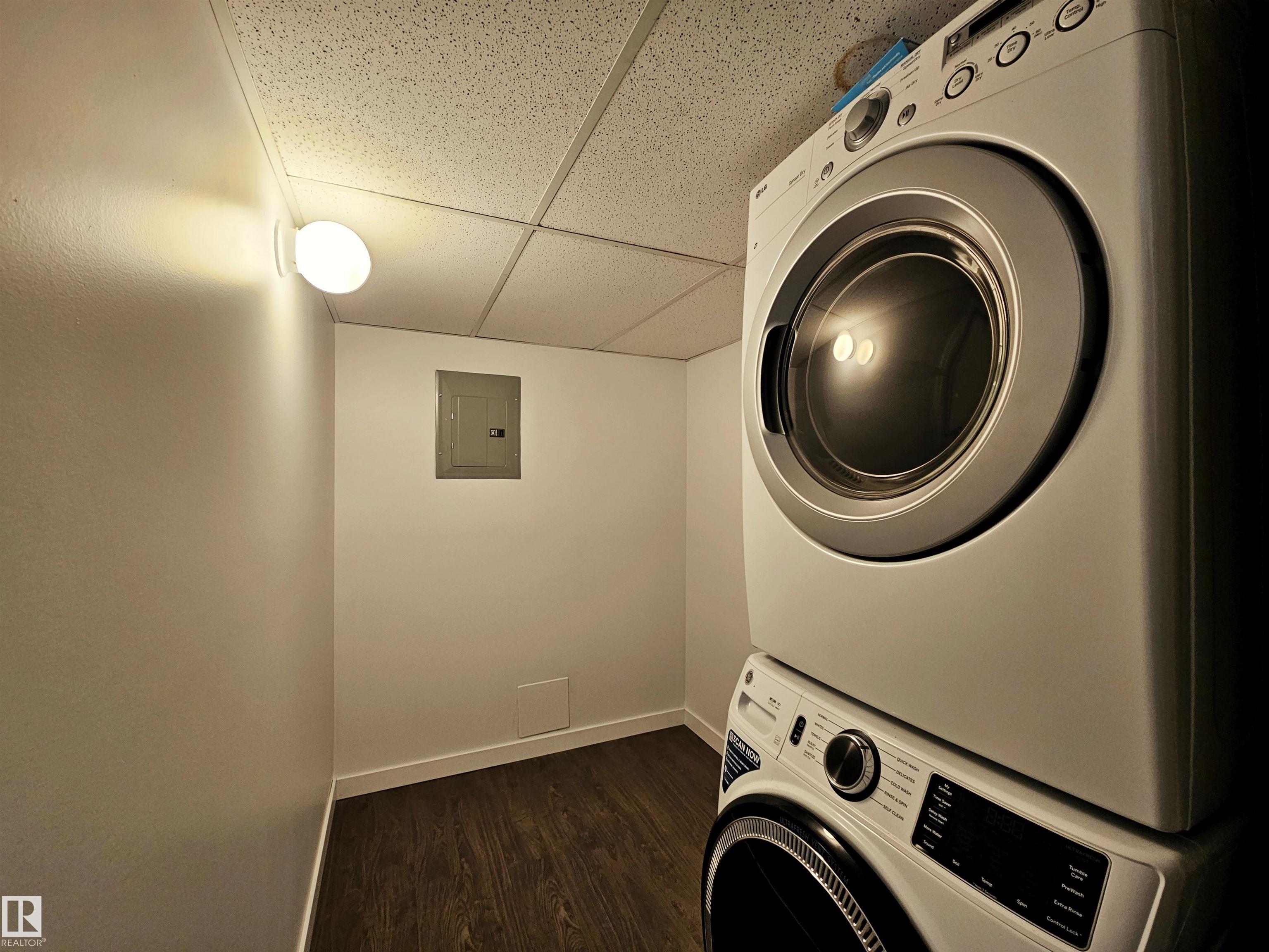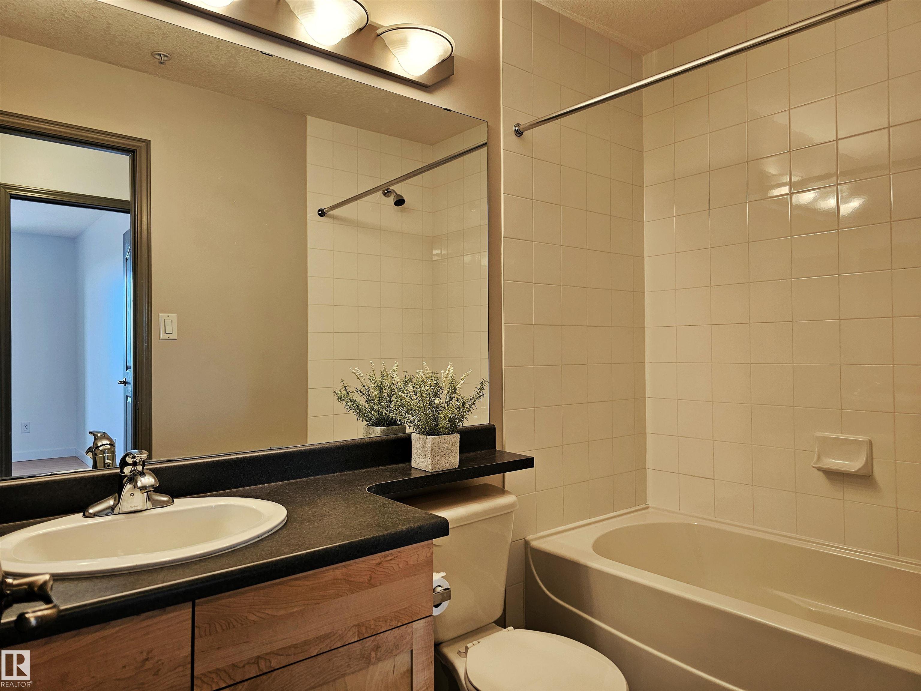 ABSOLUTELY STUNNING! Million-dollar views from this top floor immaculate south-facing boutique apartment in Mission Hill Grande overlooking Big Lake and the St. Albert skyline. Spacious open concept floor plan offers nearly 1,044 s.f. of elegant living with air conditioning, oak laminate flooring, crisp neutral tones, and numerous upgrades throughout. Gourmet kitchen features updated stainless steel appliances, custom maple cabinetry, and large central island overlooking bright dining and living room with cozy gas fireplace and patio door to private covered balcony with gas BBQ hookup. Generous primary retreat with double mirrored closets + 3 pc ensuite. Airy flex space (easily converted back to 2nd bedroom), 4 pc main bath, and oversized in-suite laundry/storage complete the plan. Heated underground parking stall with storage cage steps from elevator. Fabulous complex loaded with amenities including social lounge, guest suite, exercise room, visitor parking & more. Condo fees include heat, water, sewer.