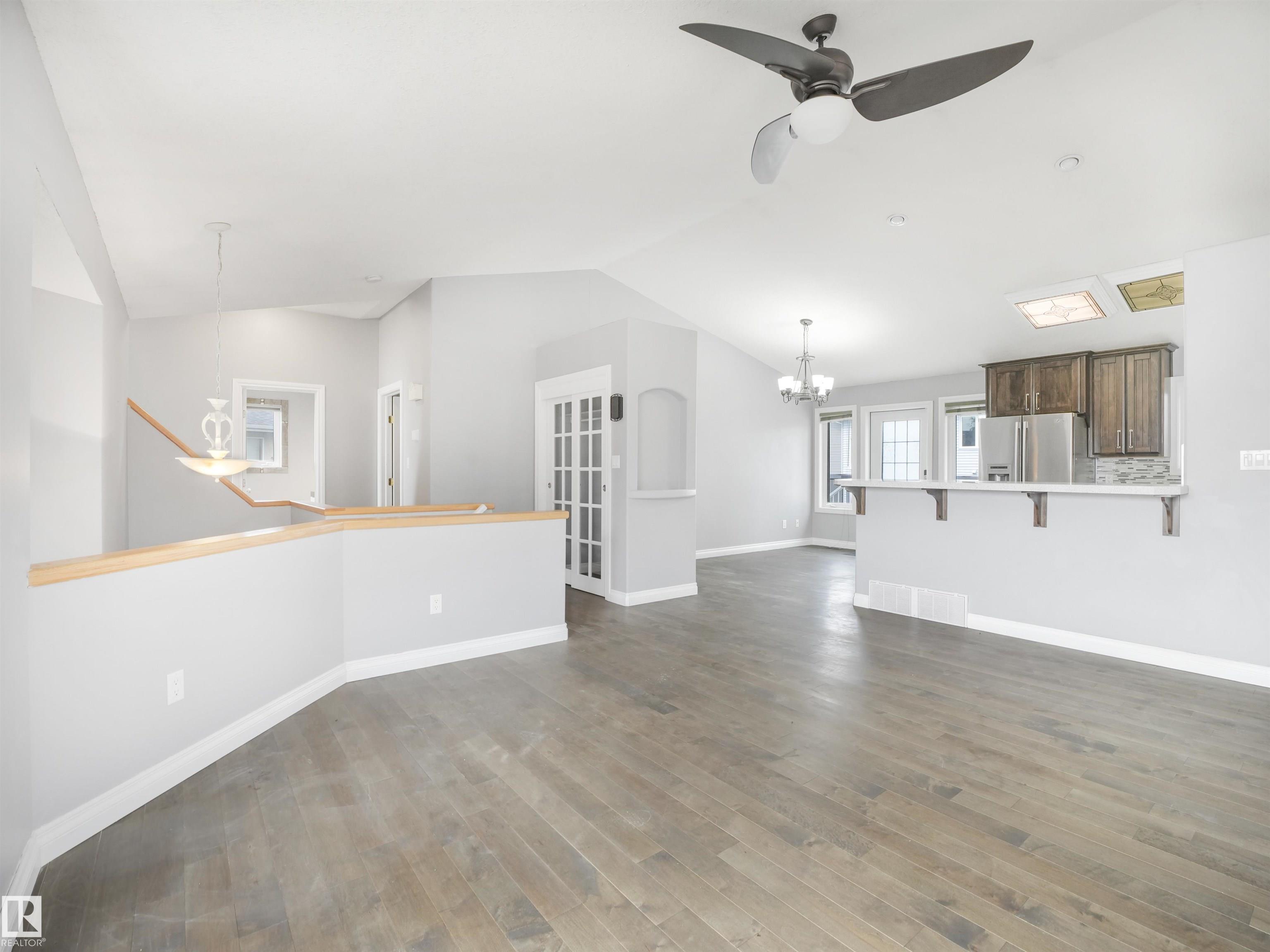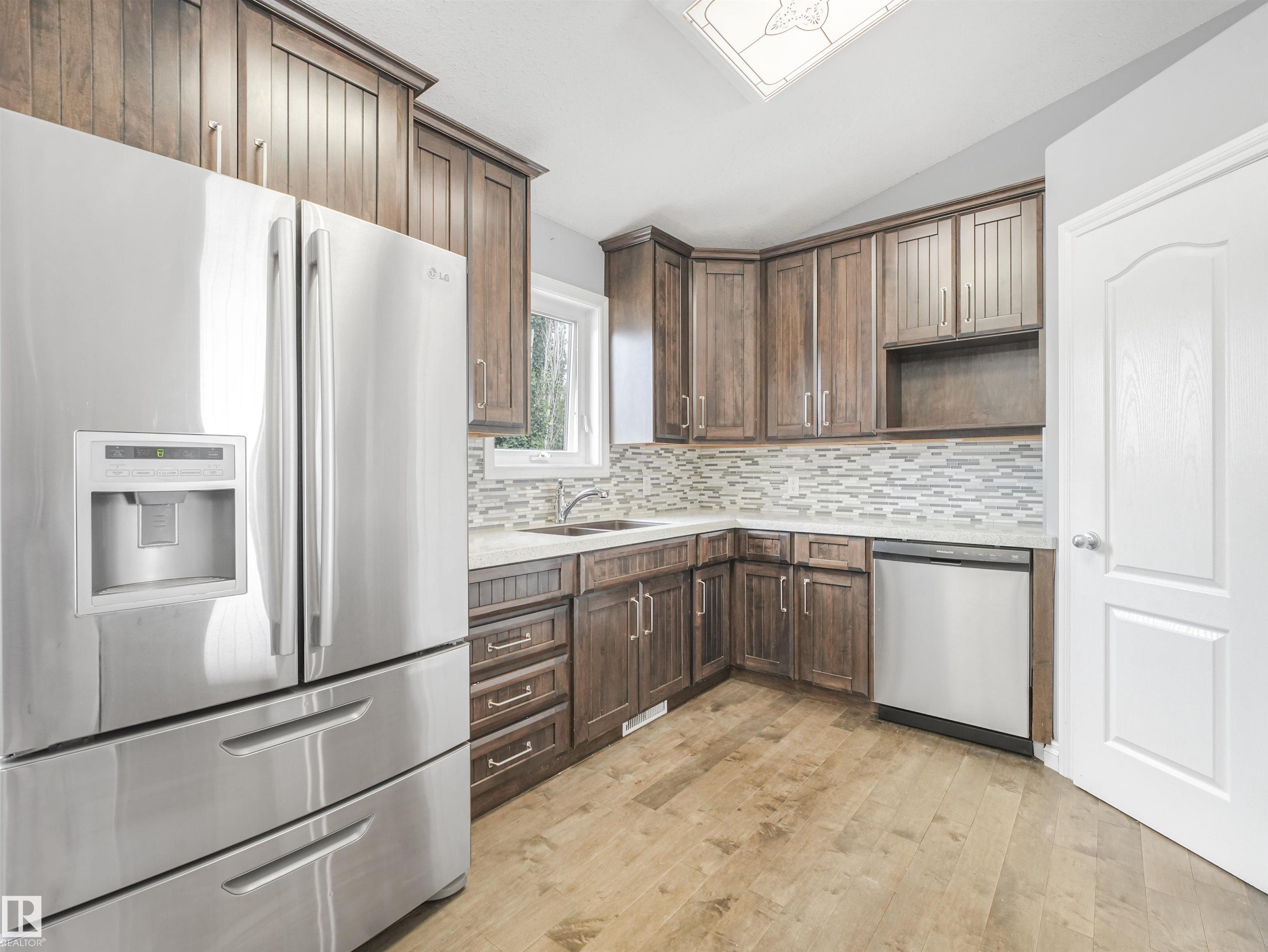 Welcome to this spacious 2002 built bi-level, located in the sought-after community of Deer Park! Step inside to soaring vaulted ceilings, espresso engineered wood floors, and a cozy gas fireplace that set the stage for bright, open-concept living. The chef’s kitchen boasts granite counters, glass tile backsplash, stainless steel appliances, rich oak cabinets, and a corner pantry—perfect for family meals and entertaining. The private primary suite impresses with high ceilings and an ensuite bath, while two additional bedrooms and a full 4-piece bath complete the main floor. Downstairs, enjoy 9-ft ceilings, a spacious rec room, 4th bedroom, another full bath, laundry, and storage. Outside features a fenced yard, raised deck, and double attached garage—all on a quiet cul-de-sac. With trails, parks, schools, shopping, and quick access to Yellowhead nearby, this is a true gem. You’re really going to love this one!