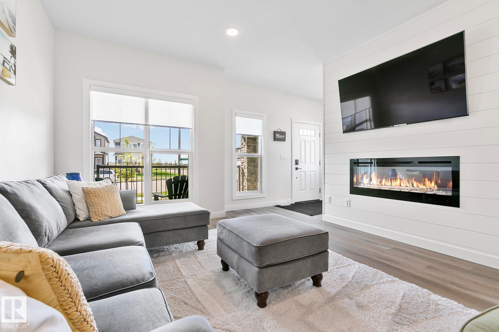 Welcome to this beautifully designed 3-bedroom, 2.5-bathroom home in the sought-after community of Sienna. Offering 1,575 sq. ft. of thoughtfully planned living space, this residence blends modern finishes with functional design. Step inside to find an open-concept main floor featuring a spacious great room and a contemporary kitchen with classic 1.25” quartz countertops, stainless steel appliances, a large island with pendant lighting, and sleek black hardware throughout. The upgraded finishes, including California knockdown ceilings and durable laminate flooring, add both style and comfort. Upstairs, the primary suite offers a walk-in closet and a private dual sink ensuite. Two additional bedrooms, a full bathroom, and a convenient upstairs laundry complete the second level. Additional highlights: corner lot offering enhanced curb appeal & additional natural light, Detached double garage with 8’ overhead door & upgraded electrical ready for a future EV charging station, Central air conditioning.