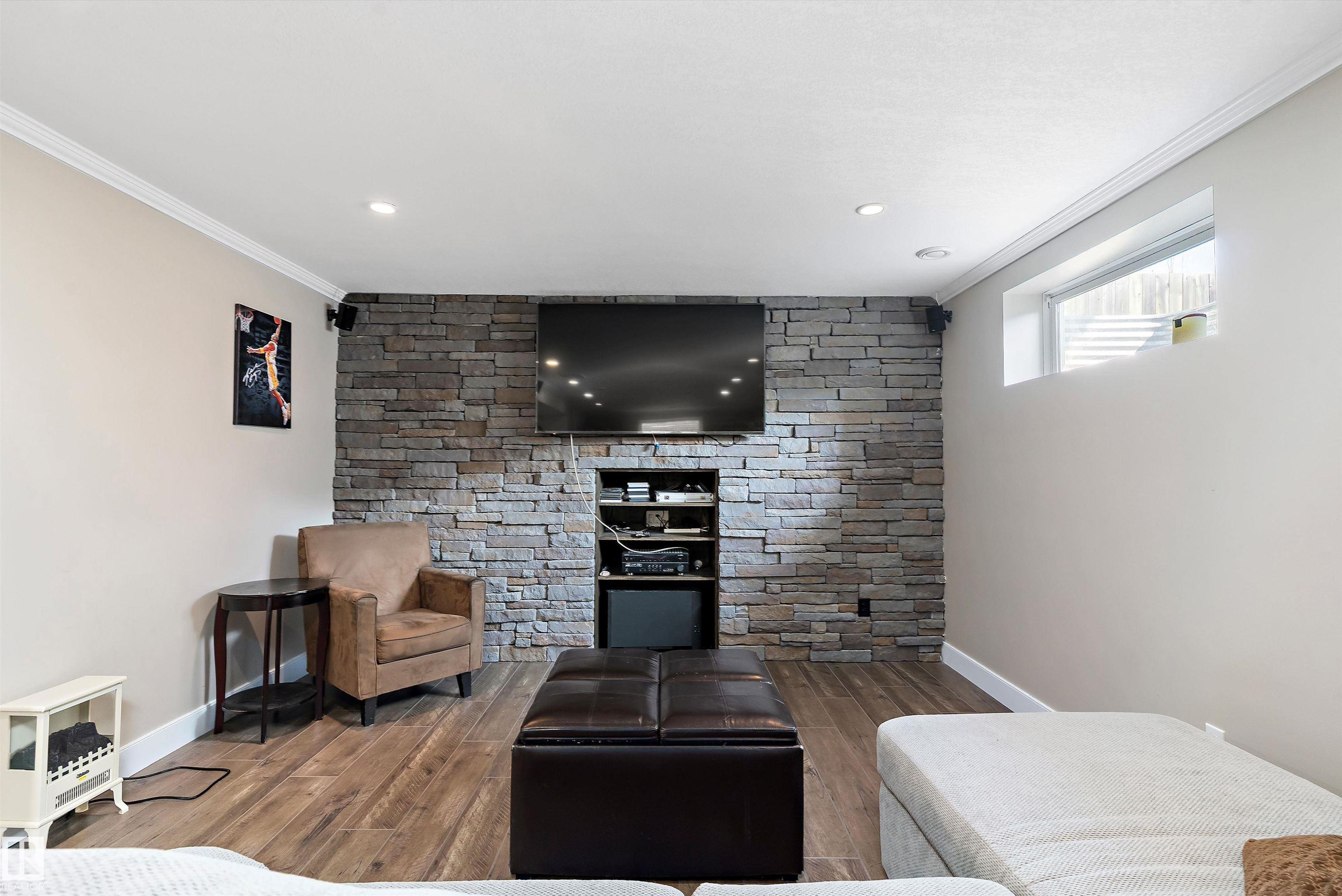 Welcome to this fully finished 1858 sq. ft. 2-storey in Clarkdale Meadows, Sherwood Park. This front-attached garage home offers 3+1 bedrooms, 3.5 baths, and a bright main floor with oak cabinets, breakfast bar, gas fireplace, and new living room flooring. Upstairs features a spacious primary suite with walk-in closet and ensuite, plus two more bedrooms and a full bath. The finished basement includes a large rec room, bedroom, full bath, storage, and even a gated wine room with potential for a private cellar. Recent upgrades include central A/C and a new roof. Outside you’ll find a private backyard with large deck, patio, and storage shed. Located on a quiet street close to schools, parks, and trails, this home combines updates, space, and Sherwood Park convenience.