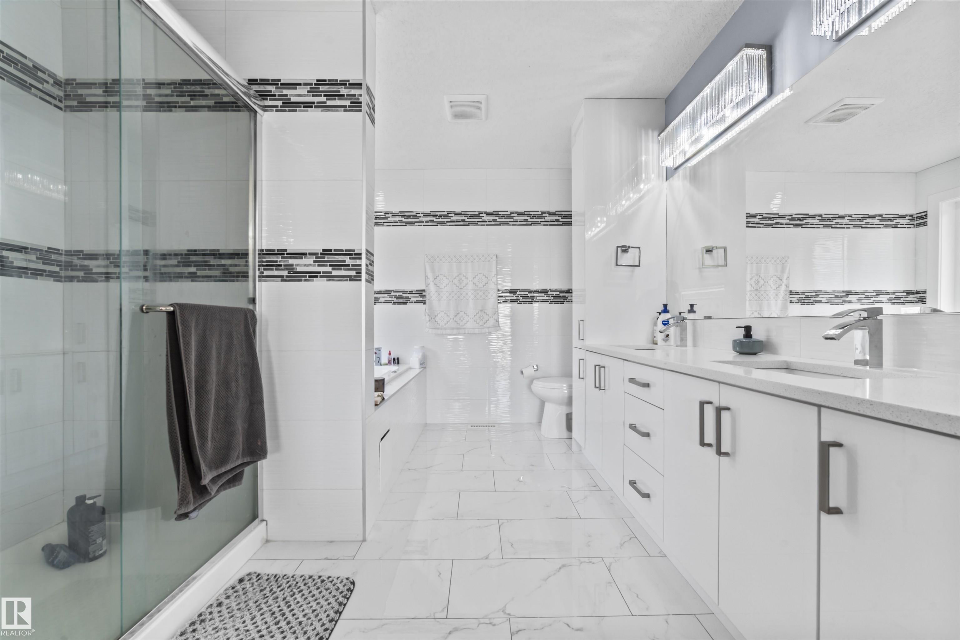 Discover this beautiful north facing, 2-storey in Forest Heights, Beaumont with a fully finished WALK-OUT basement! Step inside to a soaring open-to-above living room, formal dining, family room and a bright open kitchen with walk-thru pantry (roughed-in for a spice kitchen). Enjoy views of the walking trail and beautiful pond from two large balconies on the back of the home! The main floor offers a versatile den/bedroom with full bath. Upstairs features 4 bedrooms, 3 full baths, and a large bonus room. The walk-out basement offers an in-law suite with 2 bedrooms, full bath, 2nd kitchen, plus an additional owner’s suite with half bath. Designed for comfort with 2 furnaces & Central AC! Backing onto a walking trail and just steps from a serene pond, this home combines spacious living with natural beauty—perfect for large families or multi-generational living. (Offers over 4,200 sq.ft of total living space!)