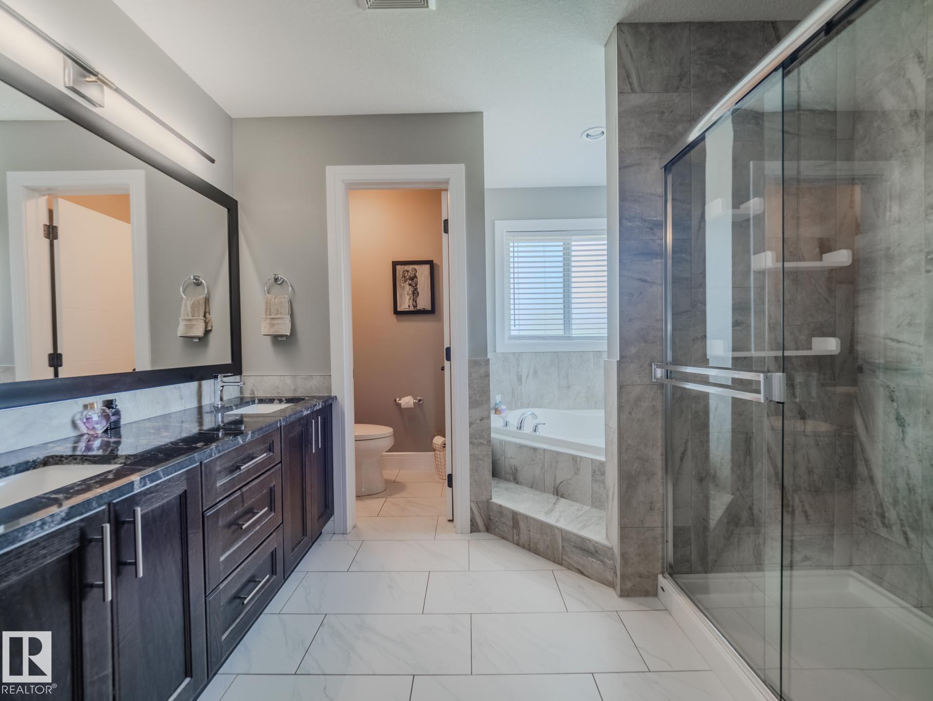 Welcome to this stunning, fully finished walk-out two-story home on a family-friendly street, backing onto a walking path and trees. The upper level features 4 bedrooms -including a luxurious primary with a 5 pc ensuite and walk-in closet, upstairs laundry and a spacious bonus room perfect for entertaining. The main floor offers an open-concept layout with an upgraded kitchen, bright living and dining area, and a dedicated office ideal for working from home. The fully finished basement has recent upgrades, including a new 3-piece bath, new flooring, and a home gym that could easily be converted into a 5th bedroom. Additional updates include fresh paint, high-end carpeting, and a new back patio with a hot tub. A/C, heated triple garage with 220-volt wiring, and showcase exterior lighting. Located within walking distance to a K-9 school, parks, rec centre and shopping. This meticulously maintained home truly has it all!
