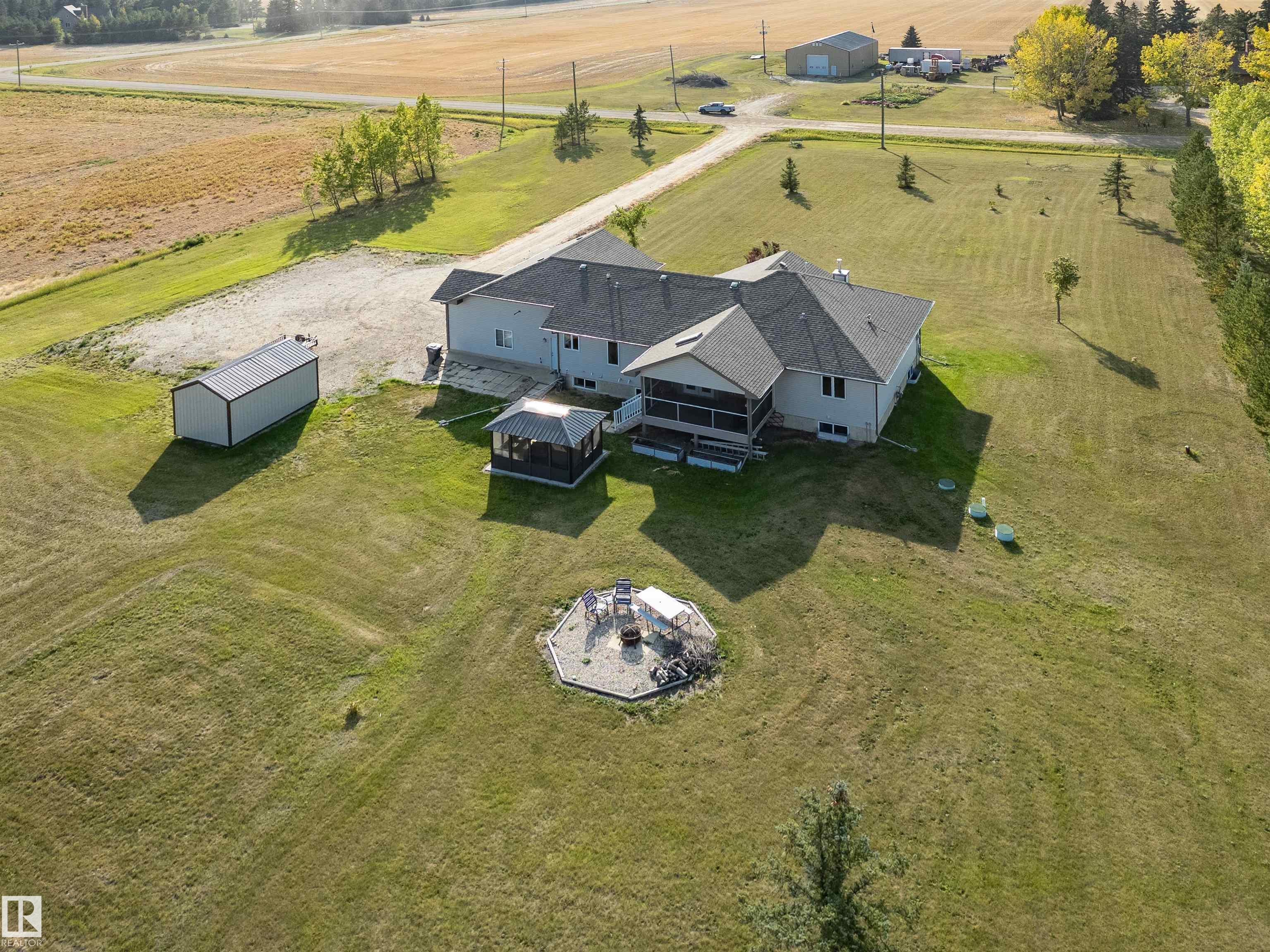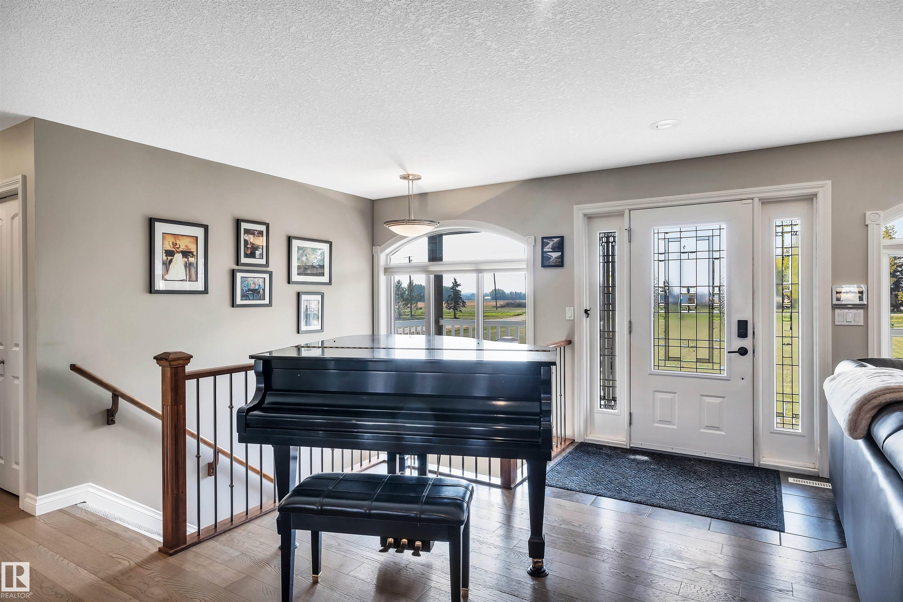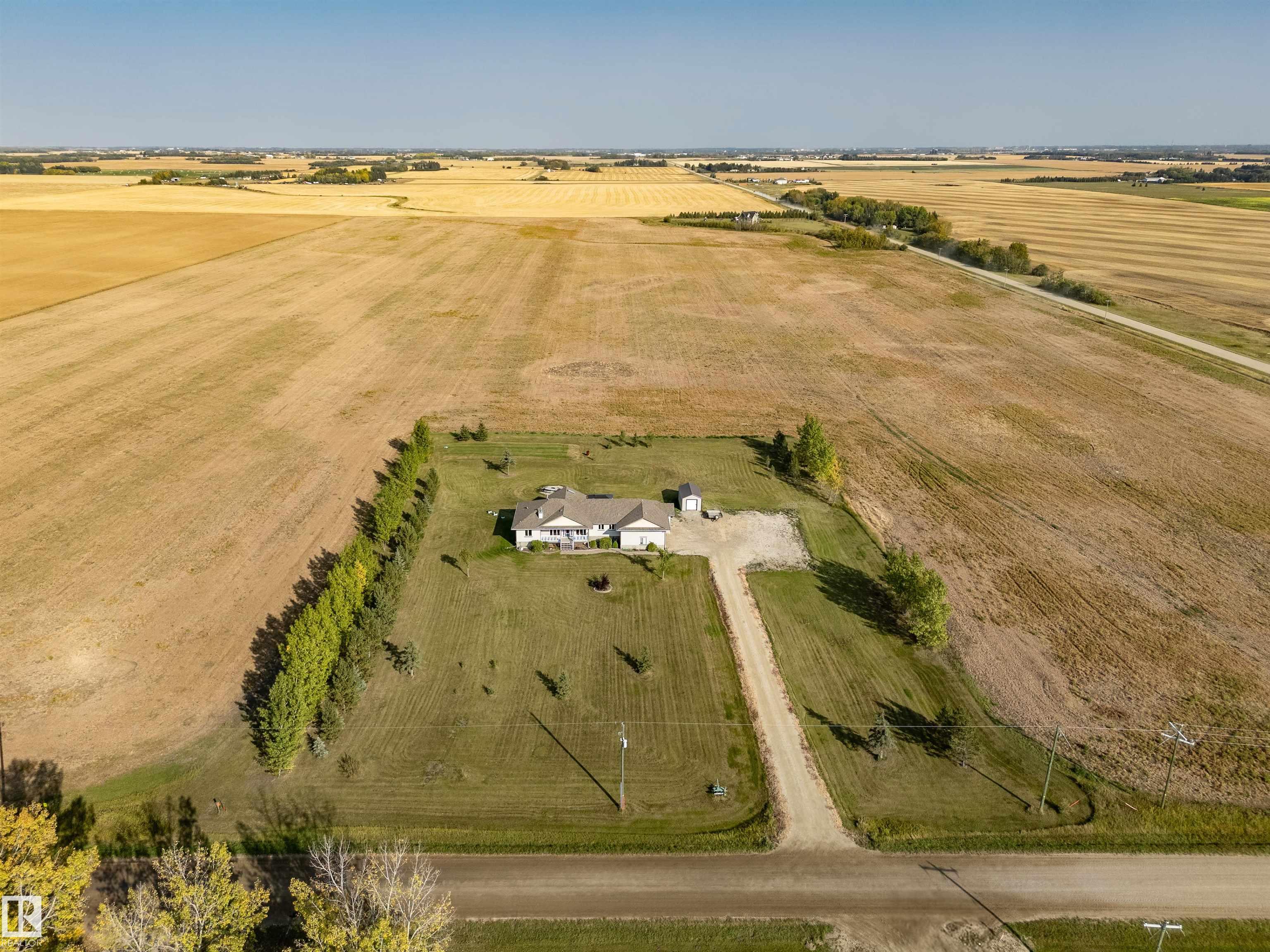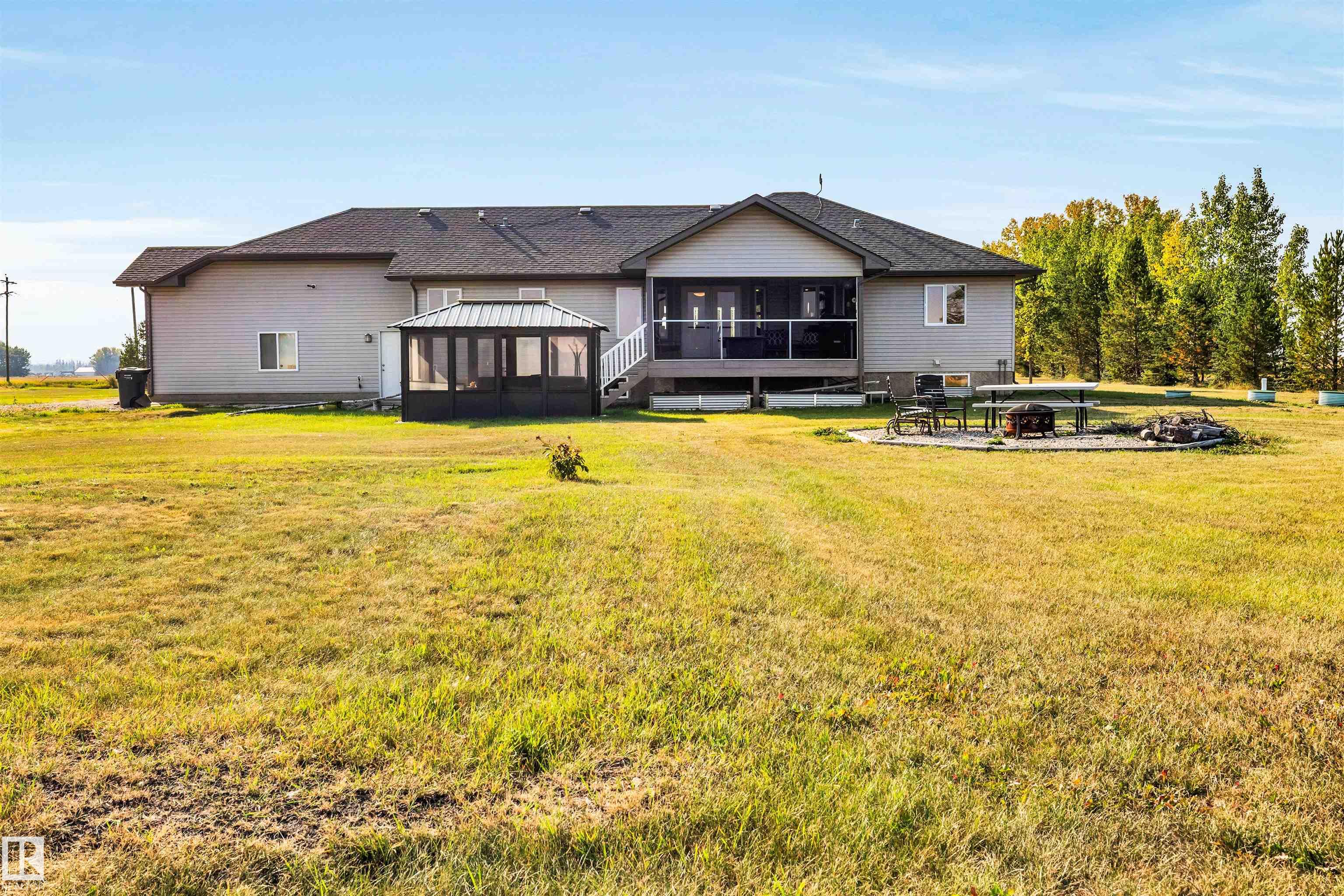Welcome to your dream acreage just minutes from St. Albert! Nestled on 2.47 beautifully landscaped acres, this stunning 5-bedroom, 4-bath bungalow offers the perfect blend of luxury and tranquility. Featuring 9-foot ceilings on both levels, rich hardwood floors, and a spacious open-concept design, this home is ideal for family living and entertaining. The main floor boasts a bright living area, a chef’s kitchen, and access to a screened-in porch—perfect for enjoying the outdoors without the bugs. Downstairs, enjoy a large recreation space complete with a dedicated pool table room. Step outside to find a charming outdoor gazebo, ideal for a hot tub or relaxing under the stars. A heated triple-car garage offers plenty of space for vehicles and toys. Don’t miss this rare opportunity to own a fully finished acreage with high-end finishes and room to roam—just a short drive to all the amenities of St. Albert!