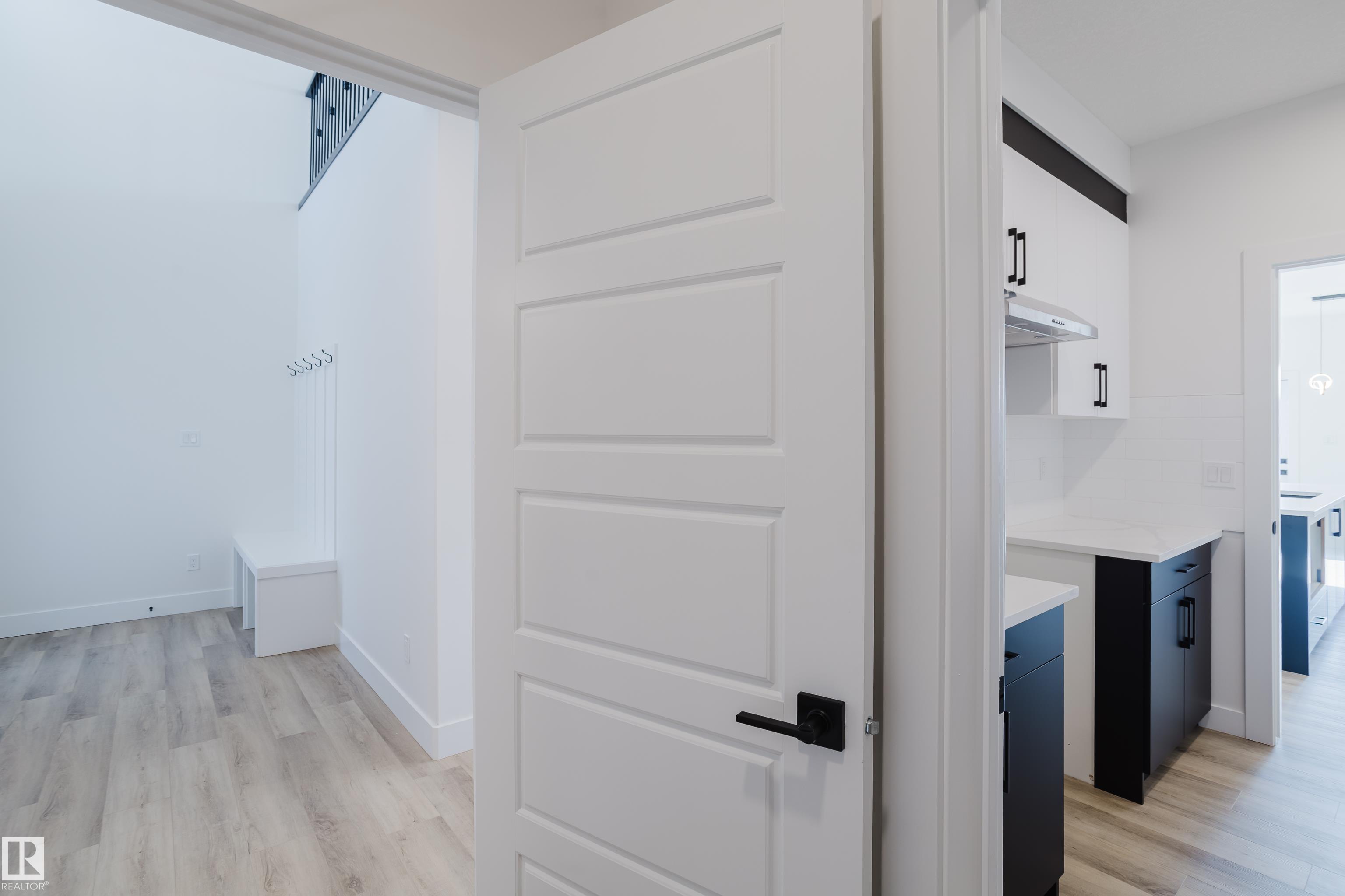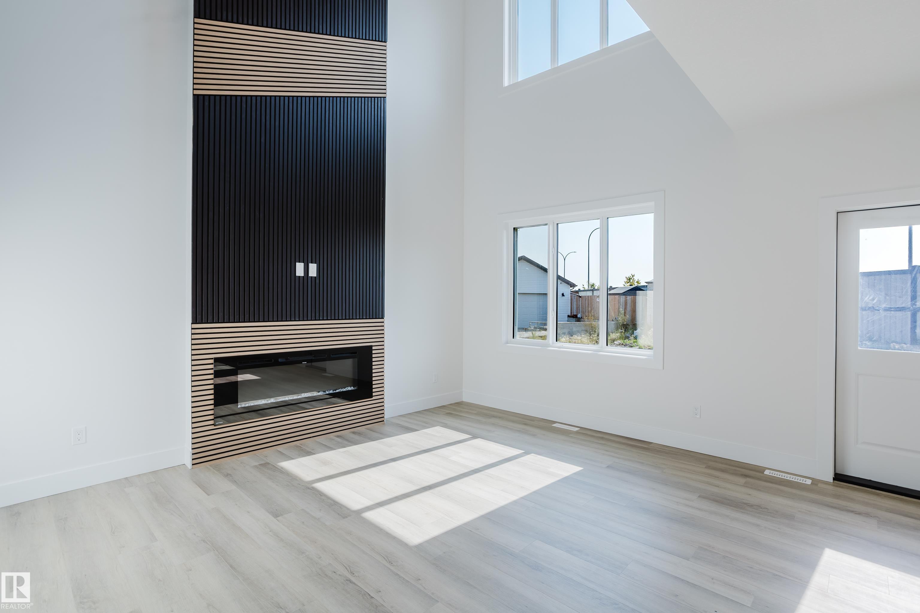 Welcome to this exceptional home in the desirable Meadowview community of Leduc, set on a spacious pie-shaped lot with plenty of yard space. The main floor offers two open-to-above areas, one in the foyer and one in the living room, creating a bright and airy feel. A front walk-in closet with bench and hooks provides practical storage for families. Also on the main floor are a den, a full bathroom with standing shower, a walkthrough spice kitchen, a modern kitchen with sleek finishes, and a living room highlighted by a striking feature wall with electric fireplace. Upstairs are three well-sized bedrooms, including a primary suite with a five-piece ensuite and a stylish accent wall. A versatile bonus room overlooks both the front and back of the home, enhancing the open layout. The basement includes a separate side entrance, offering excellent potential for future development.