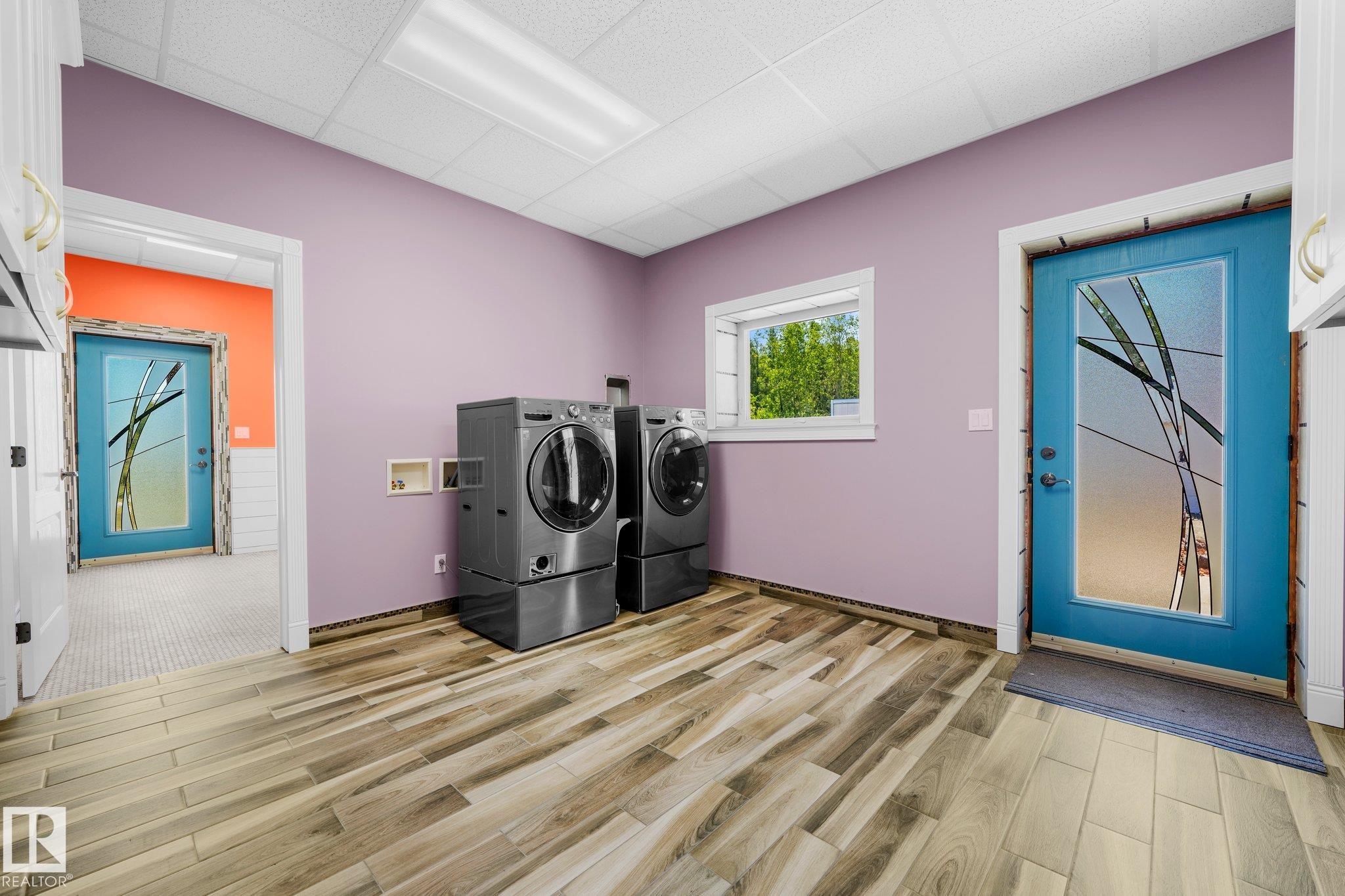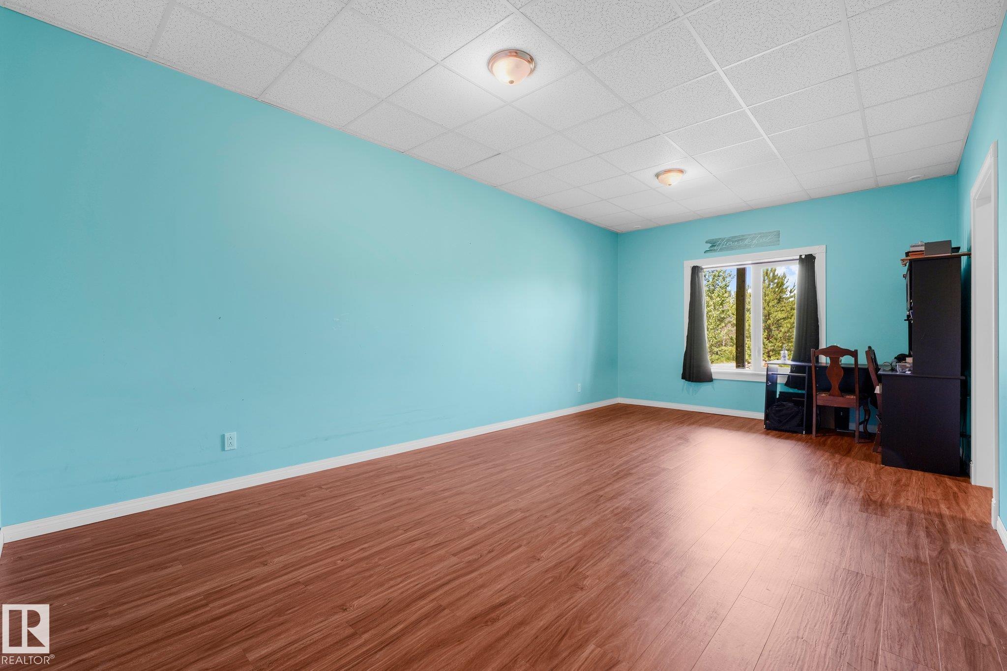 Sprawling bungalow on 78.83 beautiful acres in Parkland County! This property features a 5000+sqft ranch style home with wraparound porch & was designed for energy efficiency, with ICF construction & in-floor heat. Walking into the home, you'll notice the large & open floor plan. The kitchen boasts ample cabinets + pantry & large walk-through storage room, while the living room features an electric fireplace. Down the hall, you'll find 5 massive bedrooms & an office that has plenty of cabinets(was previously used for a homeschool classroom). The primary bedroom has access to the hot tub room & 4 of the bedrooms have 4-pc jack & jill bathrooms, plus there is a 2-pc bathroom off the entrance. The east side of the home has 2 massive bathrooms with multiple shower stalls and toilets which have access to outside. The home is wheelchair accessible! Outside, there is a 6-stall & 3-stall garage with dirt floors + a 48'x56' concrete pad. A beautiful mix of mature spruce & pine trees + approx 35 acres farm land!