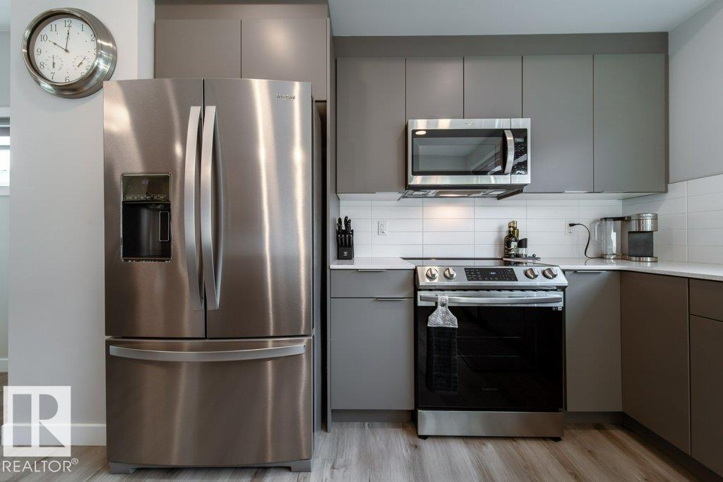 Immaculate & meticulously well maintained END UNIT stylish townhome in the heart of Emerald Hills. With all your favourite shops, restaurants, and amenities just steps away, this home has everything you need! With CENTRAL A/C to keep you cool and gorgeous CUSTOM BLINDS, this 2 bed + bonus room home is better than new! Beautifully designed, step inside & be wowed with VAULTED CEILINGS. MASSIVE WINDOWS bathe the spacious living area with natural light. Up a few steps brings you to the roomy dining area with plenty of space for all your dinner parties. Open kitchen is bright & sunny, with stainless steel appliances, quartz counters, tile backsplash, middle island & walk in pantry. Upstairs king sized primary bedroom also has vaulted ceilings, massive windows, & a beautiful ensuite with walk in shower. Large bonus room is flexible to suit all your needs. 2nd bedroom & full bath complete upstairs. Plenty of storage available in the basement. Oversized double garage will fit your trucks & toys!