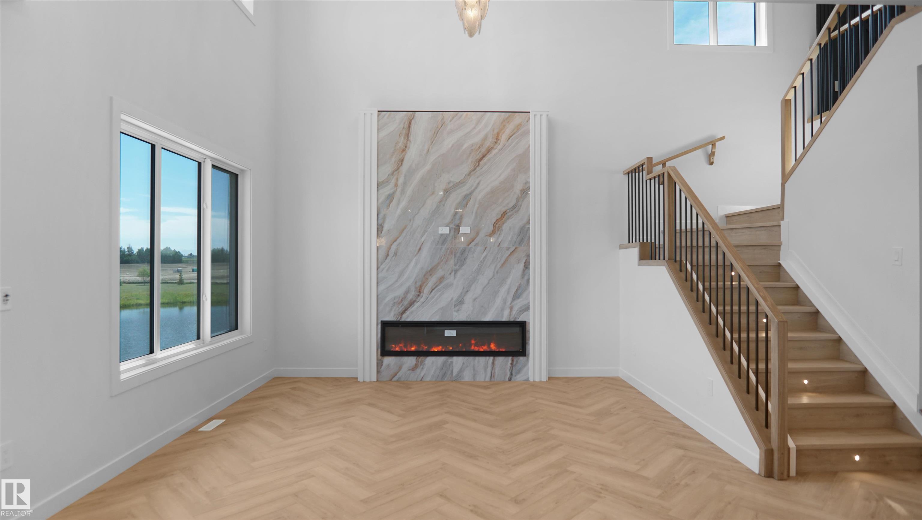 This backing TO GREEN SPACE & POND,open to above, WALK OUT home features 4 bedrooms, 3 baths , SPICE KITCHEN,a bonus room & study nook. The main floor boasts luxury vinyl plank flooring, a versatile bedroom/den,a Full Washroom, a spacious family room and cozy fireplace. The modern kitchen and a SPICE KITCHEN are designed for both cooking and entertaining, complete with high-end cabinetry, quartz countertops, a large island, and a pantry. A bright dining area with ample natural light is perfect for gatherings, while a convenient full bath completes this level. Upstairs, the primary suite offers a 5-piece ensuite and a spacious walk-in closet. Two additional bedrooms,a full bath,study table, a bonus room, and a laundry room provide plenty of space for the whole family. The unfinished WALK OUT basement comes with a separate entrance, offering endless possibilities for customization. Add. Features:Deck,Wireless Bluetooth Speakers,Gas Hookup for BBQ