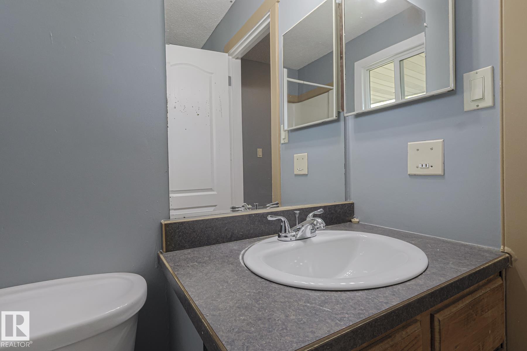 This is it! Great value, CORNER UNIT TOWNHOUSE BACKING A GREEN SPACE/PARK in the Heart Of Spruce Grove! 1 min walk to Brookwood and Woodhaven schools (k-9 spread). Close to public transit stop! 3 bed 1.5 bath home with Plenty of work done to it! FRESH PAINT, TRIM, MAIN FLOOR VINYL PLANK, Bathroom fixtures! Updated windows, big open Living room, Custom black metal railing on the stairs, beautiful Custom oak cabinets, BIG OPEN primary room and 2 other good sized rooms! Basement is partially finished with another room, and rough in for a future 3rd bathroom! Cute lil deck off the back, freshly painted. No maintenance yard! Great place for affordability, MOVE IN READY, IMMEDIATE POSSESSION, will grow with the market, a great starter home!!