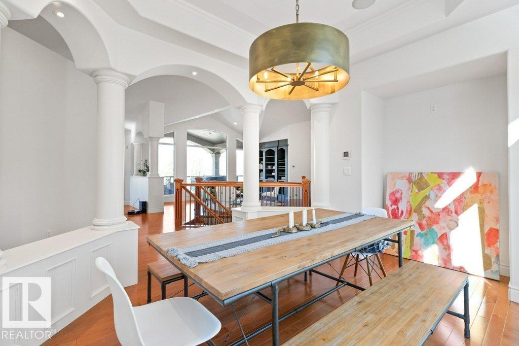 Discover an exquisite executive custom bungalow nestled on 2.45 treed acres, just minutes from Edmonton. This stunning home features soaring ceilings and expansive windows that highlight the beautiful grounds, creating a bright and inviting atmosphere. The main floor, expertly renovated by Weaver Design, boasts a chef-style kitchen w/ updated cabinetry, granite countertops, & stainless steel appliances. Enjoy seamless entertaining in the open-concept living room, formal dining area, & family room. The primary suite is a serene retreat with a fireplace, deck access, & a reno'd spa-inspired ensuite w/ a walk-in closet. Also includes a second bedroom, office, laundry, & bathroom leading to a hot tub. The fully finished basement offers 3 more bedrooms, a full kitchen, games & theater rooms, exercise area, & bathrooms. Both levels access 4 car garage w/ infloor heat. Outside, relax around the firepit or on the expansive deck & patio, complementing the luxurious indoor spaces & exceptional location.