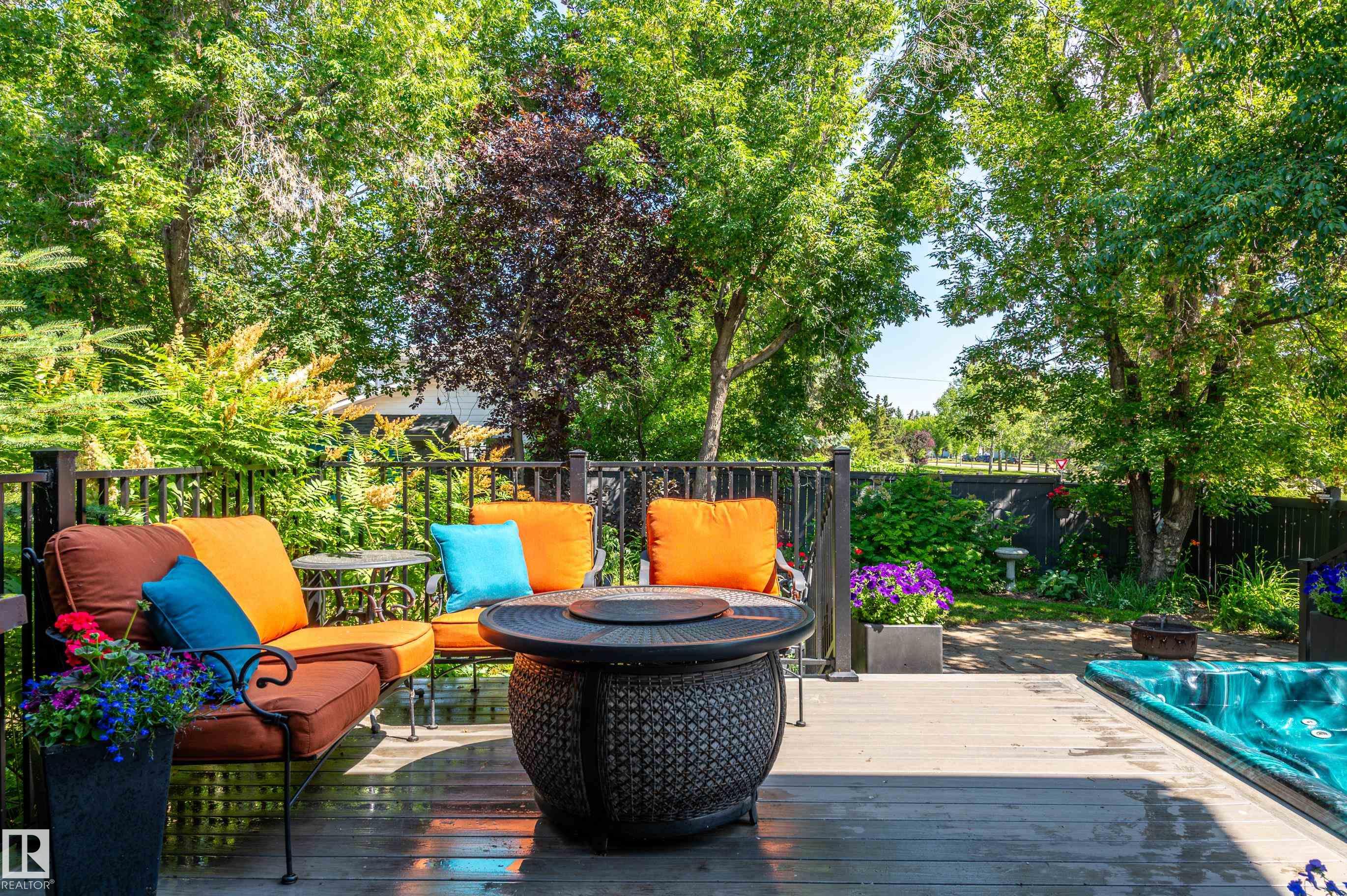 ** Call for your Open House appointment ** Rare Opportunity! This exceptional Ramsay Heights home is steps from the River Valley Trails, Ramsay Park, schools and the U of A bus. Upgrades galore including a renovated kitchen (with tilt and turn European door and a new window with a full garden view), renovated bathrooms and 4 fireplaces. Sky lights and a sun tunnel ensure a bright and cheery vibe wherever you walk on the ceramic, slate and hardwood floors. The newly styled basement has easy care Armstrong floors, a sunken living room, a custom bathroom and loads of room for the entire family to enjoy. New custom windows, storm doors, lighting and door hardware throughout the home are sure to impress. You’ll fall in love with the private entertainer’s backyard with flagstone walkways and patio, custom shed, hot tub and expansive composite deck. The fabulous corner lot curb appeal is custom designed and is simply breathtaking!