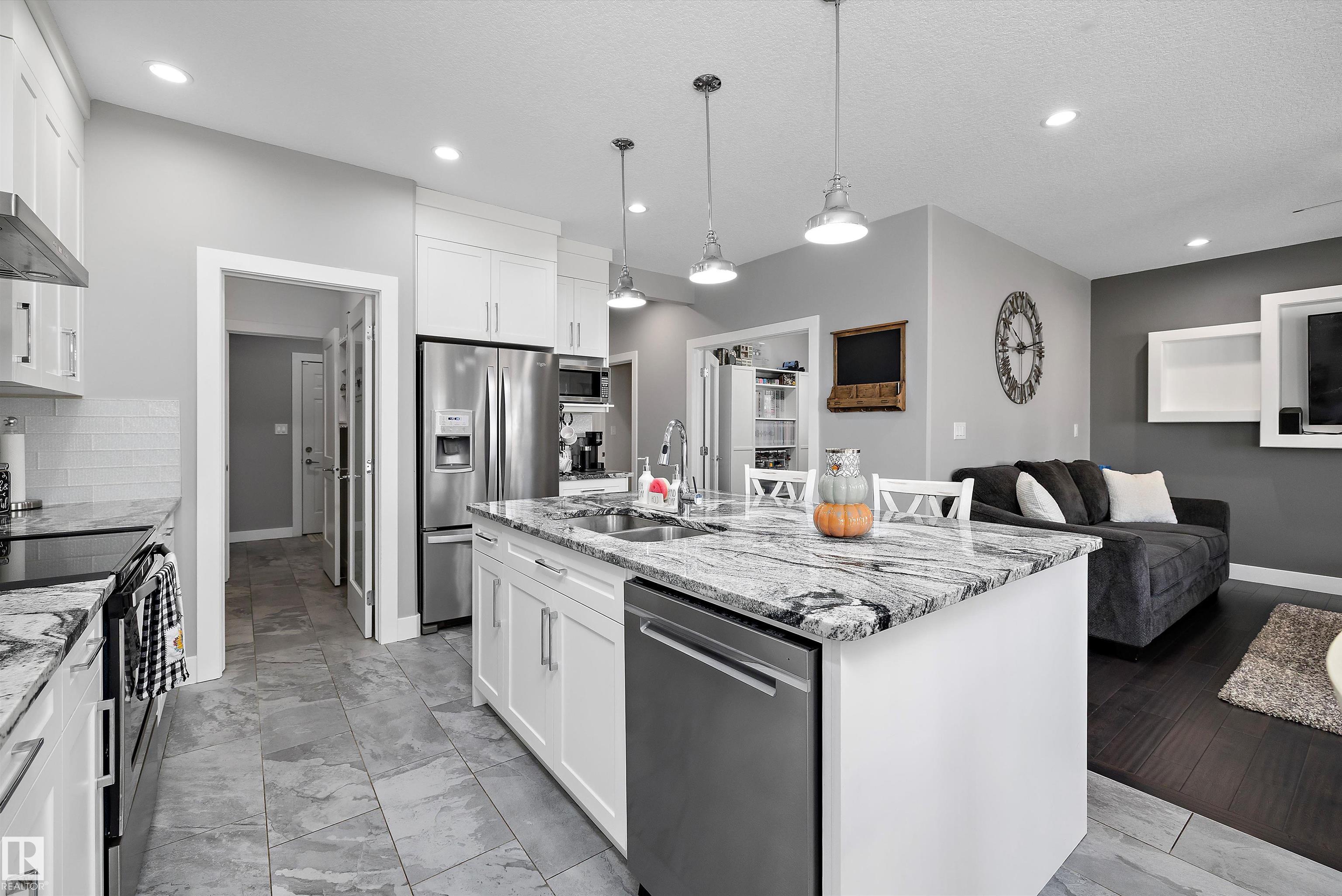 SHOWS LIKE NEW AND FACES GREEN SPACE AND PLAYGROUND! Welcome home to 162 Woodbridge Link, which is PERFECT FOR FAMILILES. Amazing layout featuring 4 bedrooms upstairs plus bonus room (overlooking park), main floor office/flex room, and open concept design with stunning chef's kitchen! Main floor features hardwood and tile flooring, 9 foot ceilings, large mudroom and walk thru pantry, granite counters and s/s appliances in white kitchen. Large living room with fireplace for winters, and has A/C for the hot summers. This house looks barely lived in! Upstairs boasts large primary suite with w/in closet and spa-like ensuite with jacuzzi tub. 3 more bedrooms upstairs, plus gorgeous 4 piece bath are all a great size and the bonus room is ideal for kids. SEPARATE ENTRANCE to basement which has 3 large windows and 9 foot ceilings, making it easy to put in basement suite. Large insulated double garage. Fenced yard with deck w/ gas line. Perfectly located only blocks to the river valley this home is a must see!