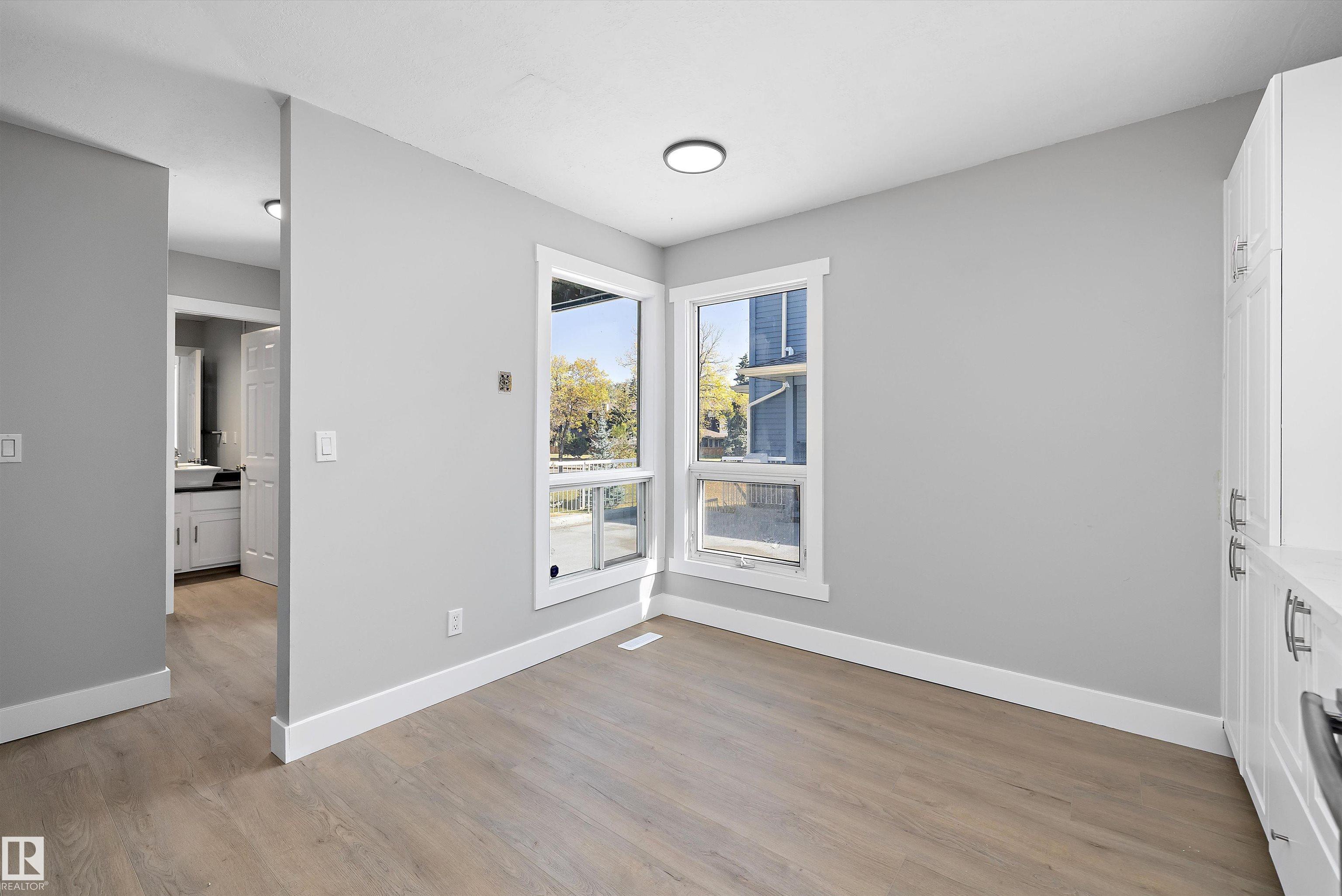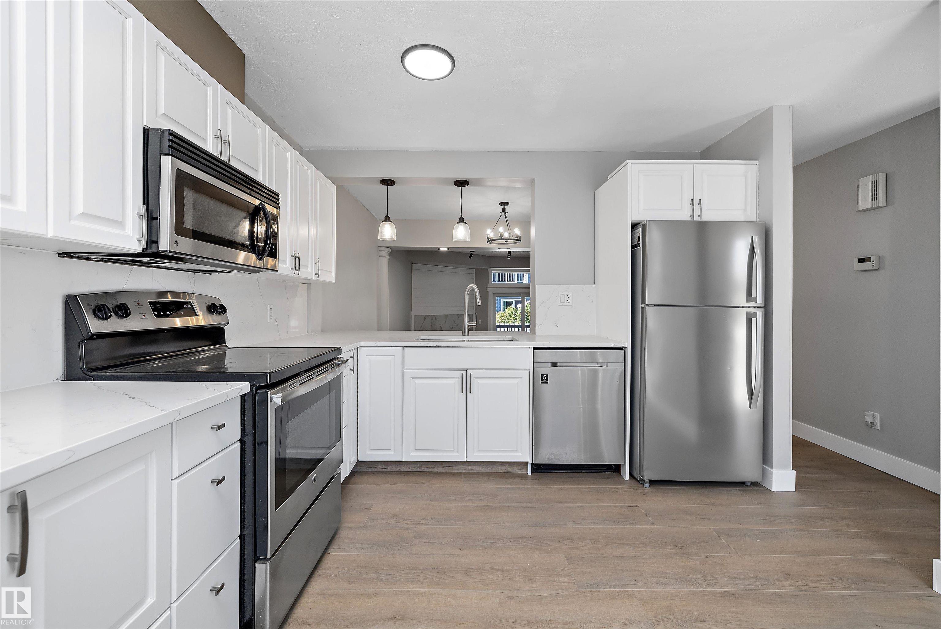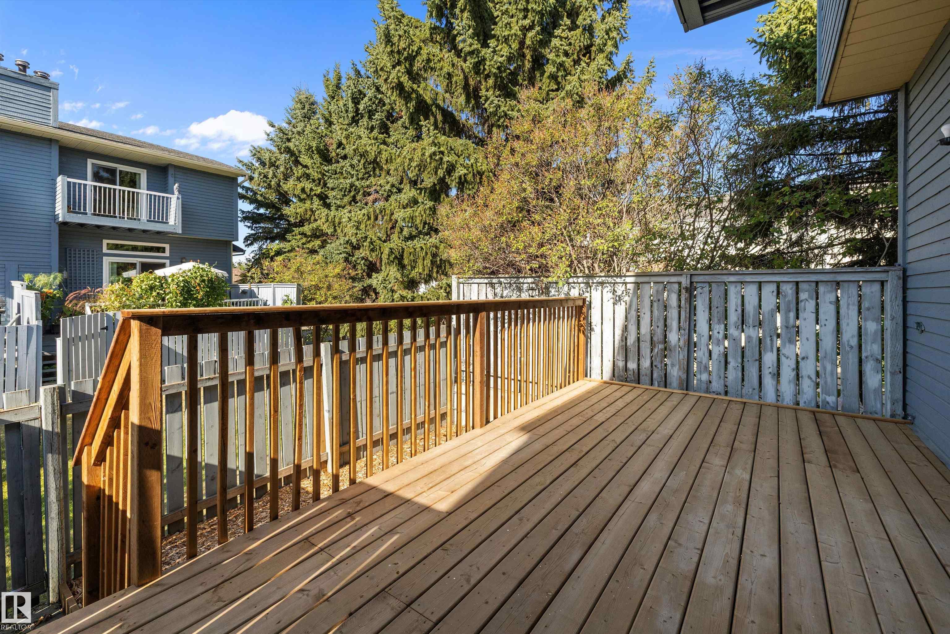 Discover this fully updated 3-bedroom, 2.5-bath townhouse in the heart of St. Albert, complete with a heated double garage! Thoughtful renovations feature durable vinyl plank flooring, carpet, granite countertops with generous prep space, sleek white cabinetry with plenty of storage, modern lighting, and fresh paint throughout. The open dining room connects seamlessly to the cozy family area, creating a perfect space for relaxing evenings. The main level also includes a versatile bedroom & convenient half bath. Upstairs, find two spacious bedrooms, each with its own ensuite bathroom. The primary retreat impresses with a massive walk-in closet and private balcony access. Bonus: laundry is located upstairs for ease! The basement adds excellent function with a flex space, sauna, & shower perfect for unwinding after long days. Outdoors, enjoy a fenced backyard with a brand-new deck and gas line, ready for gatherings and barbecues! Just 2 min from main shopping strip and the Anthony Henday.