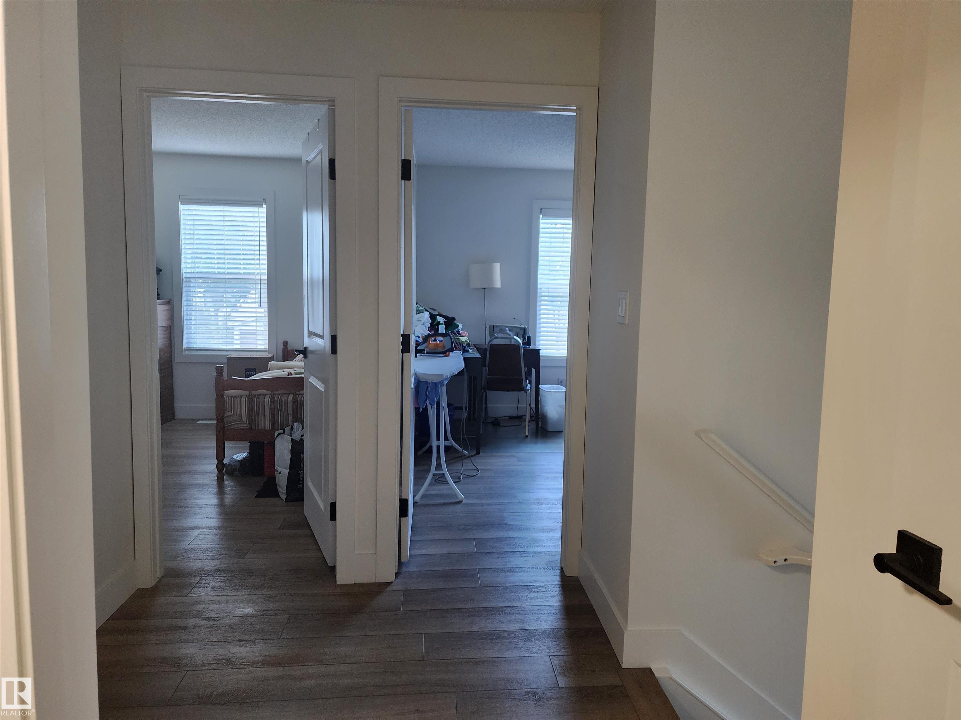 Welcome to this beautiful home in Griesbach, offering nearly 1,900 sq.ft. of stylish living space. Features include 9' ceilings, luxury vinyl flooring, a gourmet kitchen with 8' island and stainless steel appliances, and a bright living room with gas fireplace. Upstairs boasts 3 bedrooms, including a primary suite with 4-piece ensuite and walk-in closet, plus convenient laundry. The finished basement adds a large rec room and extra bedroom. Enjoy year-round comfort with central air conditioning. Outside offers a private fenced yard, deck with gas line, and a 22' x 22' double garage. Minutes to downtown, schools, shopping, and parks—this move-in ready gem combines comfort, style, and location.