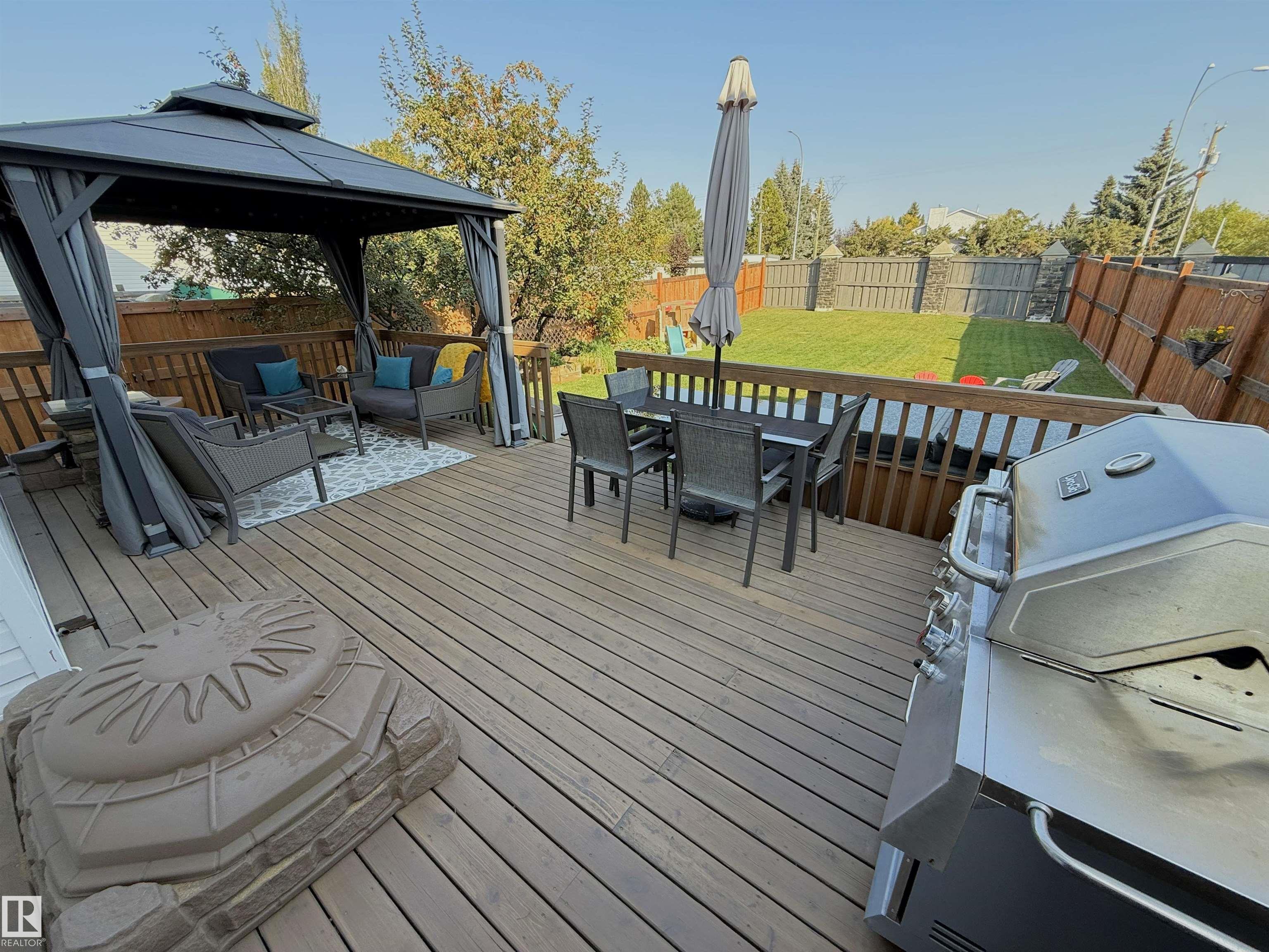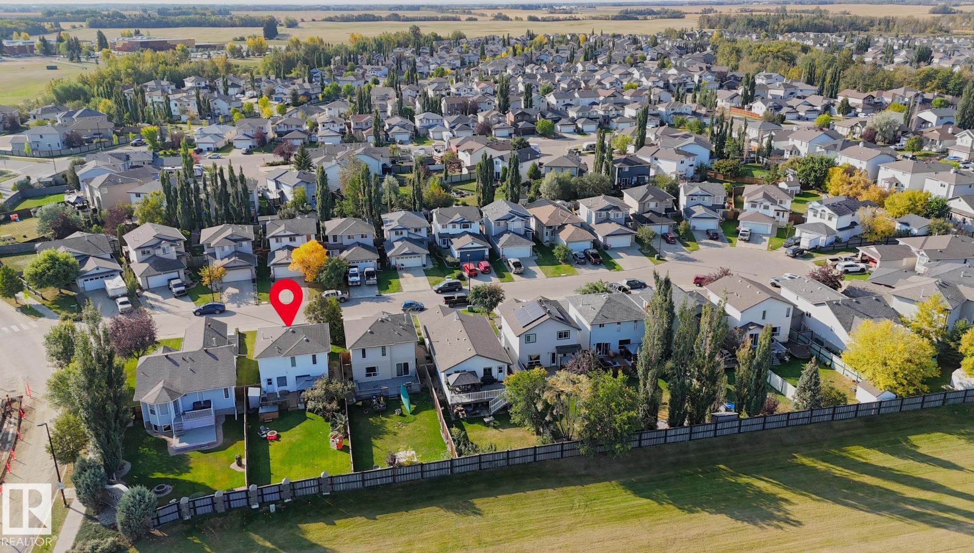 Beautiful 2-storey with attached double garage (19Wx20L, insulated) located in a cul-de-sac, steps to walking trails and pond. This 1,345 square foot (plus full basement) home features central air conditioning, main floor laundry room and a fantastic floor plan. On the main level: 2-piece powder room and an open concept living room, dining area (with deck access) and gourmet kitchen with large eat-up peninsula, built-in dishwasher & corner pantry. Upstairs: 2 full bathrooms and 3 bedrooms including the owner’s suite with double closets and a 4-piece ensuite. Fully finished basement with 4th bedroom, 3-piece bathroom and flex room (home gym or future den/family room). Landscaped, fenced back yard with deck, gazebo, hot tub, fire pit, raised garden beds and storage shed. Great location within walking distance to both High Park School & Memorial Composite High School. Easy access to Highways 628 & 779. Fantastic opportunity!