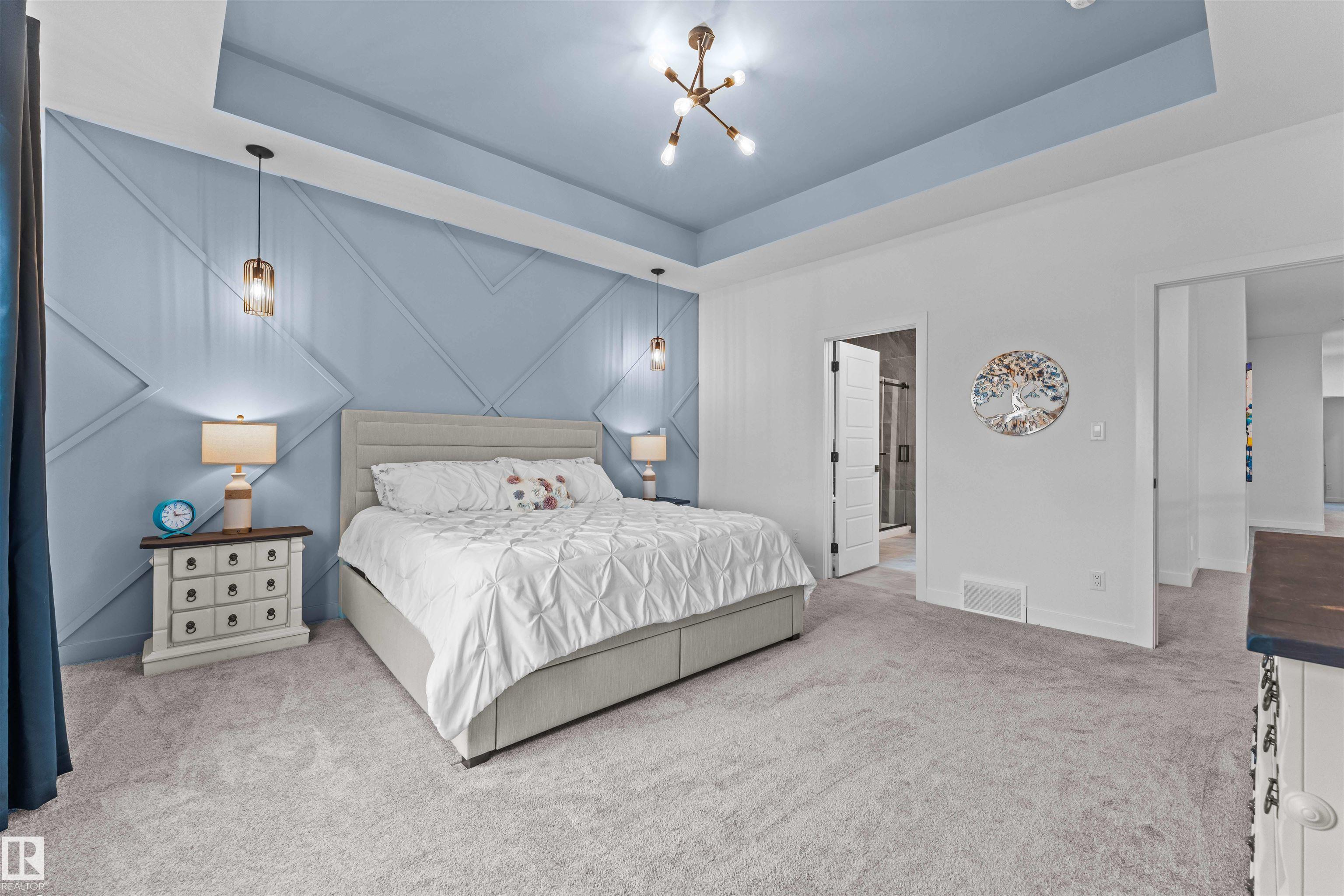 Stunning 2-storey walkout Victory Home, built in 2022 offers over 2,600 sqft with 3 beds & 2.5 Baths and is designed to impress! The open-concept layout with soaring ceilings offers elegance and space from the moment you enter. Love to cook and entertain? The chef’s dream kitchen with Gas Cook Top & Wall Ovens also features a large island with Waterfall Counter tops, pantry, and buffet counter—perfect for gatherings. Main floor includes a den/office or 4th bedroom & Half Bath. Upstairs, the primary suite boasts a 5-piece ensuite, walk-through closet & Private Balcony with serene lake views. Loft Area 2 more spacious bedrooms, full bath, and convenient laundry Room complete the upper floor. Enjoy incredible upgrades: Heated Triple Garage with RV-Height door, A/C, Stamped Concrete Patio, low-maintenance yard with Artificial Turf & limestone, Composite Fence & Gates. Immaculately Maintained—A perfect home for family living—luxurious, functional, and move-in ready!
