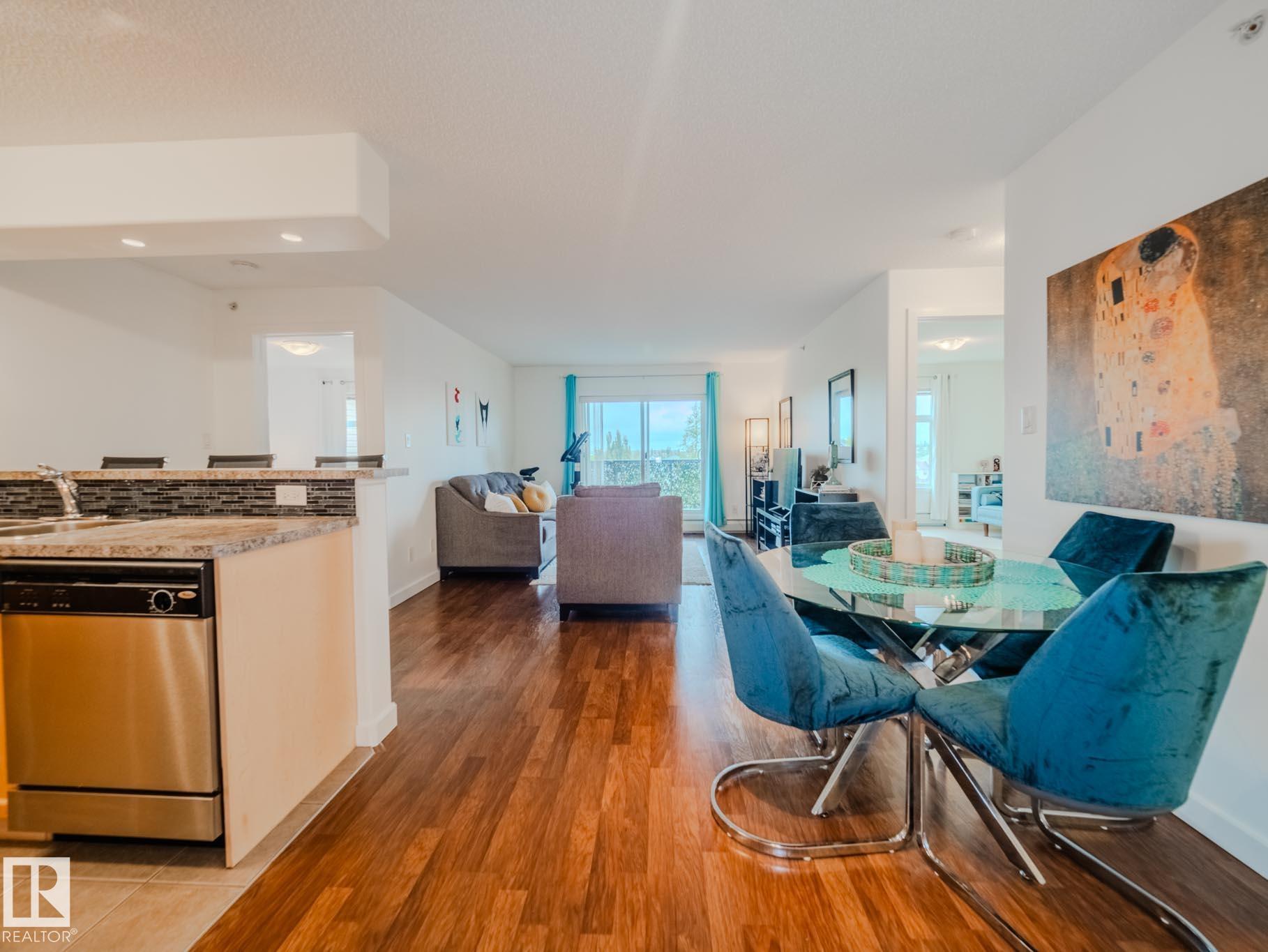 This is the one! TOP FLOOR...2 Bedroom, 2 Bathrooms, 2 TITLED UNDERGROUND, SIDE BY SIDE PARKING STALLS with one storage cage! This 936 sf open floor plan faces south with an abundance of natural light! The foyer has plenty of space which leads you into the kitchen with a sit up area and dining area! The living room is facing south and the balcony with a natural gas hook up is off of the living room. It has the perfect set up with both bedrooms being at opposite sides of your living space. The primary bedroom has a walk through closet with plenty of space on both sides as you go into the 3 piece ensuite. The second bedroom is perfect for another bedroom or a den/office. There is another 4 piece bathroom right beside this bedroom! Rutherford Gate has amenities which include a gym, social room and guest suite. All of this and it's in an amazing location with easy access to the Anthony Henday, shopping, public transportation and schools! THIS HOME SHOWS LIKE NEW!