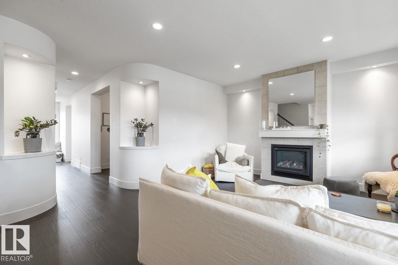 Elegant & Move-In Ready Across from the Park! This stunning 3 bedroom, 2.5 bath home with double garage is sure to impress. A charming front verandah and beautifully landscaped yard welcome you inside to rich hardwood floors flowing throughout the main level with 9' ceilings. The spacious living room is filled with natural light and anchored by a cozy fireplace. The gorgeous kitchen is designed for entertaining with S/S appliances, walk-in pantry, and a massive island with built-in storage, overlooking the dining area and flex space. Convenient main floor laundry and a 2pc bath complete the layout. Upstairs, retreat to the king-sized primary suite with a luxurious ensuite and walk-in closet with organizers. Two additional bedrooms, both with walk-in closets, plus a 4pc bath and 9’ ceilings complete the upper level. The unfinished basement offers endless potential. Outside, relax in the fully landscaped & private yard featuring a tiered deck and access to the oversized 23x22 garage.
