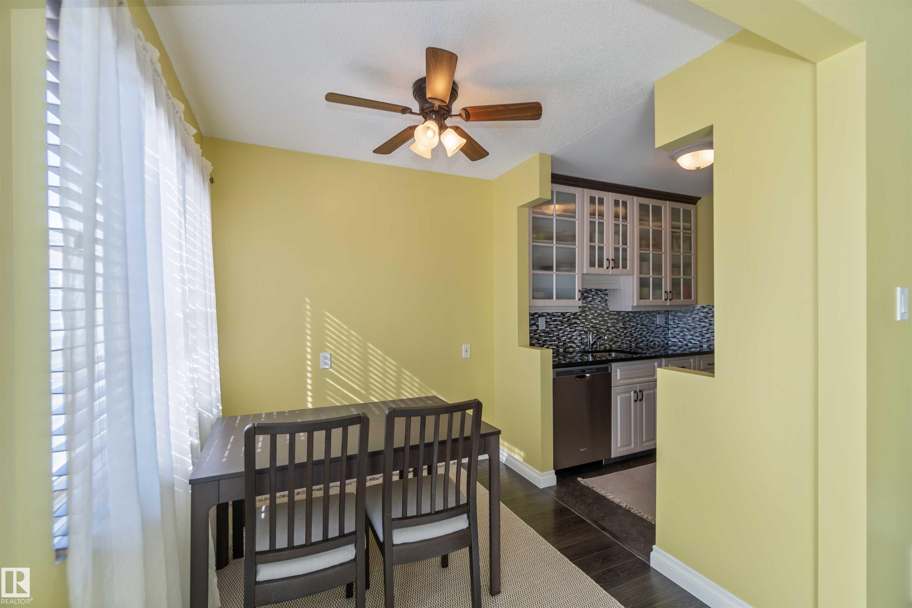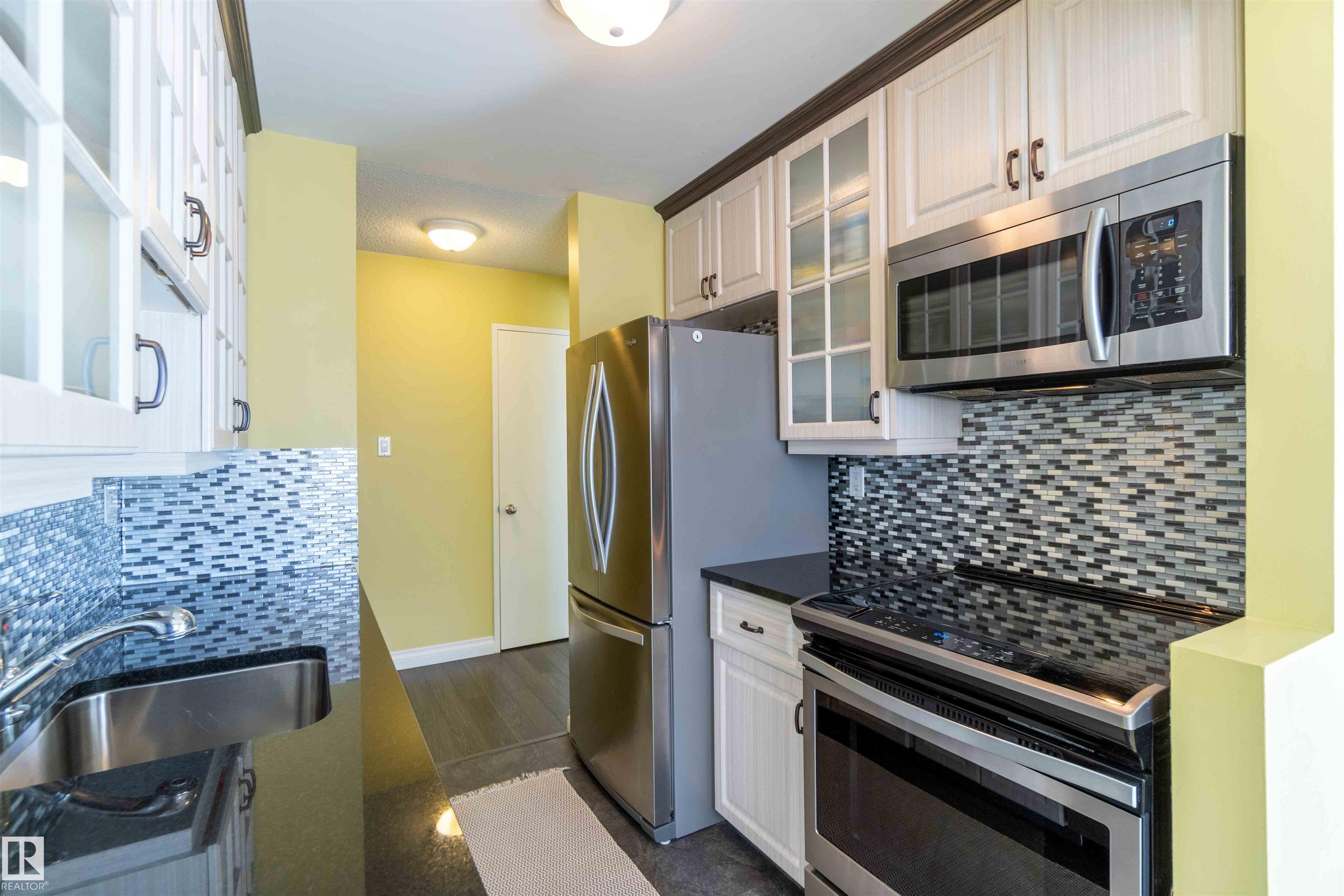 Welcome to Cedarbrae Garden & it's park like setting. This fabulous south facing 2 bed & 1 bath top floor condo is move in ready including updated flooring, kitchen and bathroom. The spacious living room is bright with a large patio door that floods the room with the sun. The kitchen updates include countertops, cupboards and stainless steel appliances. The primary bedroom is ample with room for a king sized bed plus plenty of storage. The second bedroom is good sized and bright. The bathrooms is updated and very stylish. The condo also features in suite laundry, plenty of storage within plus additional storage cage provided. Cedarbrae Gardens has an exercise room, social room, gazebo and guest suite. Conveniently located near Southgate Mall, the Whitemud, the LRT, shopping, leisure centre, multiple schools and the U Of A. Welcome Home!