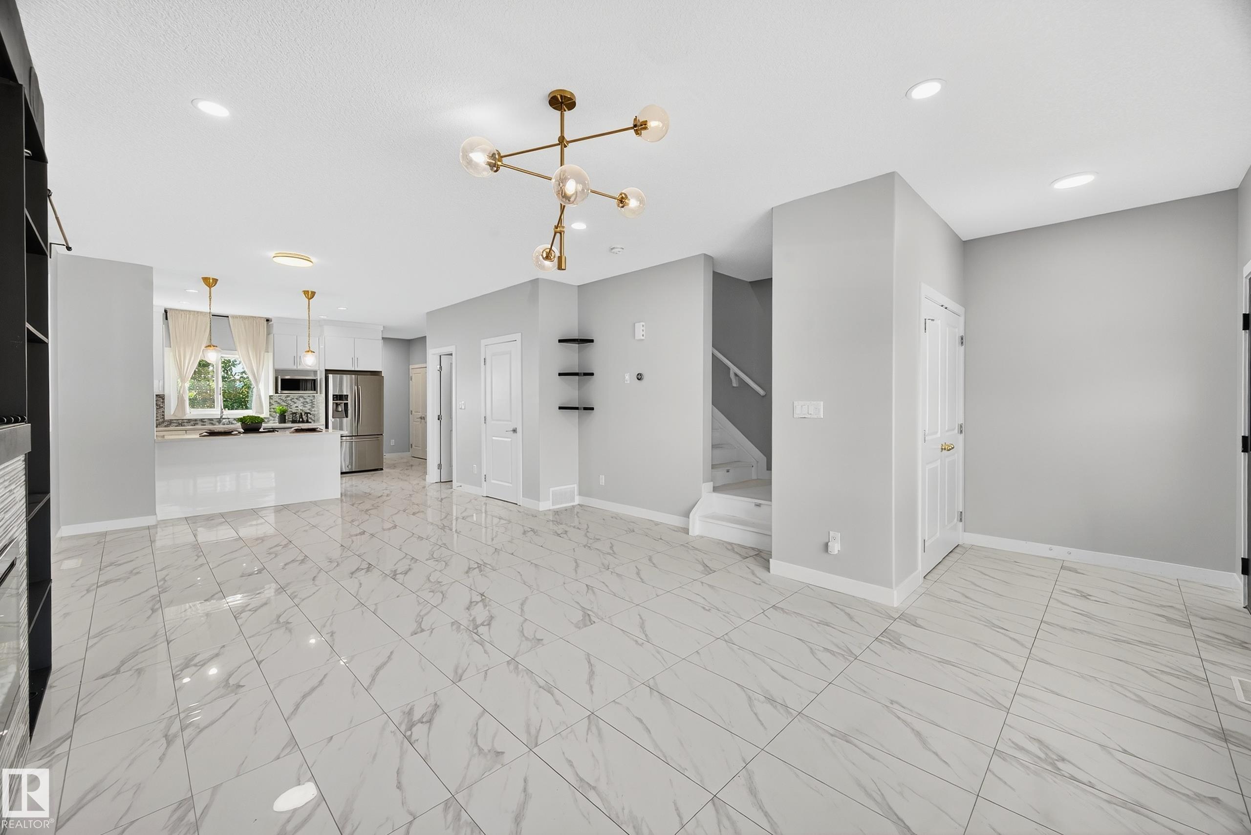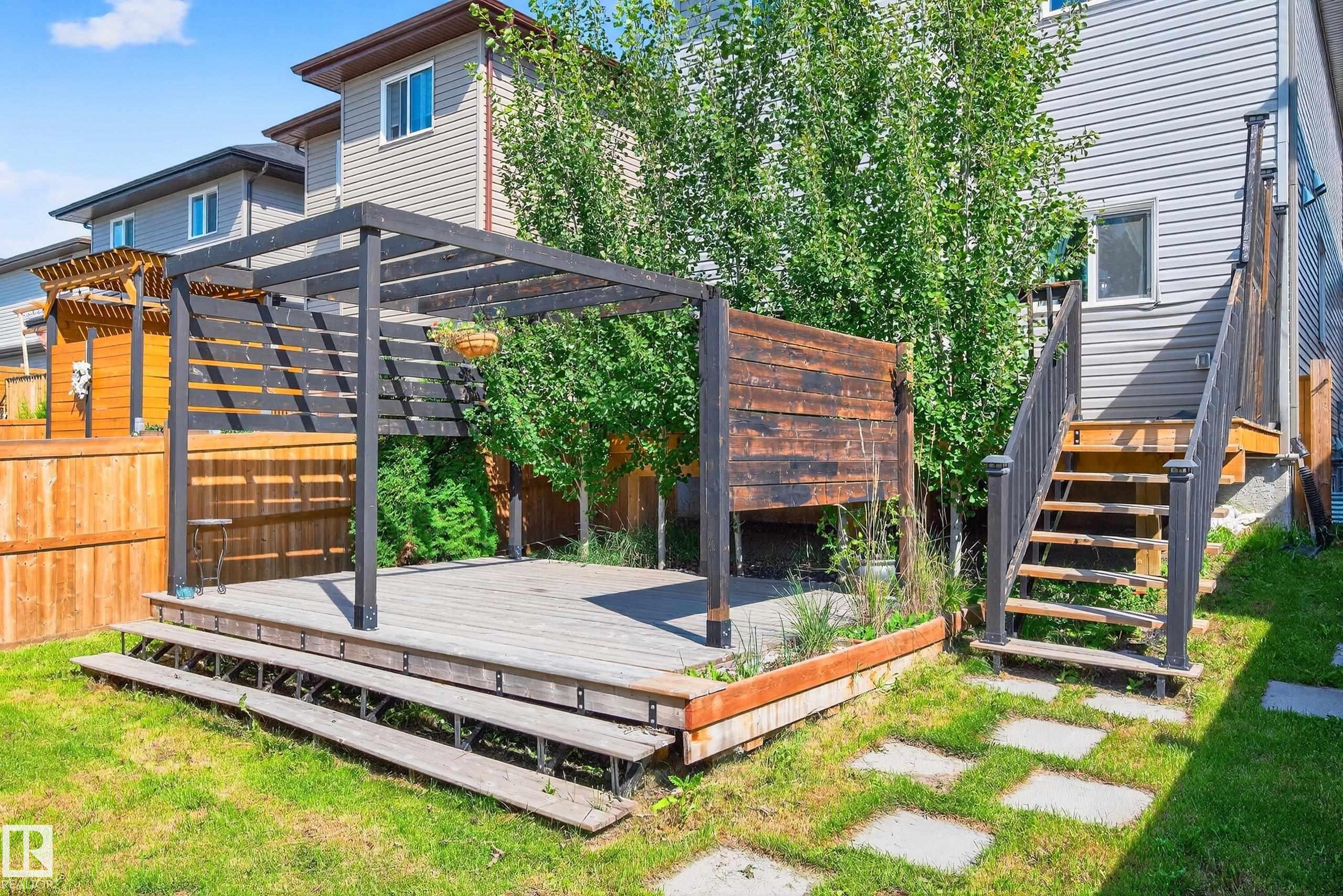 Welcome to this impressive 1,658 sq ft two-story home in Forest Heights! Step inside to a bright, open layout highlighted by 12x24 porcelain tile flooring throughout the main level. The striking electric fireplace with a tile surround and built-in wall unit creates a cozy focal point for relaxing evenings. The kitchen is a chef’s dream, featuring stainless steel appliances, quartz countertops, a stylish glass backsplash, and glossy white cabinetry offering plenty of storage. Outside, enjoy a spacious backyard with a two-tiered deck, privacy fence, and a double detached garage. Upstairs, you’ll find three bedrooms with laminate flooring and a four-piece main bath. The primary suite is a true retreat, complete with a beautiful ensuite and walk-in closet. The fully finished basement, with a side entrance, three large windows, a generous rec room, bedroom, and four-piece bathroom, is perfect for entertaining or guests. This home shows like new—don’t miss your chance to see it!