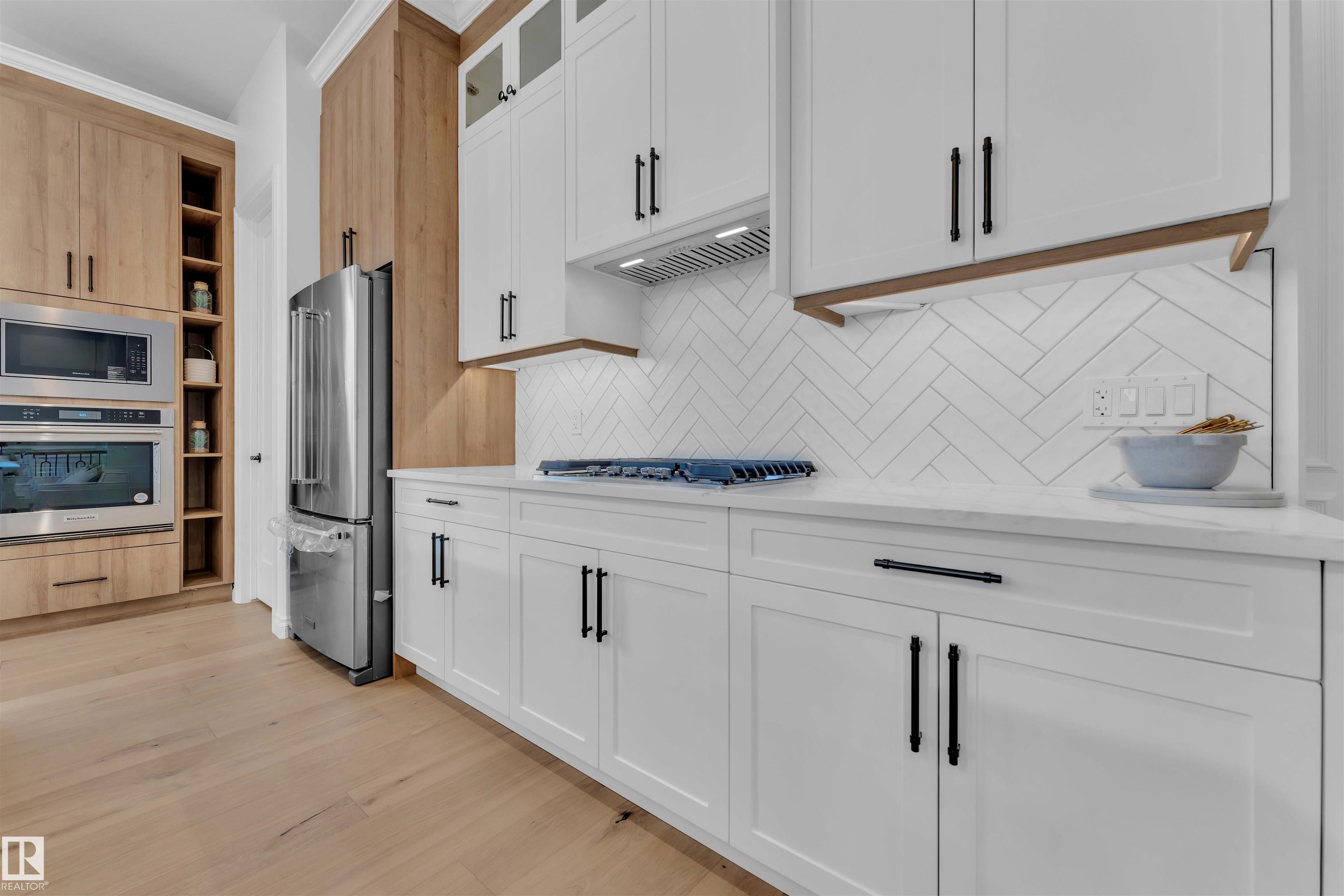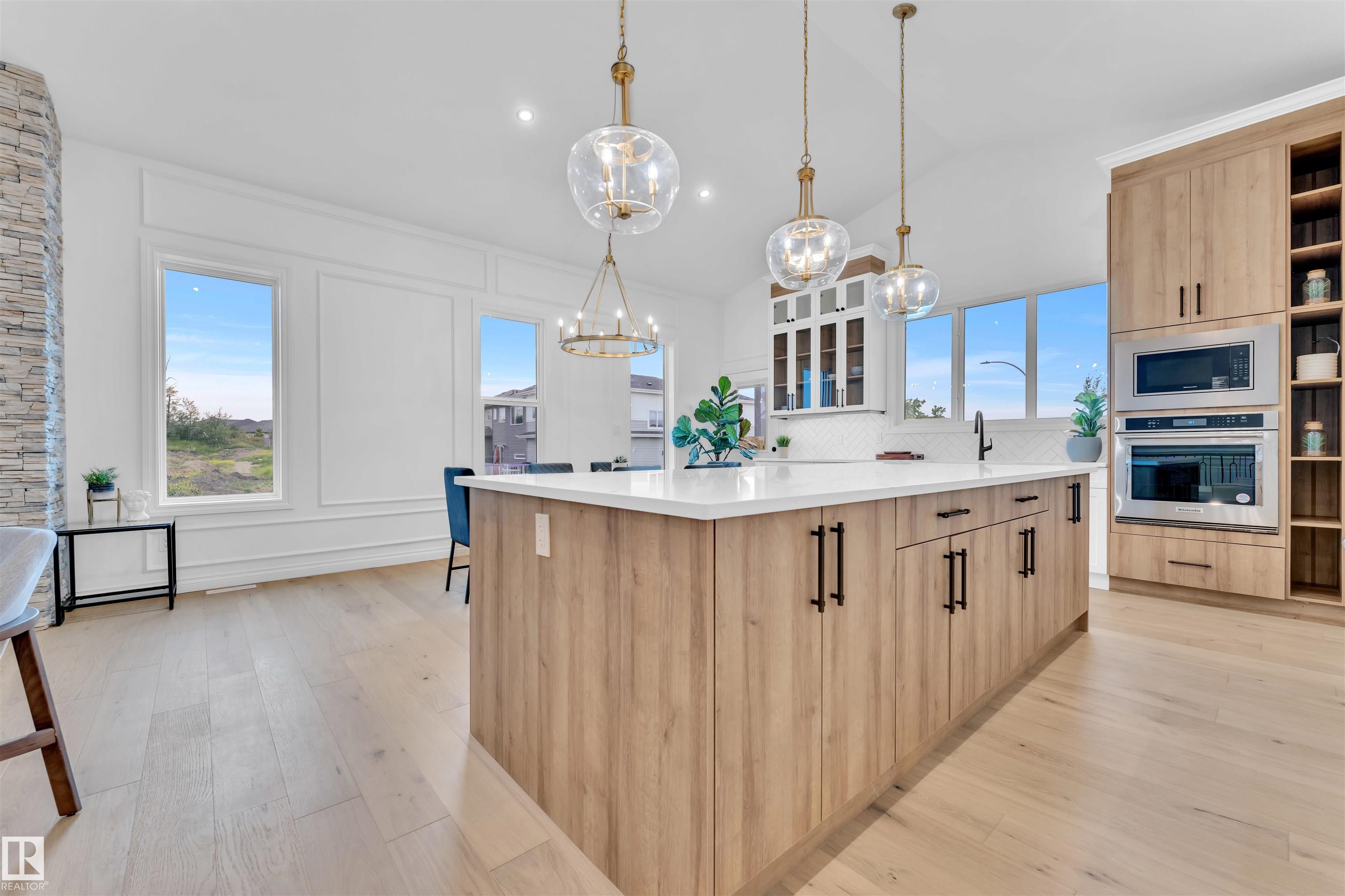 Stunning Custom Executive Bungalow on a Premium Corner Lot with Triple Car Garage. This exceptional bungalow offers luxury living at its finest, showcasing a spacious open-concept design and top-of-the-line finishes throughout. Featuring soaring 10-ft ceilings on the main floor and wide plank engineered hardwood flooring. The expansive entertainer’s kitchen is a true showstopper, complete with custom cabinetry, extended kitchen nook, walk-in pantry, upgraded stainless steel appliances, designer lighting, and premium hardware package. A large great room with a custom fireplace and feature wall adds to the home's impressive appeal. Luxurious primary suite with a spa-inspired ensuite bath. Two more bedrooms with common bathroom. Full-sized laundry room with sink for added convenience. The triple car garage is fully equipped with a floor drain and gas line, ready for future heater installation. Located on a sought-after street, this beautifully crafted home is perfect blend of style, space & function.