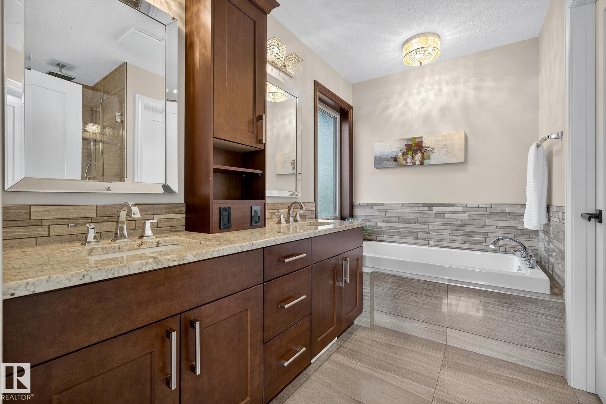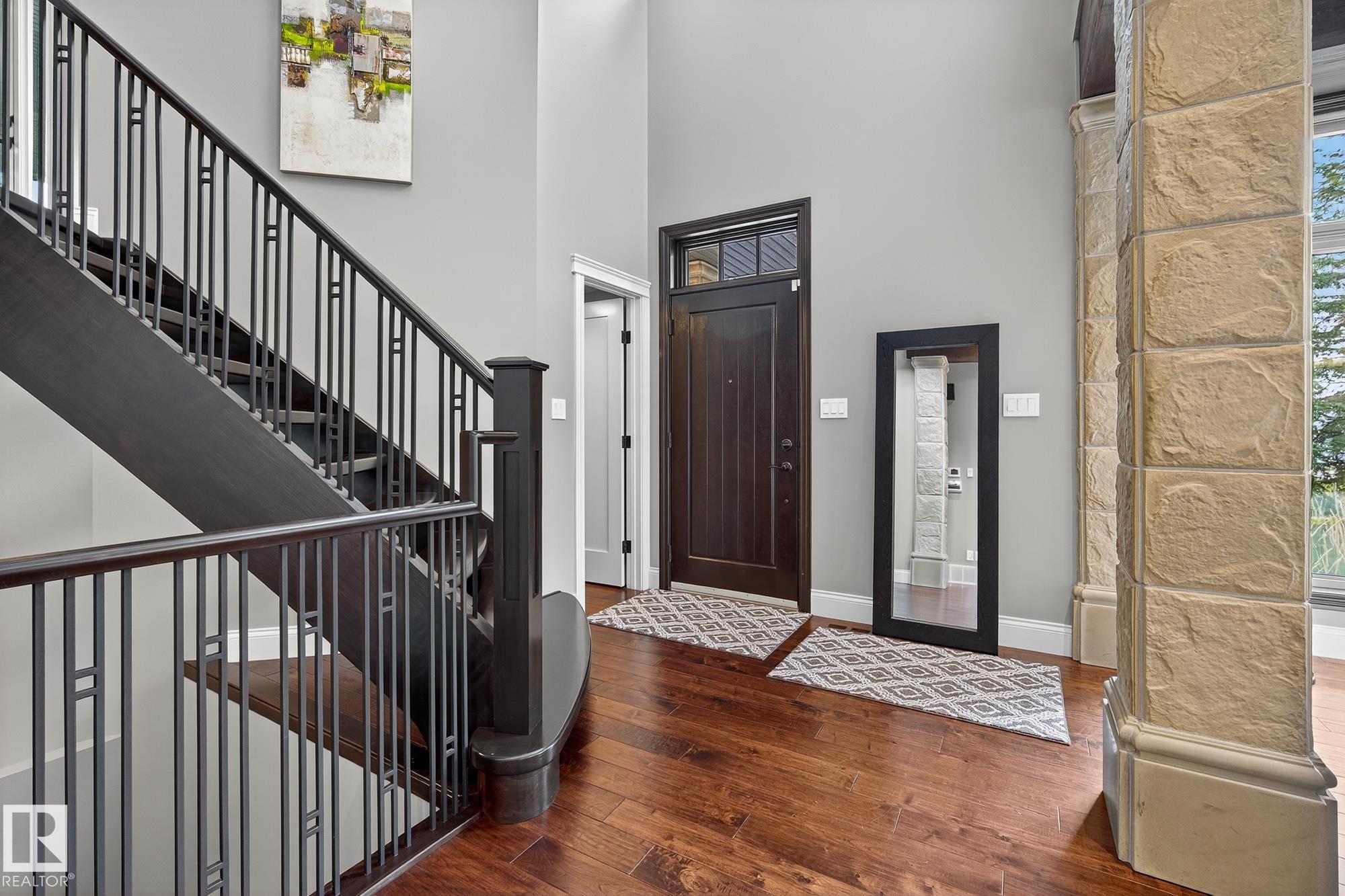 FORMER BROOKHAVEN SHOWHOME on 1.55 acres located ACROSS FROM SANDPIPER GOLF COURSE & under 5 MINUTES WEST OF ST. ALBERT! Unique 4-level split dream home featuring a full custom kitchen by Gem Cabinets, dark wood beams & stone pillars on the main level, floor-to-ceiling windows to enjoy your tree-line views, curved wood open tread stair case leading to your huge den + bonus room and screened-in upper patio by Suncoast Enclosures. Upstairs you’ll find 3 bedrooms & 2 full bathrooms including a spacious primary retreat looking out onto the trees. The basement is fully-finished w/ a 4th bedroom, projector TV area & large storage room. Your vehicles will stay cozy all winter long in your fully finished & heated triple attached garage. Outside, you can bring your acreage dreams to life with lots of space to build a secondary shop. And yes, you have FIBRE INTERNET! Enjoy the amenities of city living paired with the serenity + green space of rural life. Welcome home!