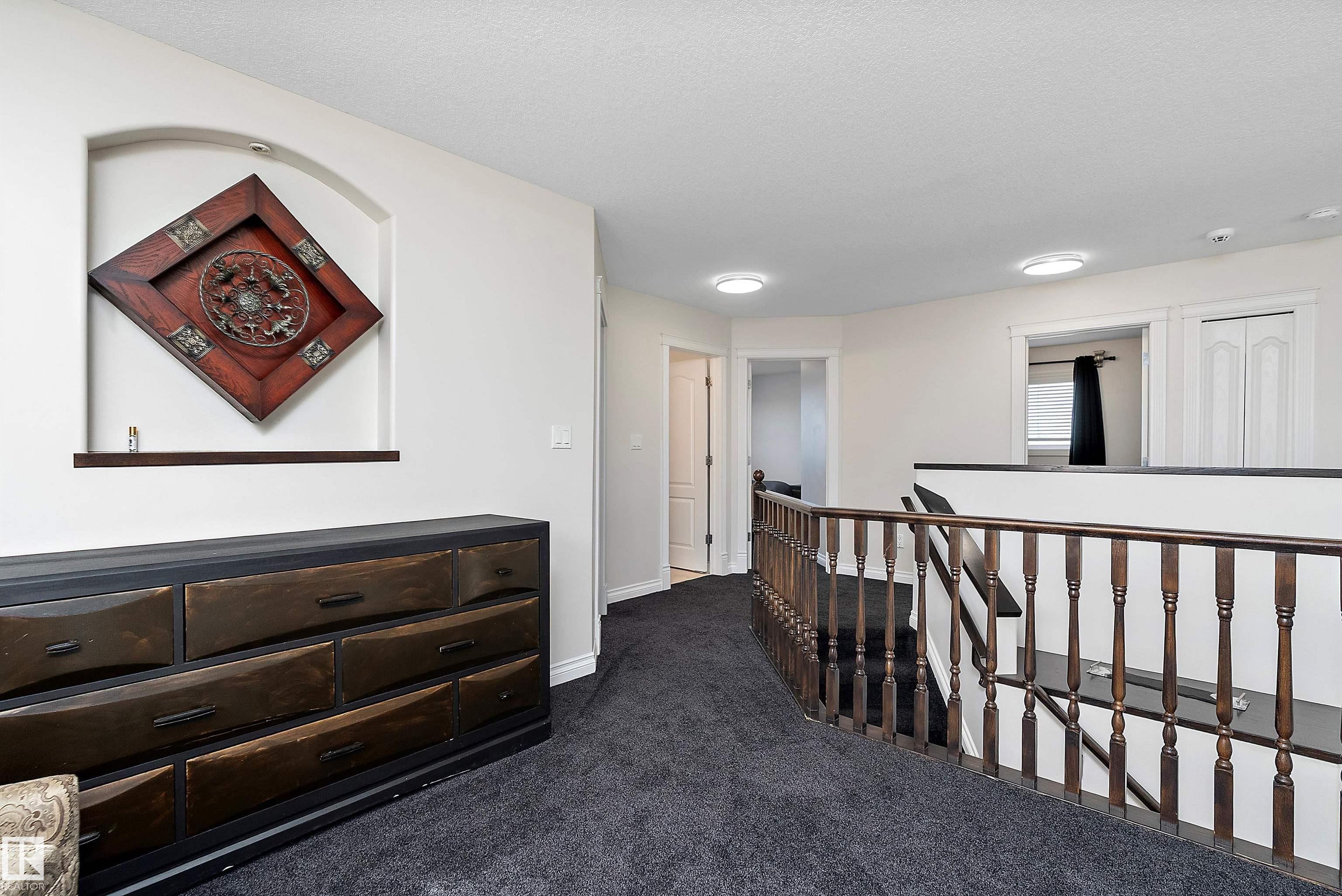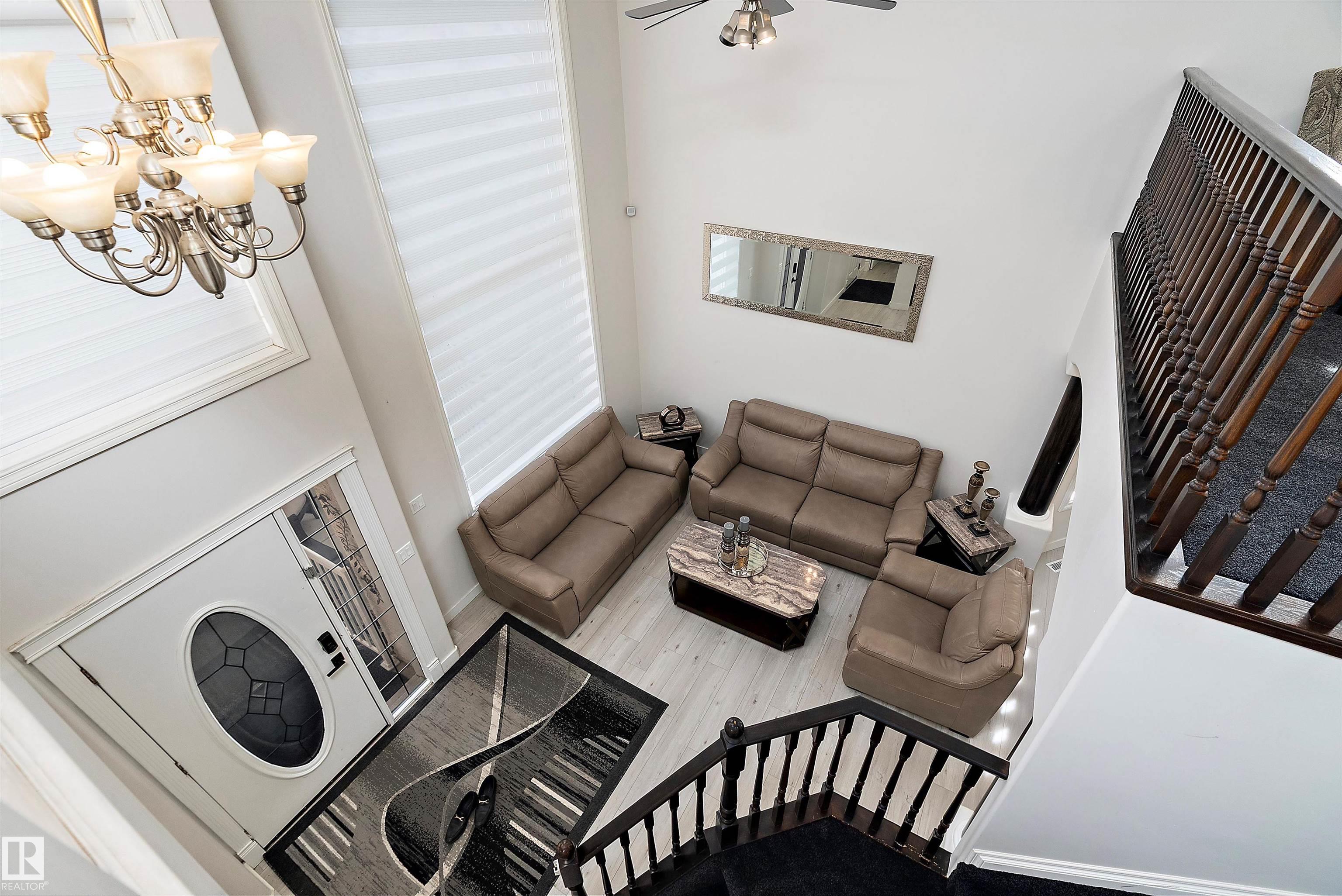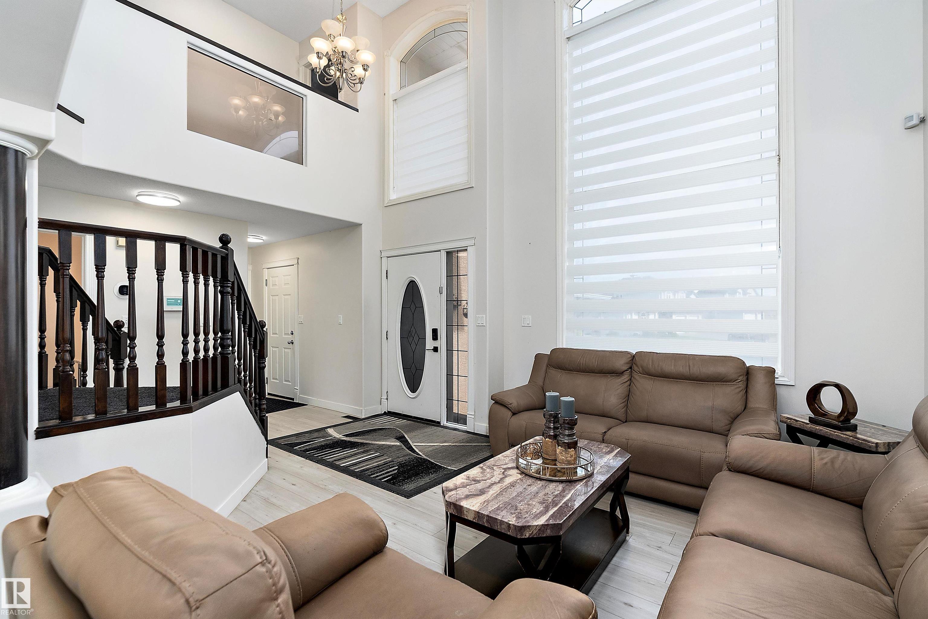 Immaculate 4-bedroom + Den, 3 Bath home on a Pie-Shaped Lot in the desirable community of Mayliewan! This beautifully maintained 2-storey home offers a bright, welcoming layout perfect for family living. The main floor offers open-to-below ceilings in the living room, a cozy family room with a fireplace, a den that is ideal for a home office, bedroom, or playroom, and a formal dining room. Upstairs, you'll find four generously sized bedrooms, a spacious bonus area, and two full bathrooms. Recent upgrades include central air conditioning (2024), new carpet (2024), new shingles (2023), and updated window coverings. The basement is framed with electrical completed, ready for your personal touch. Enjoy the outdoors in a beautifully landscaped backyard with a large deck, perfect for entertaining. The double-attached garage is finished with sleek epoxy flooring. Located close to schools, parks, and everyday amenities, this move-in-ready home is a must-see!