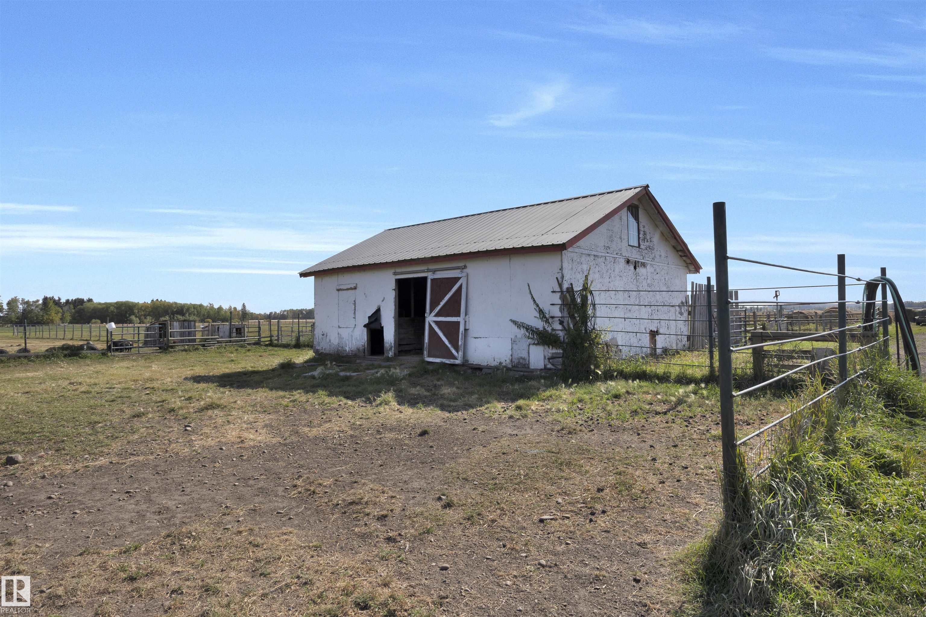 Visit REALTOR® website for additional information. Situated on a beautiful 27.11 acres, this hobby farm includes fertile hay land, multiple outbuildings, & a spacious home. With approx. 15 acres of hay (49 large round bales in 2025), plus room for gardening, fruit trees, & livestock, it's ready to support your homestead vision. A seasonal creek & small dugout add to its natural charm. The double-wide modular home offers 3 beds, 2 full baths, a primary suite with 4-piece ensuite; plus a wood stove! Outbuildings include a 32x50 heated barn with stalls, a 20x20 white barn (partially insulated with pens & water), a 20x75 open-faced cattle shelter, a 30x30 open shelter, & a 30x47 shop with 220V & updated lighting. Also includes a versatile open-faced shed. The property also features young apple and elderberry trees, raspberries, and ample gardening potential. It’s truly a place where you can grow your own food, raise animals, and enjoy the peace and productivity of acreage living.