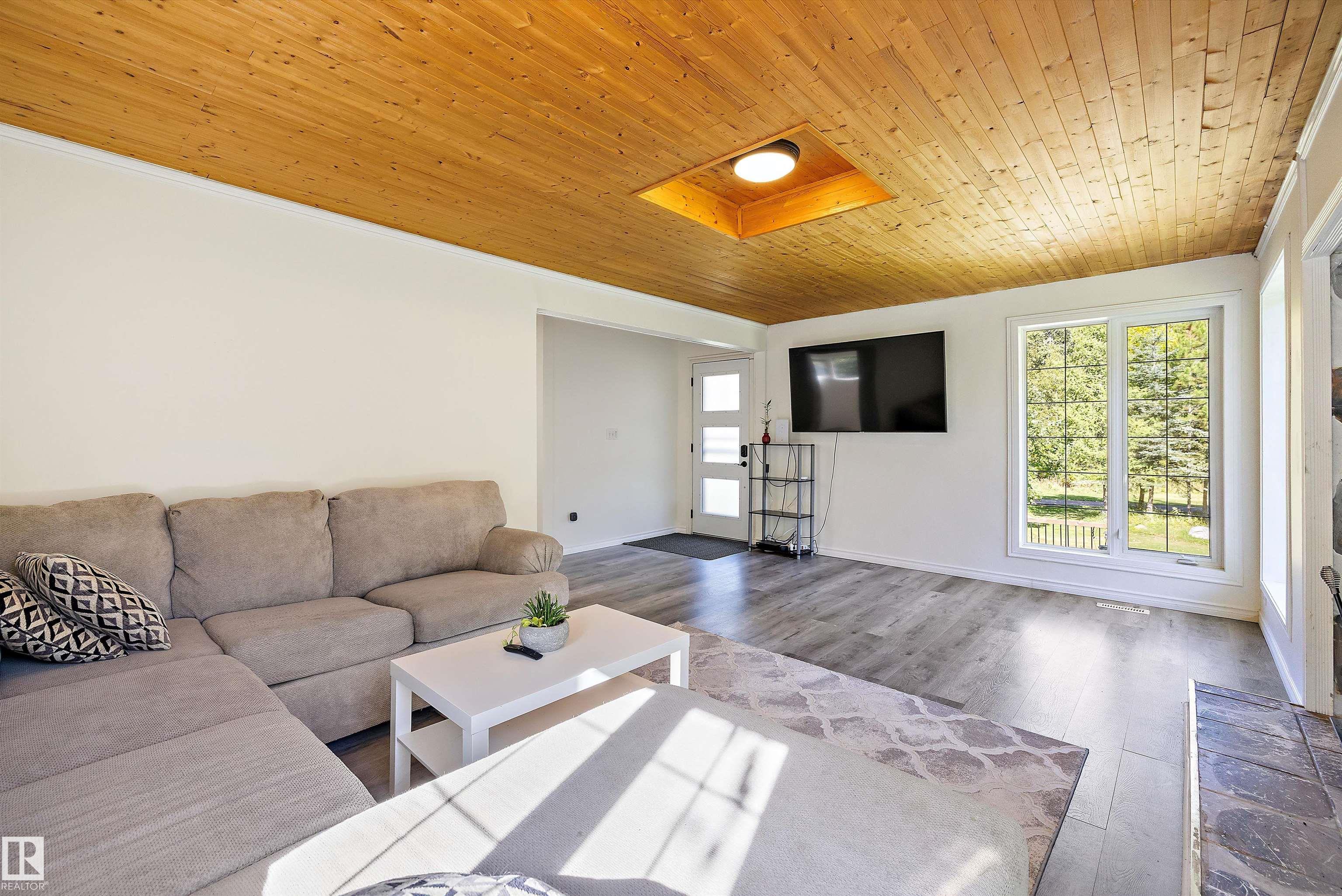 This is the private acreage for your family that you've been looking for! This 3.04 treed corner lot is conveniently located just 15 min north of Stony Plain in Parkland Heights. You will LOVE how quiet it is and how stunning it is year round! Just under 3200sf total living space this property features 4 beds on the main floor, a 5th in the basement and you can easily add a 6th if needed! The main floor is bright and features vaulted ceilings in the kitchen/dining space. Both the main and ensuite bathrooms have been recently renovated! You'll also find a large main floor laundry room with a sink & room for storage. The basement is a forced walkout and has a rough-in kitchenette, great for multigenerational living or if you've got older teens. There is a wood burning fireplace on the main and a wood stove in basement to keep you cozy all winter. Oversized heated DBL garage with asphalt driveway! Close to Chickakoo Recreation are & Muir Lake School!