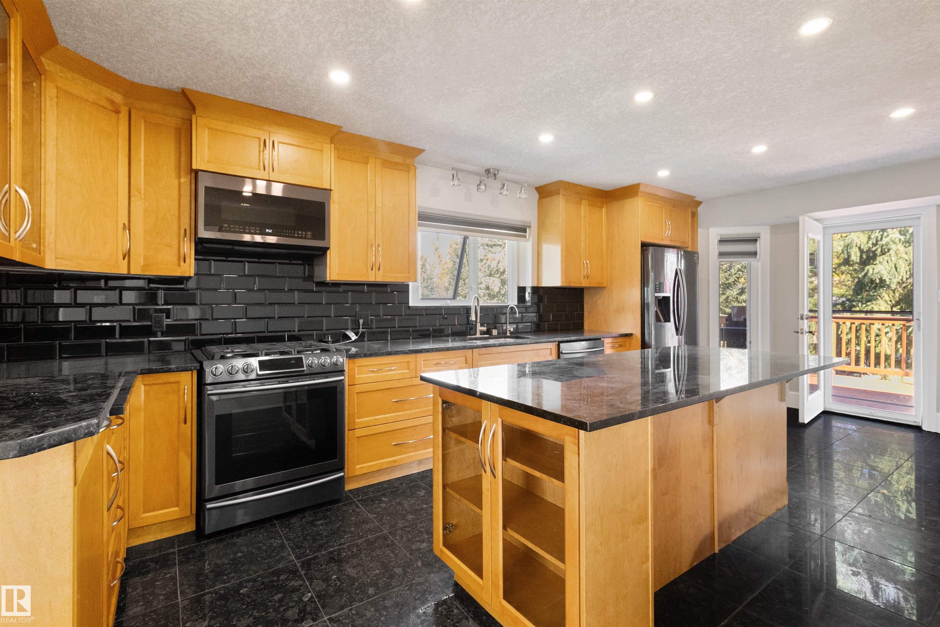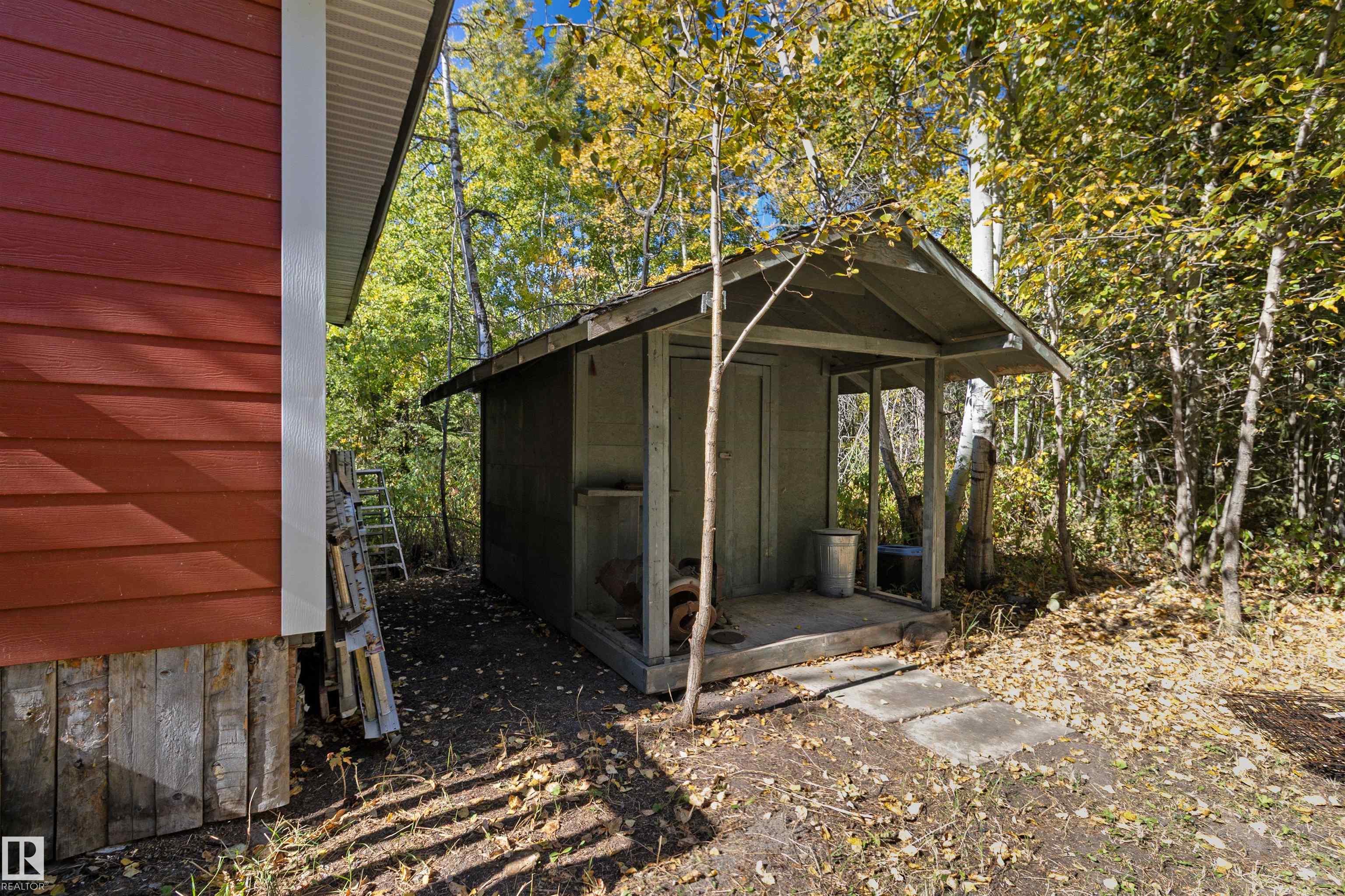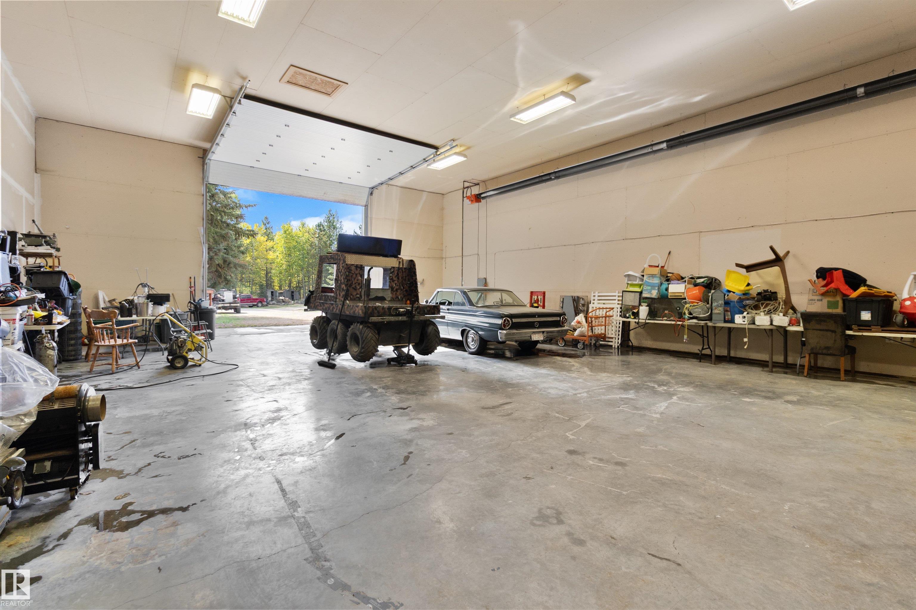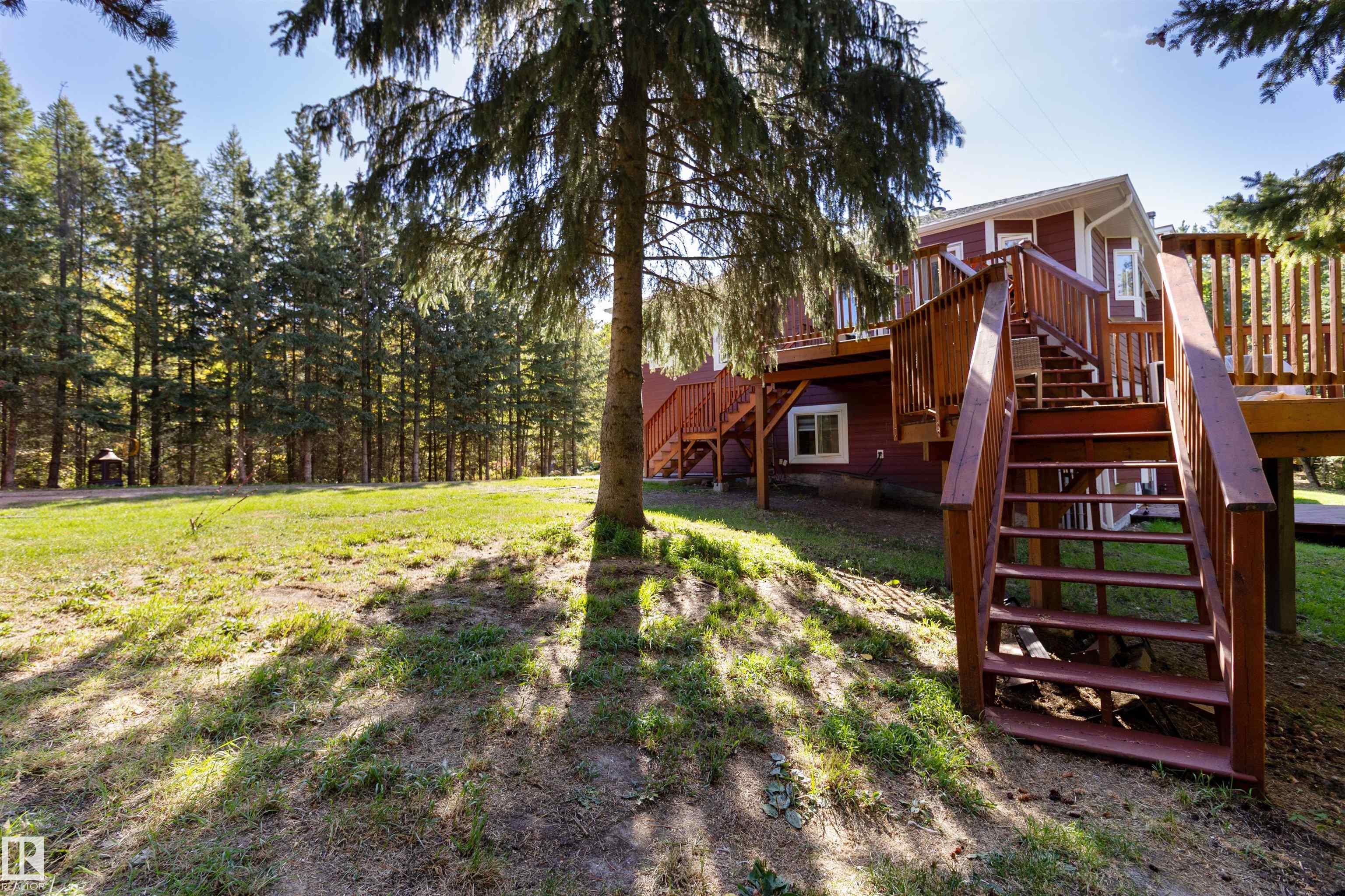 Amazing 4.55 acre property with stunning hillside home w/ dream shop! Over 2900 sq ft developed in this beautiful walkout dwelling featuring 3+2 bds & 2.5 baths. Granite tile & maple hardwood throughout including stairs! Chef's kitchen with maple cabinets, granite counters, subway tile backsplash, oversized island & massive walk-in pantry. Huge LR/DR with gas fp & bay window. 16x15' primary bd has huge walk-in closet & 5 pc ensuite w/ luxurious jetted tub. 2nd kitchen nearly complete on lower level for extended family or nanny! Large FR with 2nd fireplace has stacked stone to ceiling. 3 large bds down & another 4 pc bath. Hi-eff furnace & hot water tank. Recent ext upgrade included Hardy plank siding, shingles, new soffits, facia & eves troughs! 2 tier deck & concrete patio. Amazing 65x36.5' metal clad shop w/ 14' overhead door, mezzanine, floating concrete slab & 220V service. Cute detached cabin awaits finishing touch - could be Mom's yoga studio! Bordering 13 acre reserve. Minutes to Sherwood Park.