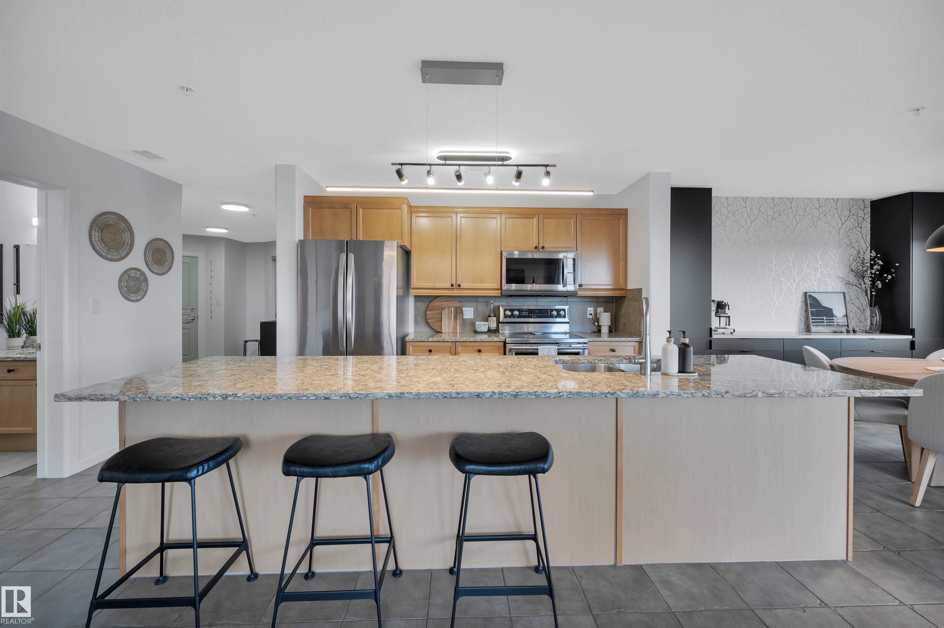 INCREDIBLE VALUE IN THIS GORGEOUS CORNER UNIT CONDO!!! YOU'LL LOVE THE VIEW AND BEAUTIFUL SUNSETS!! Overlooking Centennial Park. One of the largest condos in the building! Featuring a fabulous open design with lots of natural light. Stunning kitchen with gorgeous granite countertops, huge island, stainless steel appliances, new built-in breakfast bar with cabinetry, plus a large dining area. Very spacious and bright living room with attractive gas fireplace. There are 2 bedrooms, 2 full bathrooms including a beautiful ensuite with walk-through closet in the Primary Bedroom. In-suite laundry and AIR-CONDITIONING too! Enjoy the luxury of TWO UNDERGROUND TITLED PARKING STALLS, AND TWO SEPARATE STORAGE UNITS!! Professionally managed building with great amenities, including a theatre room and fitness room. Within walking distance to restaurants, shopping, and Millennium Place. A rare find and truly unbelievable value!! Visit REALTOR® website for more information.