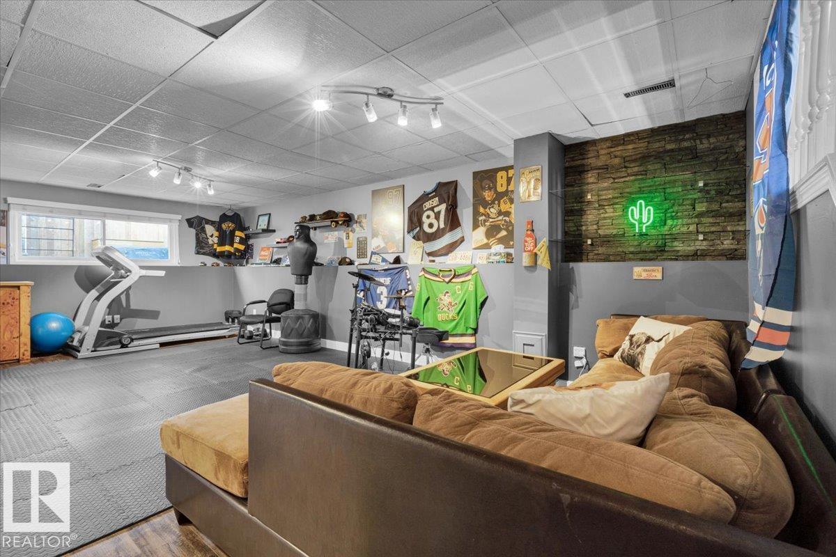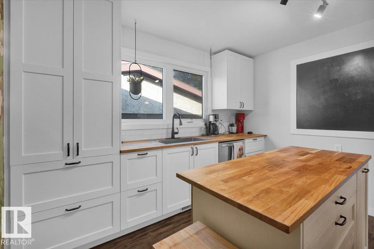 This is an exceptional opportunity whether you are looking for a family home or a great potential investment property. There is a separate entrance to the basement for future secondary suite potential. This 1100 sq ft 3 bedroom home is in great move in ready shape. Located in a convenient location on a bus route and just 2 mins from Whitemud Drive in Kiniski Gardens. Features a fantastic new renovated kitchen with butcher block counter tops and timeless white cabinets. The spacious dining area looks over the large living room with wood burning fireplace and vaulted ceilings. There are two large bedrooms and a 4 piece bathroom upstairs. The basement has a large rec room, one bedroom and a half bath. Loads of storage under the crawl space/laundry room. The back yard has new sod and a detached double garage. The roof is under 10 years old. This is a great place to call home.