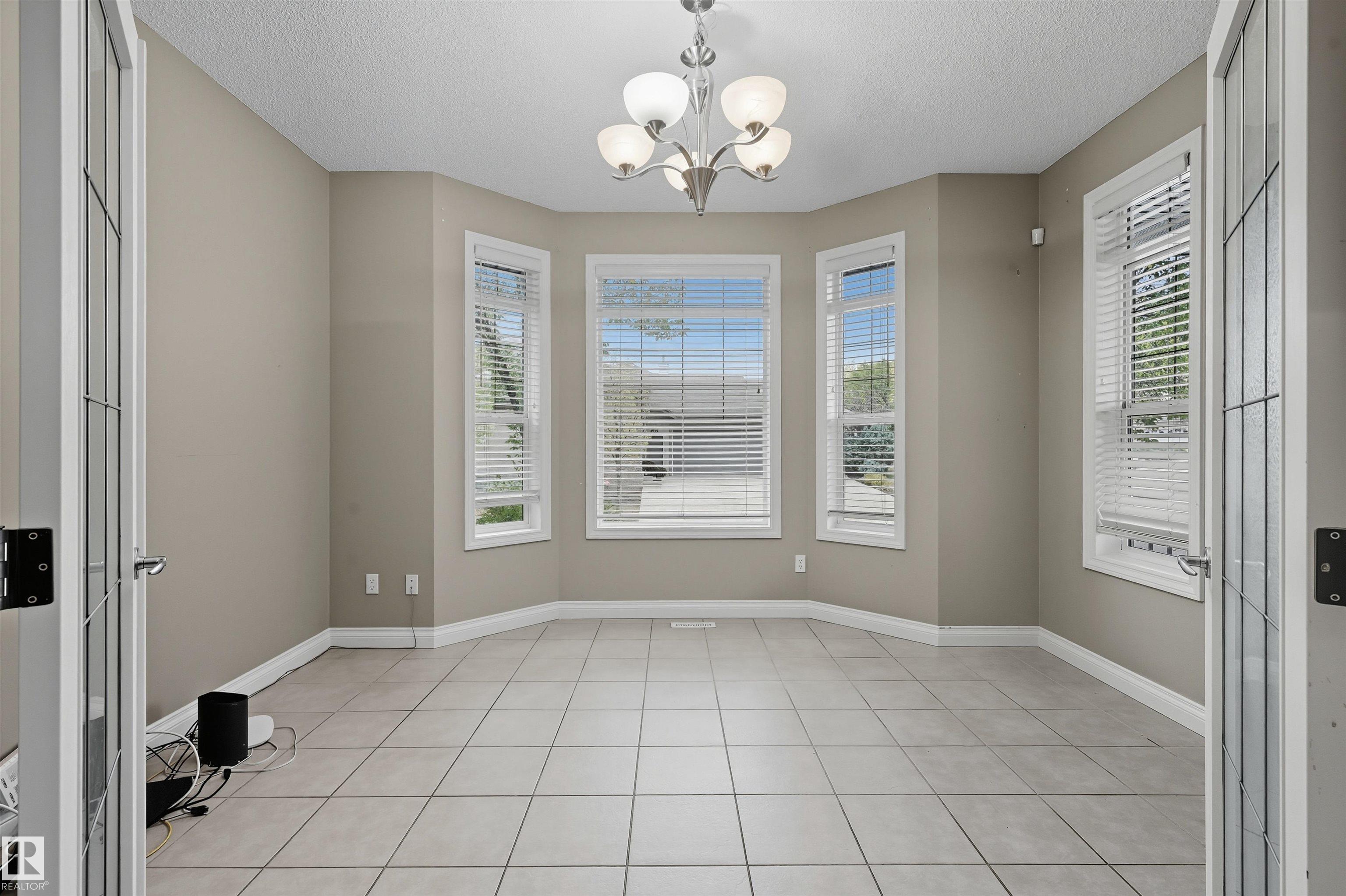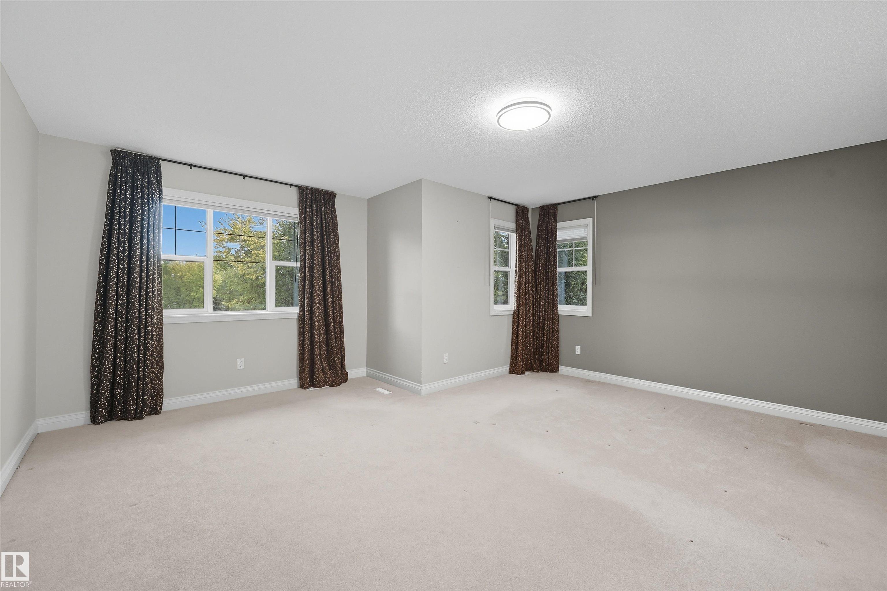 Spacious corner lot nestled in desirable Hodgson across from Hodgson Wetland Park & steps to Whitemud Creek Ravine. Past the cozy porch find a vaulted foyer with plenty of natural light & large office (or bdrm) off entrance. Open concept kitchen w/ stainles steel appliances (Kitchen Aid wall oven/Dacor stove), dining nook & living room w/ gas fireplace. Main level complete w/ 3PC BTHRM, spacious mudrm w/ laundry. Upstairs has a huge bonus room, 2 spare bedrooms & spacious primary retreat w/ ensuite & walk-in closet. Basement finished w/ 4th bdrm, full bthrm, rec space & flex area. This corner lot offers partial park views from the yard + has plenty of deck space to enjoy w/ pergola & hot tub. Features: 9' ceiling, hot water on demand, AC, SIDE ENTRANCE. Great school designations & proximity to Hodgson Park & ravine walking trails. Terwillegar Rec Centre, transit & easy access to major arteries. Plus shopping & dining at nearby neighborhood squares!