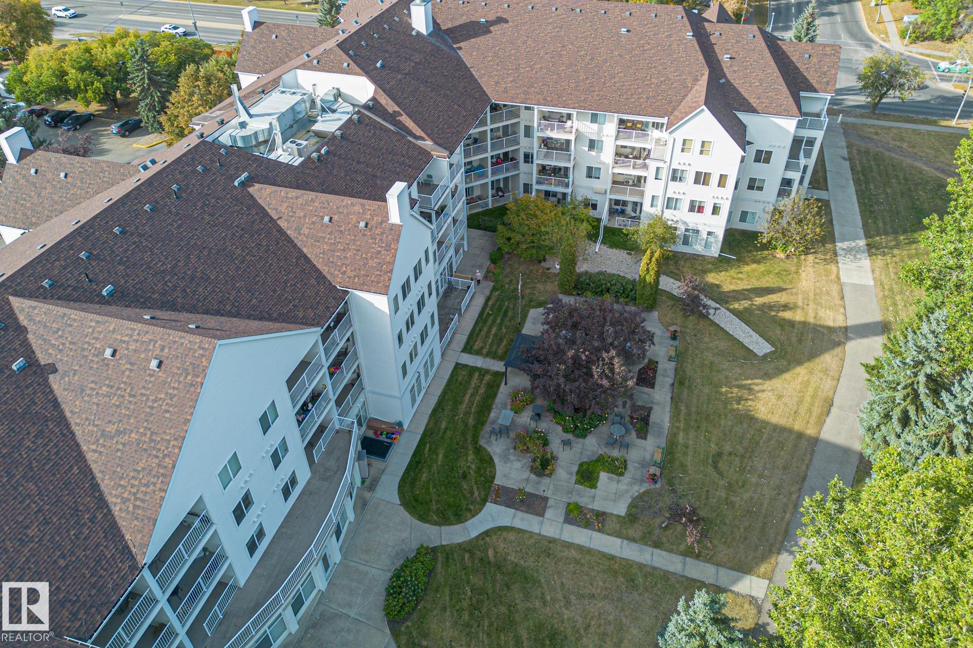 Have you been on the fence about moving into an adult community? Well here is your sign! Not only are you able to own your place you have such a variety of amenities without ever leaving. From the large dining hall where meals are served daily and multiple sitting areas for socializing to the gym, sewing room, pool table and others! There is truly something for everyone here. Plus beautiful outdoor spaces surrounded by flowers. Inside this 2 bedroom 813 SQFT home is just as lovely. With a large full laundry room with plenty of storage space. A full bathroom that has space to accommodate mobility aids and a heat lamp. The ample open kitchen looks over the main living space and tons of windows letting all the sun in. The primary suite leaves room for a king-size bed and bureaus. A second bedroom is perfect for an office space. Enjoy your morning coffee on your private balcony overlooking St. Albert. Close to shops, restaurants, walking trails and more. This is the adult living dream!
