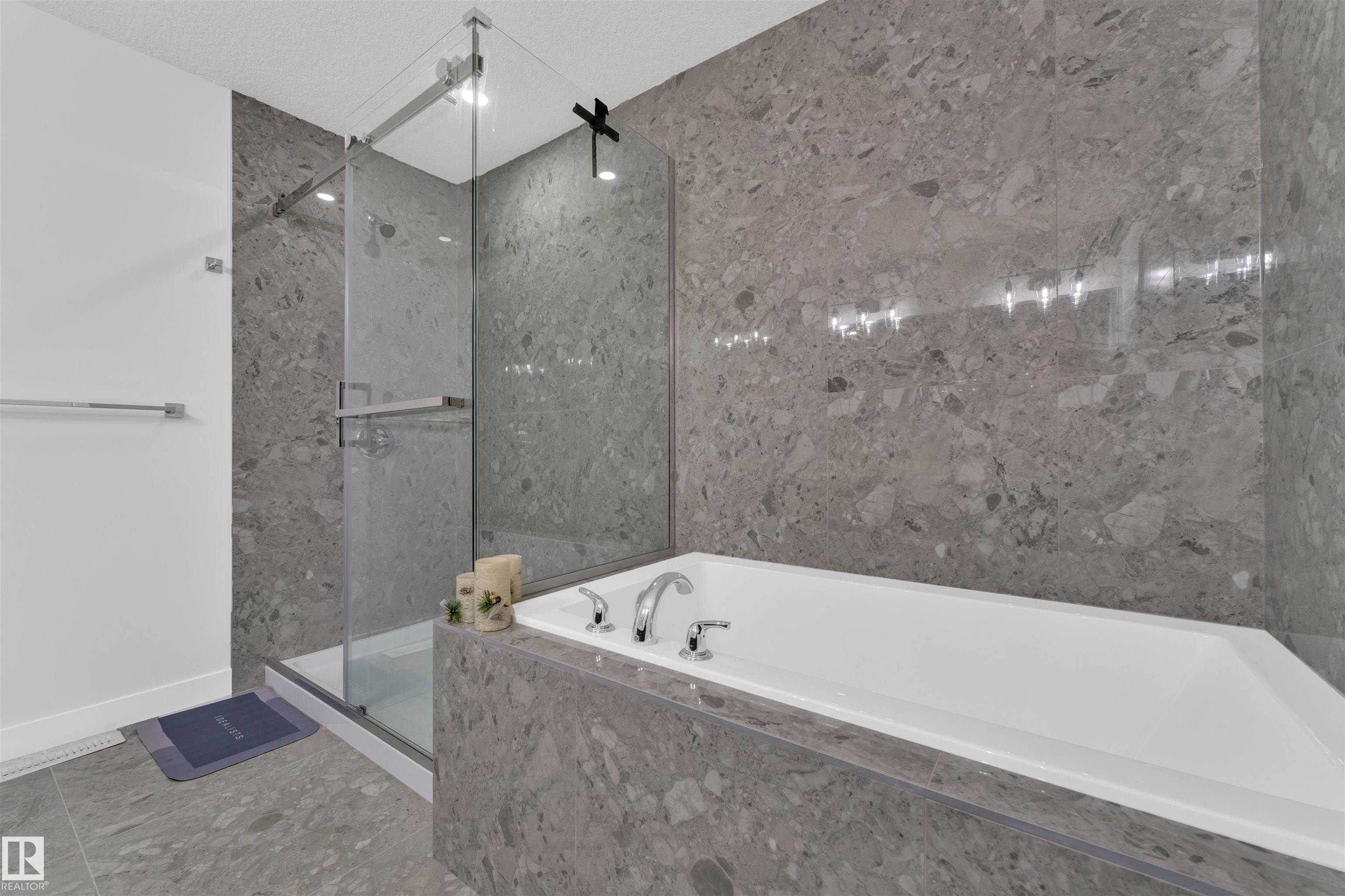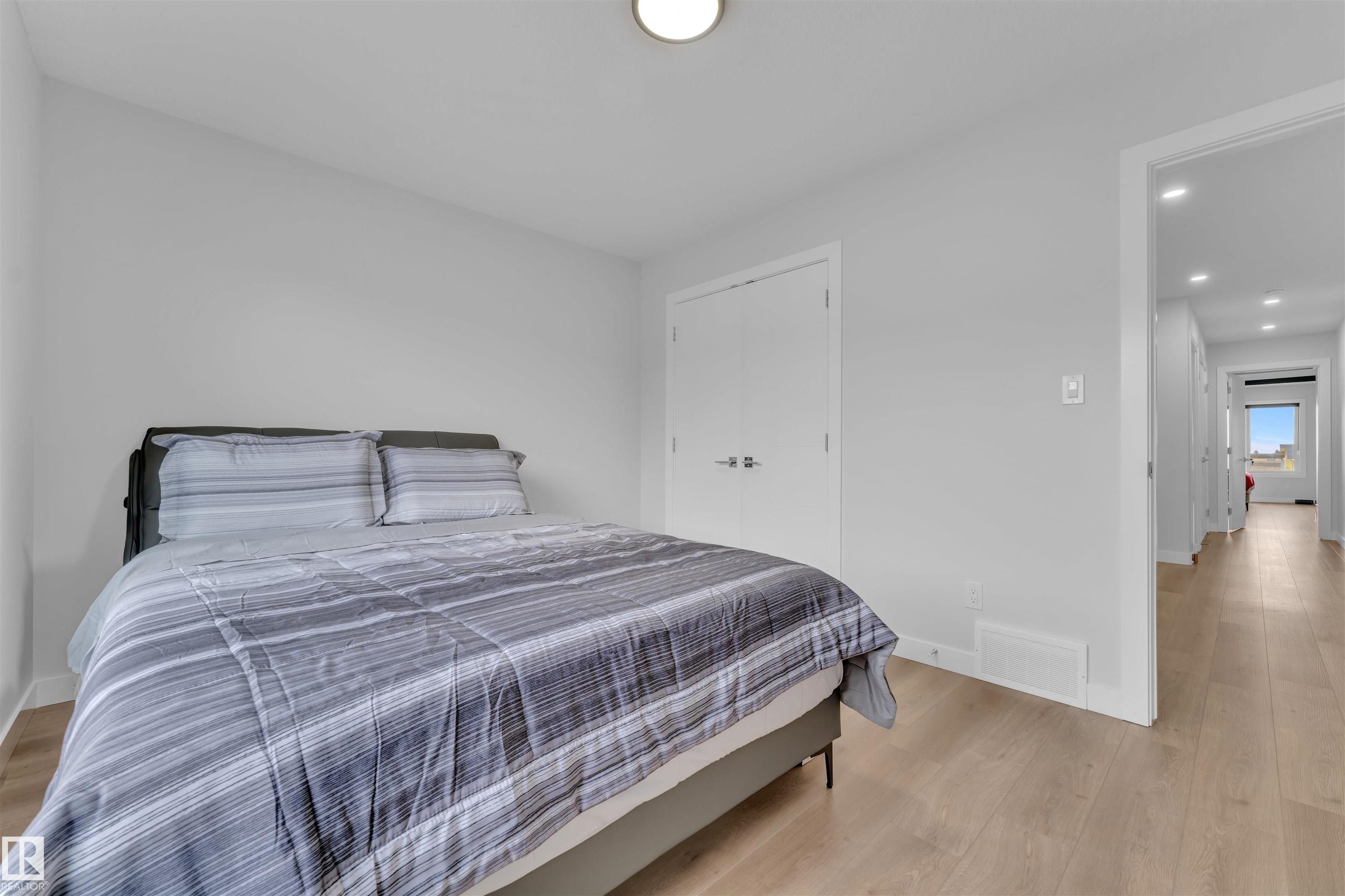 Modern fully custom home featuring 4 bedrooms, 3 full bathrooms, and a bonus room. The main floor offers a bedroom with full washroom, open-to-above living area, and a spice kitchen for added convenience. The main kitchen includes a central island, quartz countertops, premium cabinetry and tile backsplash. All appliances and blinds included. Main floor is finished with elegant tile flooring, while the second floor features vinyl throughout. Upstairs offers a spacious bonus room, primary bedroom with ensuite, two additional bedrooms, full bath, and laundry. Enjoy 9 ft ceilings on both main and basement levels. The home includes a side entrance and two basement windows, offering great potential for a future legal suite.