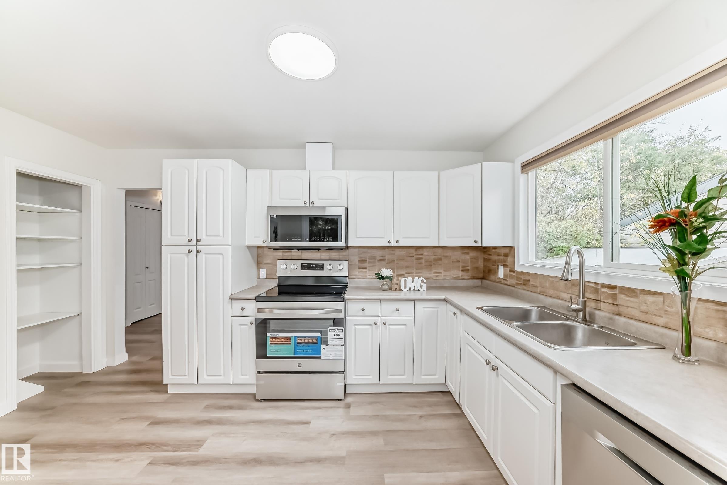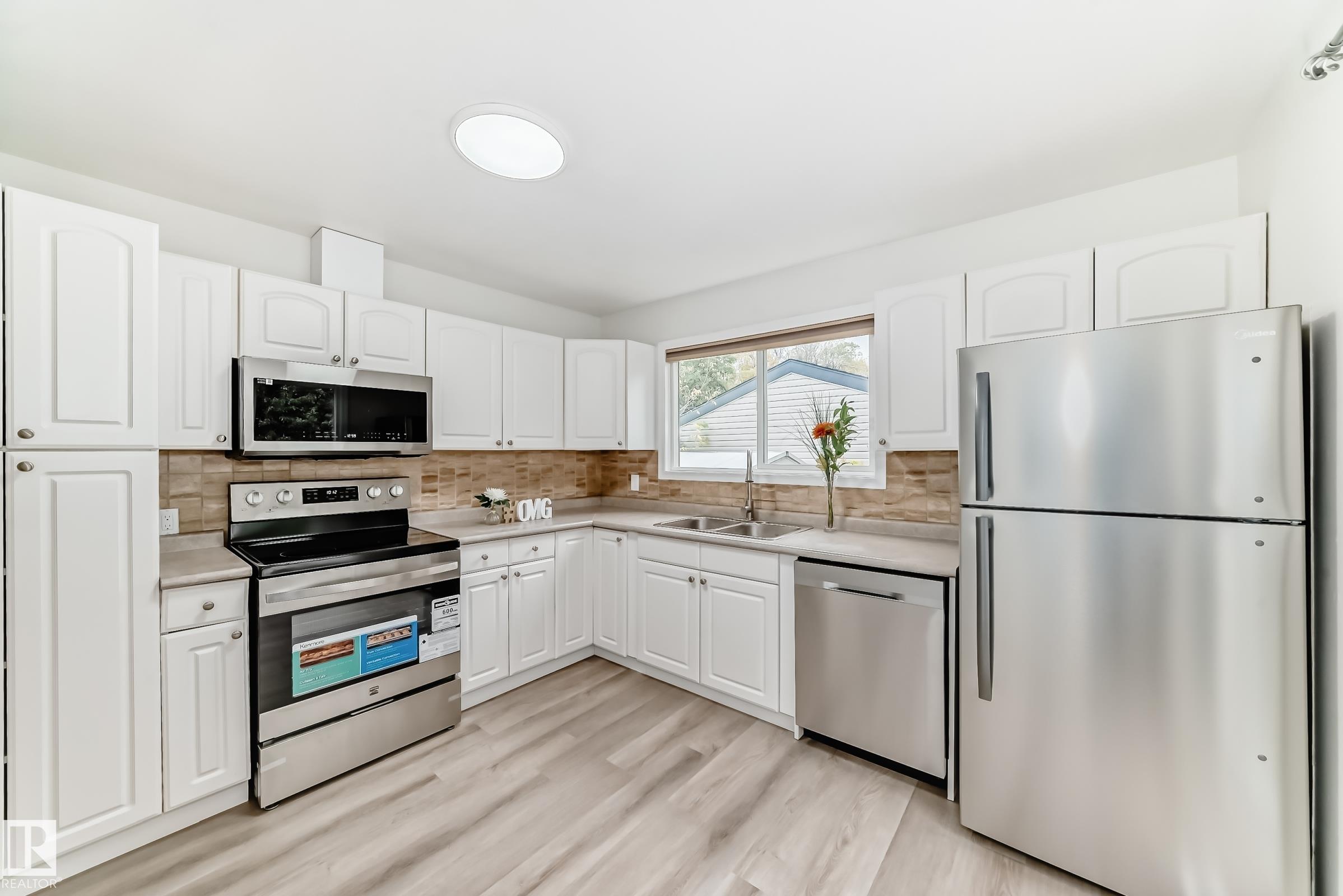 Welcome to this Stunning/over 2600 sf living space Bungalow! Features total of 5 Bedrooms/2 Living rooms & 2 Bathrooms! Main floor greets you w open concept large living room features gorgeous vinyl plank floorings throughout/Cozy Wood-Burning Fireplace/lots of natural light pouring through its many windows/adjacent to formal dining area. Spacious Kitchen offers Plenty of kitchen cabinets/breakfast nook boasts balcony doors to deck & yard. 3 sizable bedrooms & a 4pc bathroom. SEPARATE BACK DOOR ENTRANCE to a FULLY FINISHED BASEMENT c/w 2 bedrooms/a 3pc bathroom/huge family rm/Laundry rm & utility rm. Step out onto the Huge Beautiful yard, your private oasis for relaxation & entertainment! Upgrades during years: Brand new Vinyl Plank floorings/kitchen sink & SS appliances/Fresh painting/shingle (2015)/windows (2010). Easy access to public transp/schools/park/play ground/shopping & all amenities. Quick poss avail. Perfect for live in or investment! Don't miss!