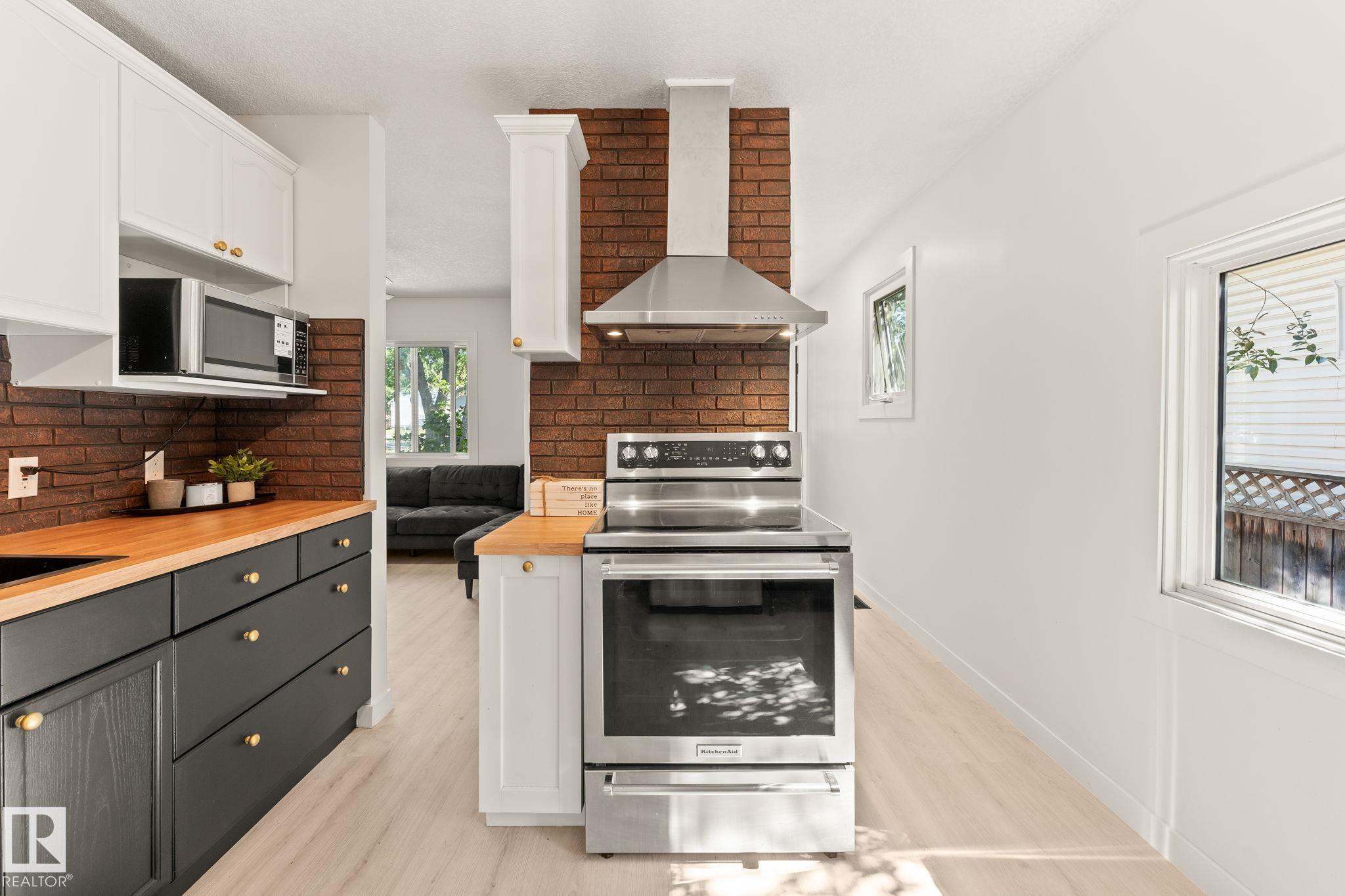 BEAUTIFULLY RENOVATED! COMMONWEALTH STADIUM A SHORT WALK AWAY! OVERSIZED SINGLE DETACHED GARAGE! Welcome to this beautifully renovated cutie little character home in downtown Edmonton! Not only is this property affordable, it’s decked on in modern finishings- fresh for its new owners. Stainless steel appliances in the kitchen, new flooring/baseboards/trim/paint throughout the main level, 2 full bedrooms and a brand new deck to enjoy those summer nights. A nice sized, freshly landscaped backyard connects to your single oversized car garage with a brand new garage door & control. RV parking space. Playground for kiddos is kitty corner to the house. Home sweet home!