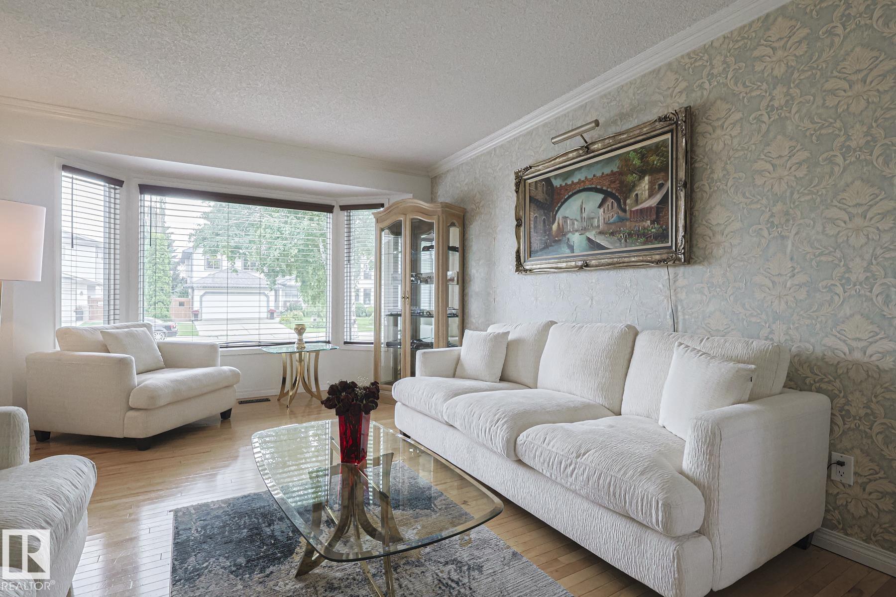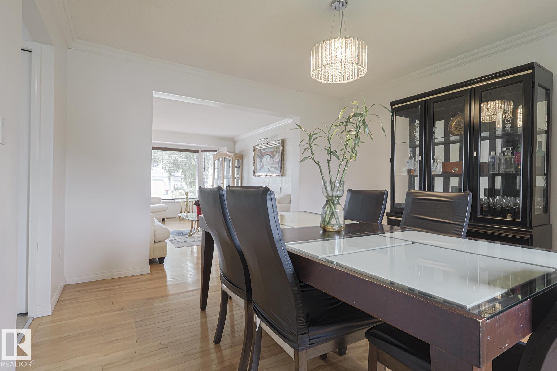 TERRIFIC FAMILY 2 STOREY! This spacious 5 bedroom, 4 bath home sits on a massive lot in desirable Elsinore. Featuring maple hardwood floors & over 2200 sq.ft on 2 levels with a developed basement – there is plenty of room for the whole family. The bright and open foyer opens to the living & formal dining area. The sunny kitchen has quality s/s appliances, large island, plenty of counterspace & breakfast nook opening to the backyard. Step down into the sunken family room which has nice big windows & a fireplace. The main level is completed with a 2 pce bath & laundry room. Upstairs has 3 generous bedrooms, family bathroom & large primary suite with a bay window, w/i closet & ensuite, corner tub, separate glass shower & double sinks. The professionally finished basement offers lots more living space with 2 additional bedrooms, bath & massive rec room. The attractive exterior has a cedar shake roof, fenced yard & patio. Close to major shopping & just minutes from CFB Edmonton – the location is fantastic!