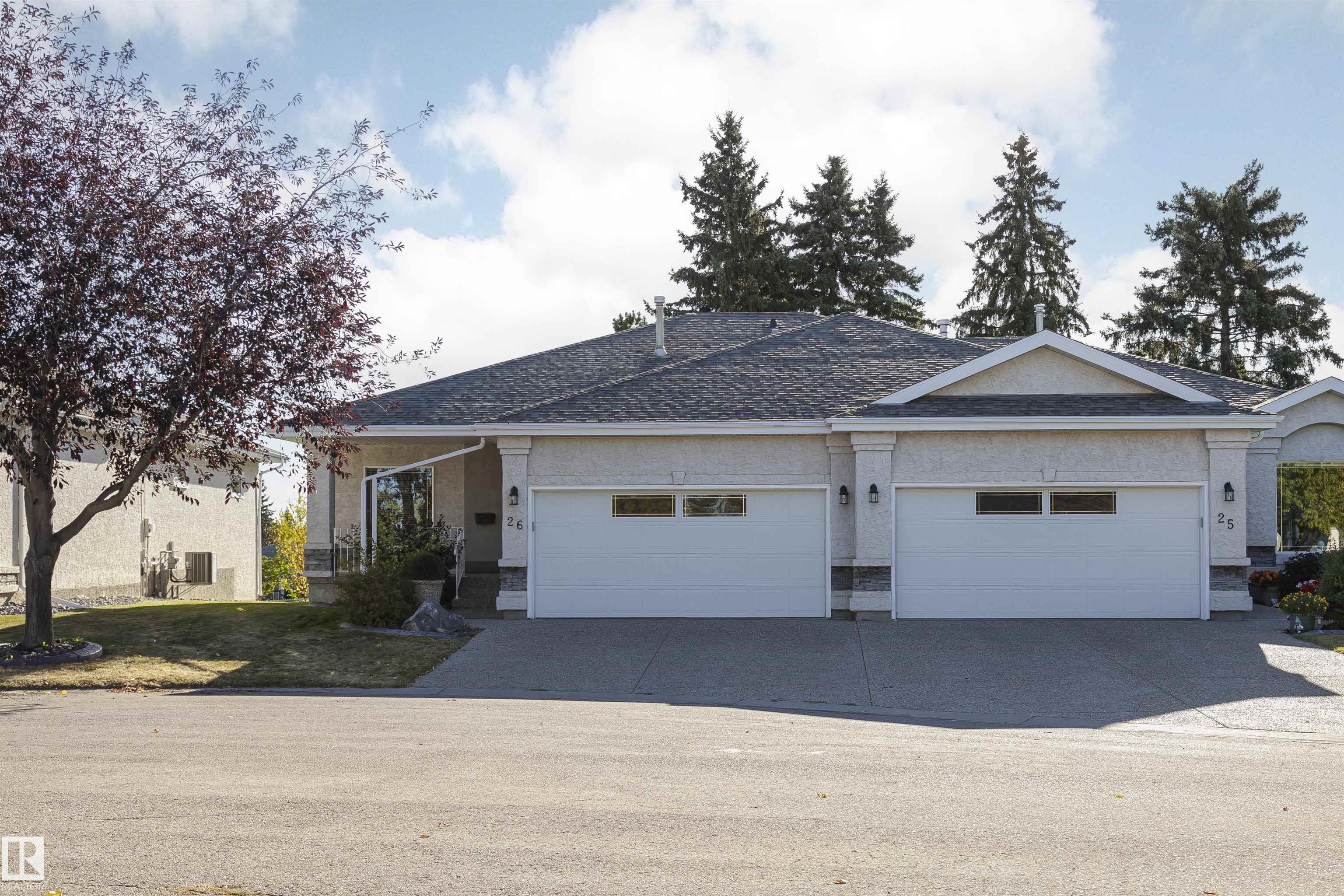 Location, Location, Location!!! This gorgeous 1222 sq ft bungalow is located on The Links Golf Course just before the 18th tee box. This home is very open and bright. The large country kitchen with white cabinets, tons of counter space, a kitchen island and pantry anchors the living room and dining room. Gleaming ceramic tile floors except in the bedrooms and basement where there is carpet. The living room has a gas f/p with an oak mantle and numerous windows that floods the space with natural light. The dining room has recessed niche for your china cabinet. The primary bedroom has a 3 piece ensuite and double closets. A garden door leads into the main floor den. The basement is fully finished with a family room including a f/p and pool table, another bedroom with 3 piece cheater bath, laundry and a workshop area. Shows like new and very well maintained. This is an adult complex (35+). HOA of $1800/year includes lawn/snow maintenance and shingle contribution. Some photos virtually staged.
