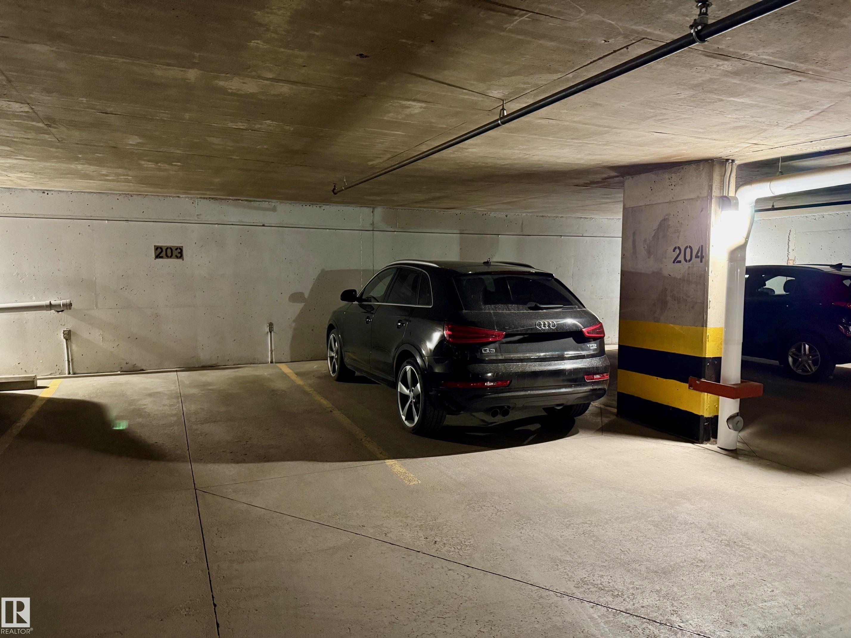 770 sq.ft. condo on the 16th floor facing east, overlooking ICE District and 104th Street. Two bedroom with one bathroom and in suite laundry. Air conditioned living room with outside patio facing east incl. barbeque. Galley kitchen with dishwasher, oven, microwave, refrigerator, with significant cabinet storage. A storage closet is included within the unit for additional storage. Large east facing windows with lots of natural lighting. Concrete building provides great sound insulation inside the unit. Two elevators provide transport to the 16th floor. Steps away from restaurants, Grant MacEwan, LRT, busing, night life, ICE District, and groceries. The unit includes underground parking. A workout facility is provided on the first floor and secure bike storage is available for use.