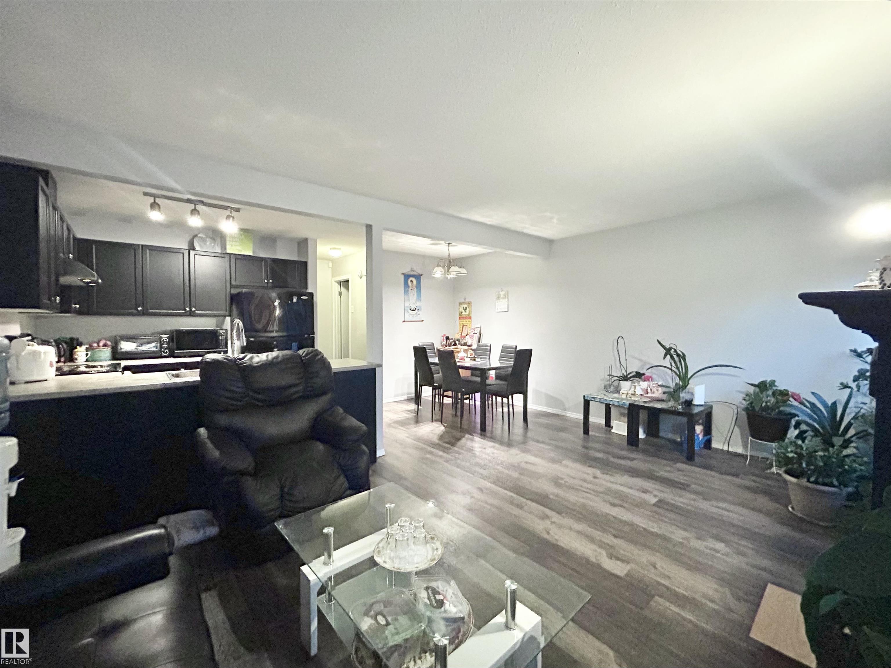 Welcome to Lakeview Green in Klarvatten! This well-kept two-storey townhouse offers 3 bedrooms, 1.5 baths, and an attached garage, making it an ideal first home or investment property. The open-concept main floor features a peninsula-style kitchen with black appliances and oak cabinetry, flowing into the dining and living areas. A cozy gas fireplace with glass-block detail adds charm, while patio doors lead to a south-facing yard with concrete patio—perfect for BBQs and entertaining. Upstairs, you’ll find a 4-piece bath and three bedrooms, including a spacious primary suite with walk-in closet and room for a king bed. The basement hosts laundry and storage, with potential for future development. Parking is a rare bonus here, with an extended driveway fitting two vehicles plus a single attached garage. Located close to schools, shopping, parks, public transit, and amenities, this home is move-in ready and waiting for you. Don’t miss this great opportunity!