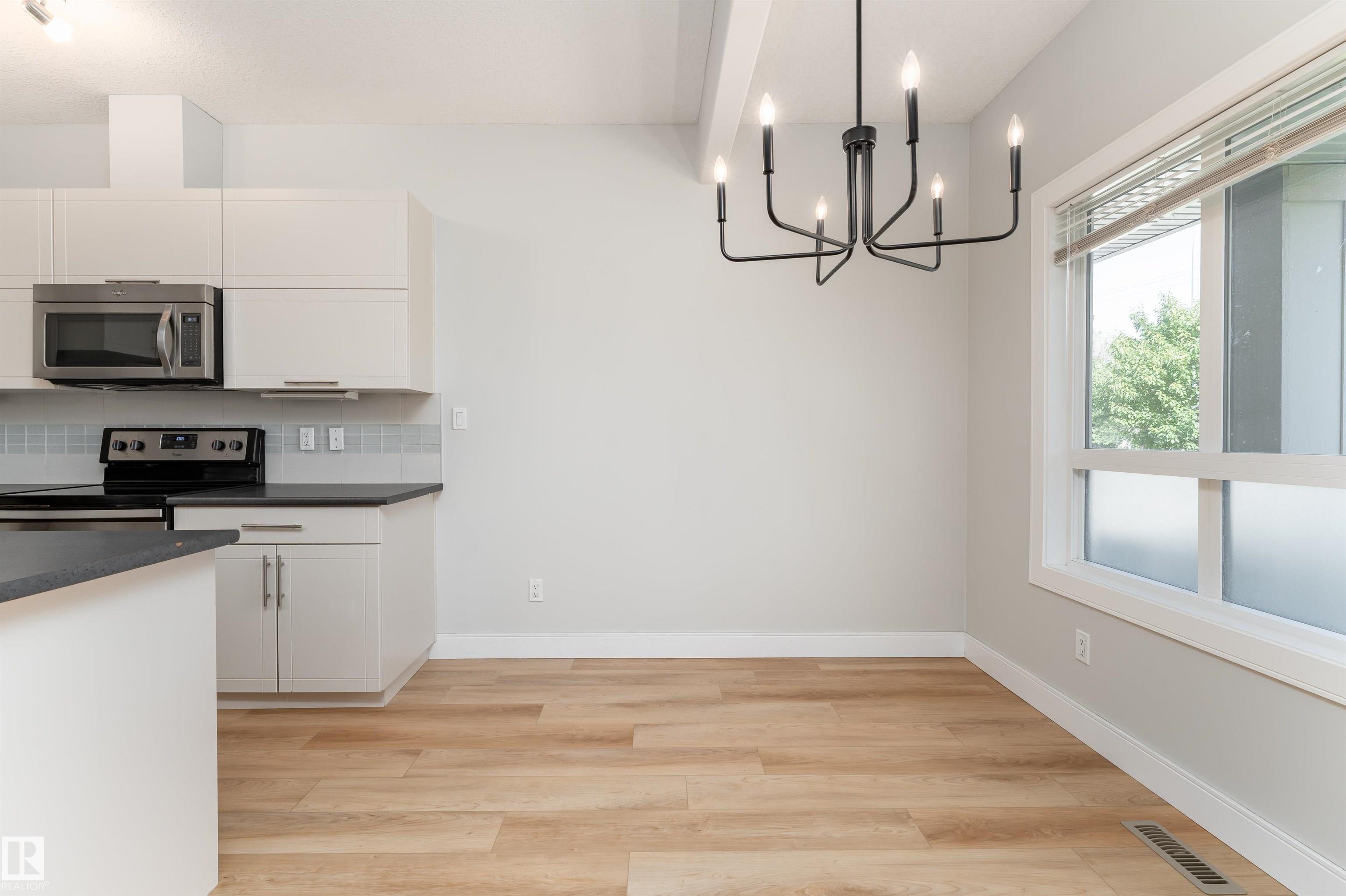 This elegant 3-bedroom, 2.5-bathroom townhouse offers 1,375 sq. ft. of refined living space designed for modern comfort. The main floor showcases an expansive open-concept layout with oversized windows that flood the home with natural light. The stylish kitchen is perfect for entertaining, complemented by a spacious living area and a discreet powder room for guests. Upstairs, retreat to three well-appointed bedrooms, including a generous primary suite featuring a luxurious 5-piece ensuite with a soaker tub, glass-enclosed shower, and double vanity. Additional features include a double attached garage, a fenced front yard for added privacy, and an unfinished basement ready to be transformed to suit your vision. Perfectly situated next to Athlone Park, playgrounds, top-rated schools, and shopping, with effortless access to Yellowhead Trail (2 minutes) and Anthony Henday Drive (5 minutes).