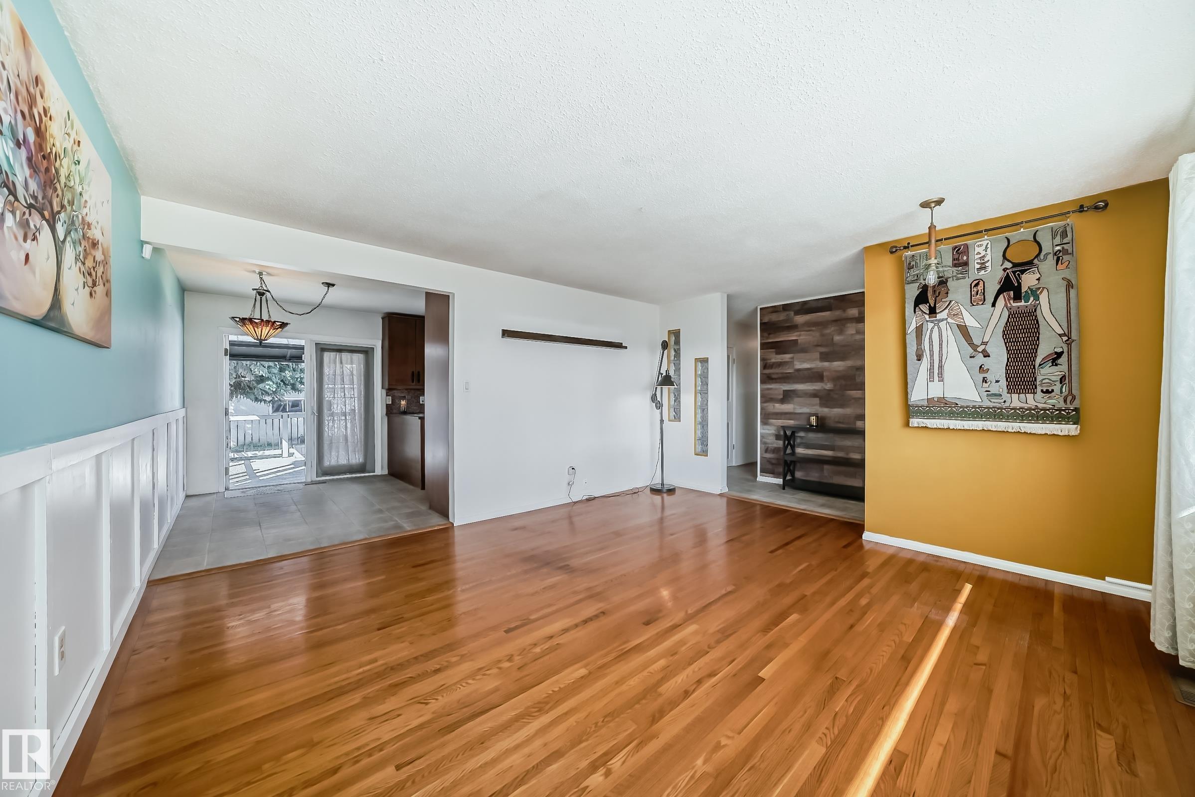 A 10 OUT OF 10 LOCATION!! Welcome to the amazing community of Mcleod. This home is a half block to Mcleod Park and all the schools, public transportation plus a short walk to Londenderry mall and M.E LaZerte high School. When you pull up you will find a very nice curb appeal with Vinyl siding, new sidewalk, shingles , front step and railing. Inside the main floor has a large living room with the original refinished hardwood floor, an updated kitchen with ceramic tile and in the dining room, patio doors the the newer deck with a gazebo, an beautiful updated bath and 3 bedrooms. The basement features a huge family/rec room with a wood stove, another bath, bed room and a good size laundry/utility room. Other updates are Garage door, Exterior doors, shingles house & garage, Tank less hot water, A.C, furnace , gazebo and storage shed. The garage is oversized and fencing is maintenance free.