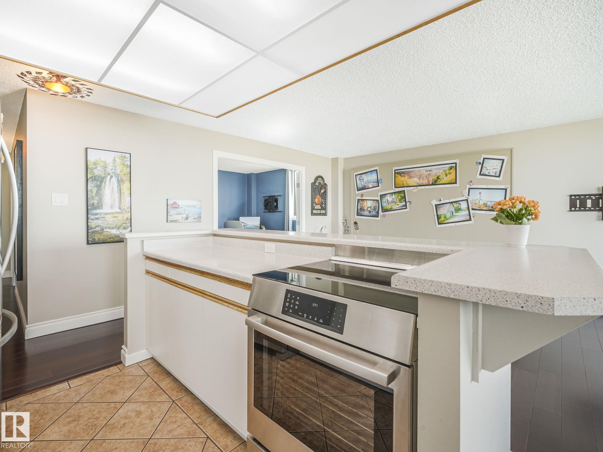 Views for days in this 19th floor CORNER UNIT facing the river valley. This 2-bed condo is located in the heart of Strathcona. Spanning over 1000 sq ft, this unit is in a concrete building & offers secure underground parking, elevators, onsite management & amenities including pool, sauna, gym & ALL UTILITIES incl. Inside, enjoy engineered hardwood, open-concept living, a stylish kitchen w/ long breakfast bar, newer stovetop & dishwasher & dining area w/ built-in cabinet extension. The renovated bath boasts a walk-in tiled shower & the primary bed features a walk-in closet. The versatile second bed has French doors leading into the main living area. In-suite laundry, large storage room & newer windows + patio glass. From your PRIVATE BALCONY enjoy FIREWORKS, CITY LIGHTS & jaw-dropping SUNSETS over the RIVER VALLEY. Steps from Whyte Ave w Edmonton’s top SHOPS, MARKETS & TRAILS, and just across the RIVER from downtown. Ideal for professionals or couples seeking views, serenity & a central lifestyle.