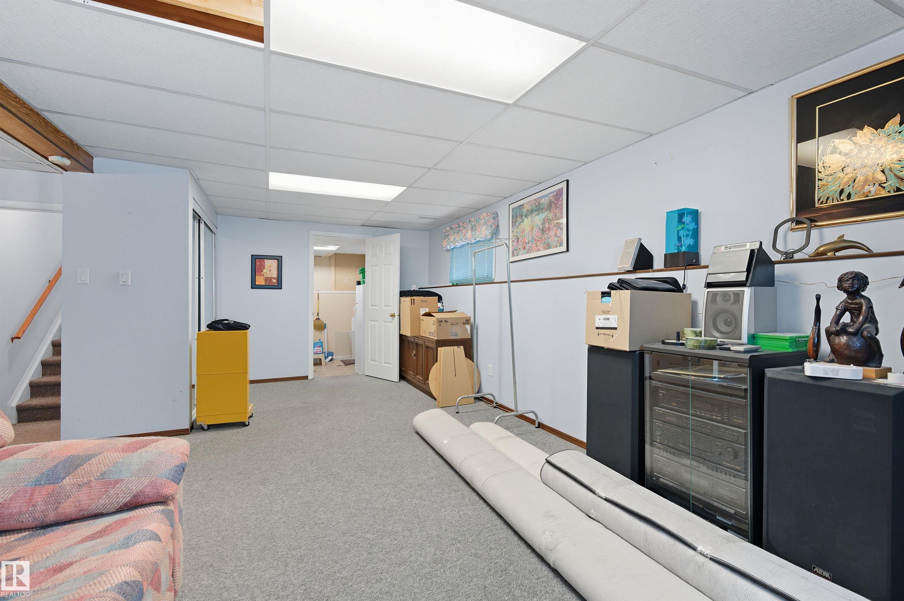 Welcome to Matt Berry, a charming, safe, family oriented neighbourhood within walking distance to the North Edmonton Christian School as well as great parks, playground and a extensive trails system perfect for dog walks and bike rides! This 4 Bedroom, 3 Full Bathroom Bi-Level home comes with a fully finished basement, Double Attached Garage, rear RV / Motorhome parking pad with side gate access, and has even recently received new shingles! Upstairs there are 3 spacious bedrooms and 2 full bathrooms. The living room / dining space have extra corner side windows and overlook the front yard with beautiful mature trees and gorgeous landscaping. The rear kitchen and dining nook overlook the spacious backyard with South exposure, large rear deck, storage shed, RV parking pad, and fruit trees! The finished basement has a very large bedroom with space to create a 5th bedroom if needed. You'll also see a 3rd full bath, large family room, bar / hobby space, and laundry room with storage. A great home for family!