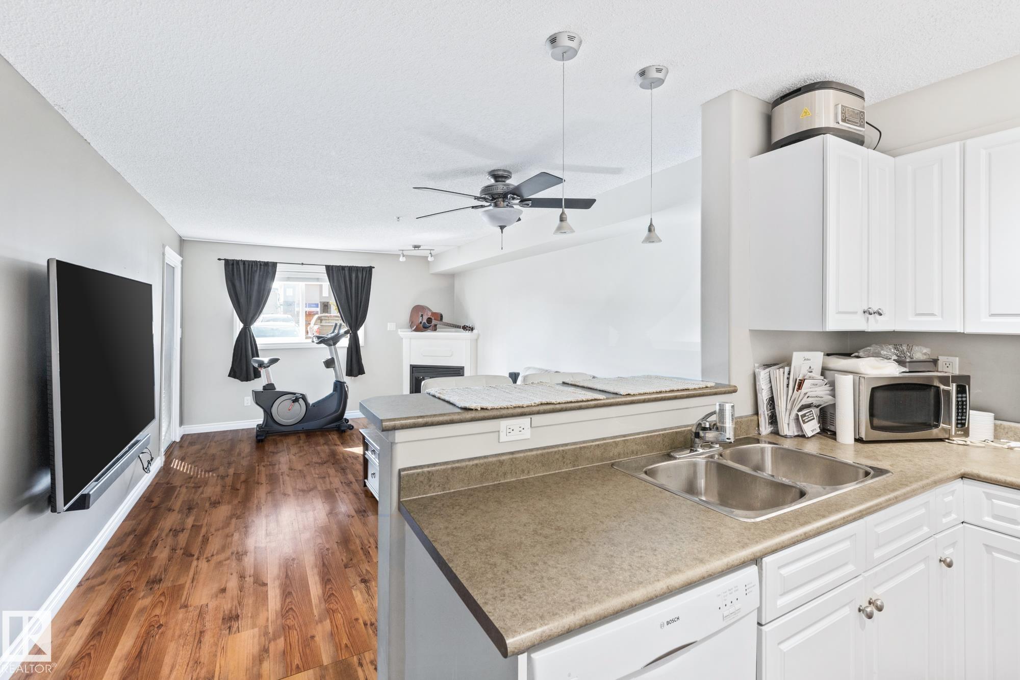 MOVE IN READY! Welcome to this well-kept, 1st-floor, 1-Bedroom plus a den condo! BRIGHT AND CONVENIENTLY LOCATED, this could be your new Home! Laminate flooring (NO CARPET AT ALL!) and Light neutral paint make this spacious condo feel fresh and Airy. Unit features an OPEN CONCEPT living space with a Spacious living room and a well-appointed kitchen. With loads of NATURAL LIGHT flowing throughout, enjoy direct access to the south-facing balcony. You'll delight in the gas fireplace in the living room in the winter and the A/C unit in your bedroom in the summer. The bedroom is Large enough to fit your KING SIZED bed and features large his and hers walk-through closet. In-Suite laundry will SAVE YOU TIME AND MONEY! PARKING: 1 titled stall in the Heated underground parkade. This Secure building also offers a gazebo, an amenities building to host large gatherings, and an underground carwash bay. Walking distance to the Tri-Leisure Centre, and EASY ACCESS TO ALL MAIN ROADS, has you covered for work and play!